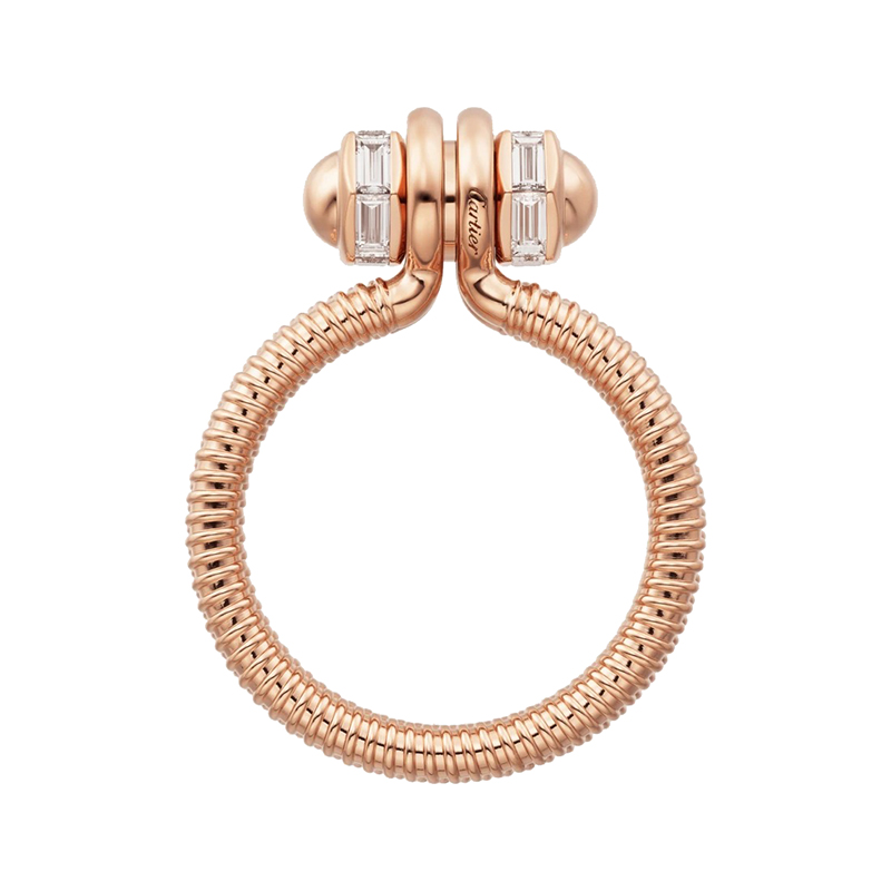 Ecrou de Cartier 戒指,18K金玫瑰金(750/1000),镶嵌 12 颗总重 0.48 克拉的长方形切割钻石。