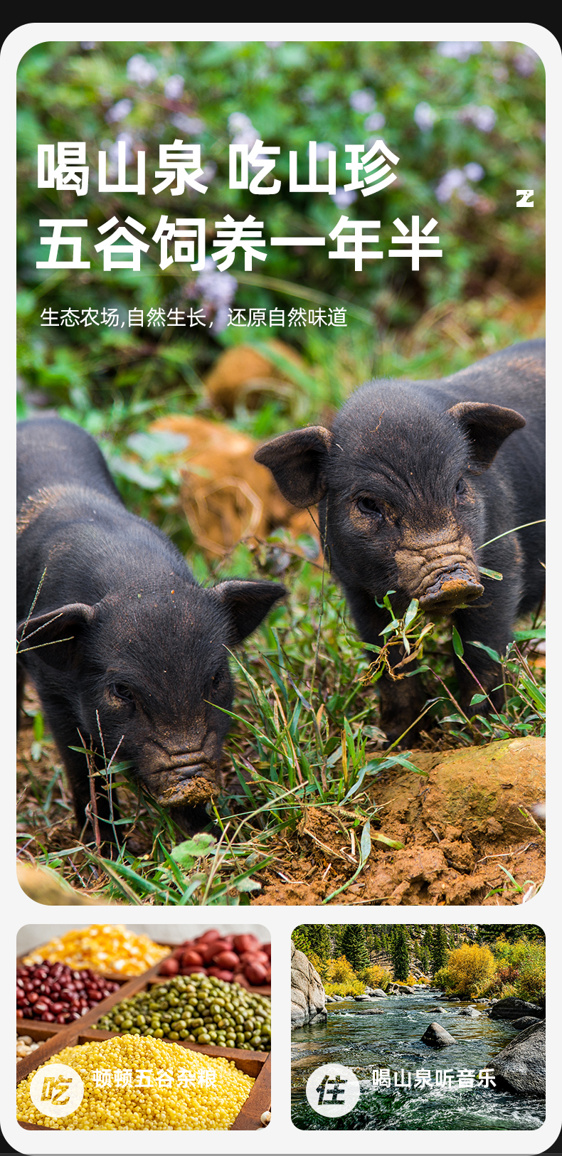 心选丨鲜正鲜涪陵黑猪肉精排/五花/梅花/里脊4斤组合装加送1斤