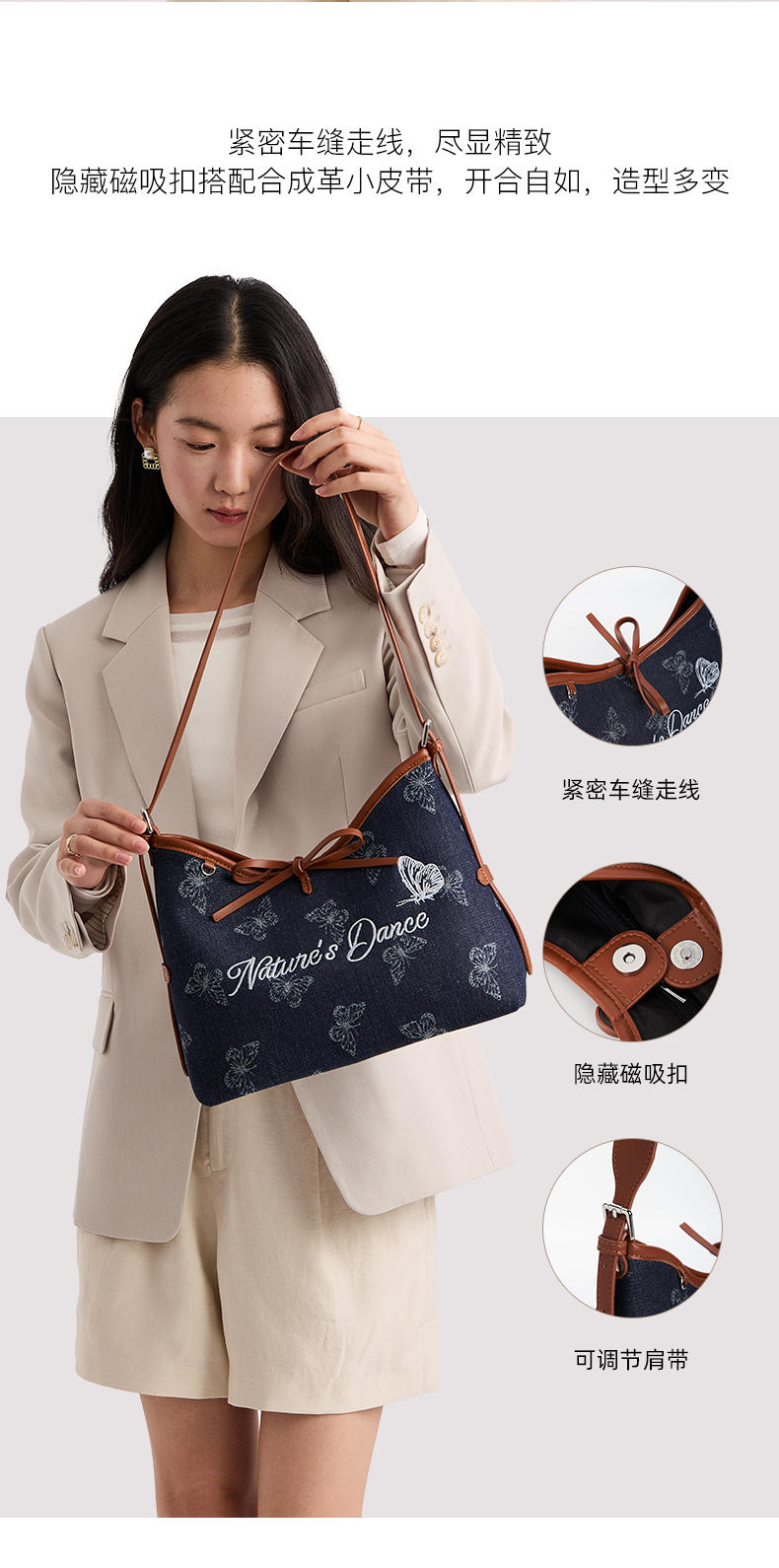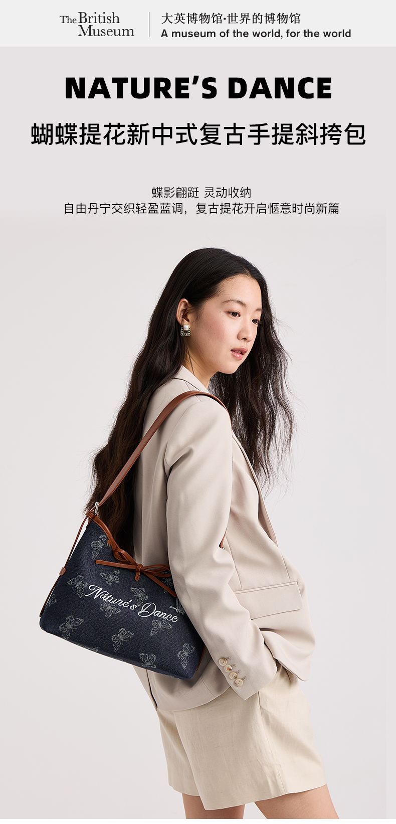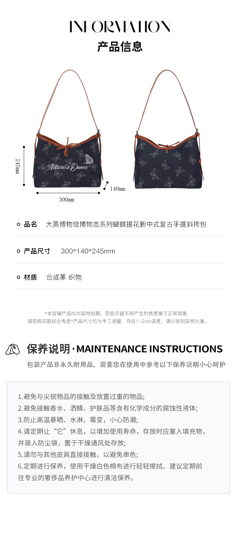 大英博物馆 博物志系列 蝴蝶提花新中式复古 手提斜挎包