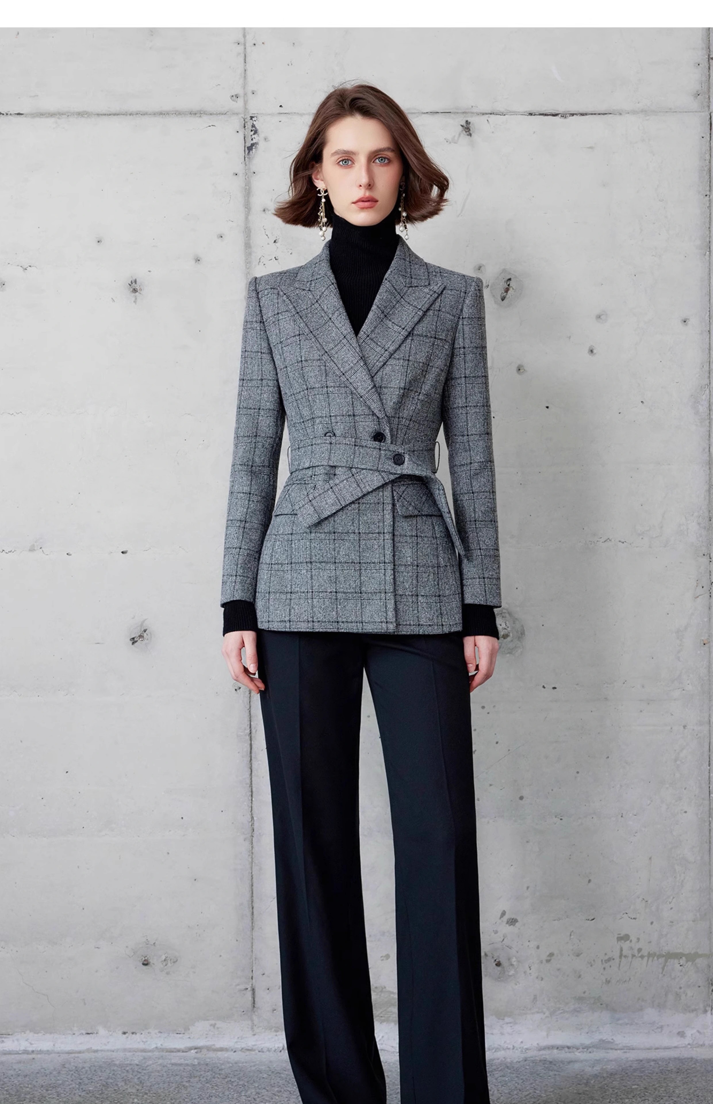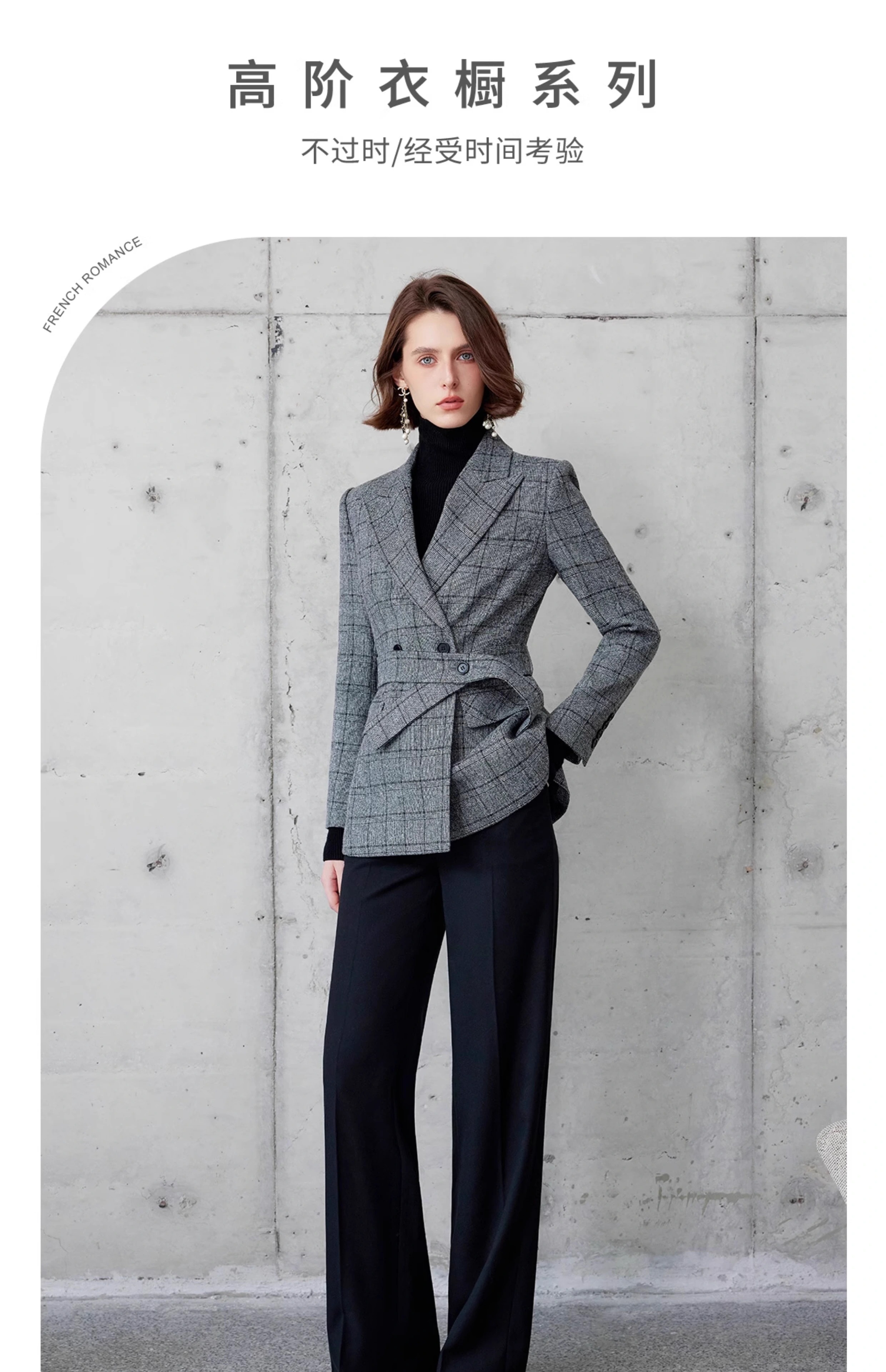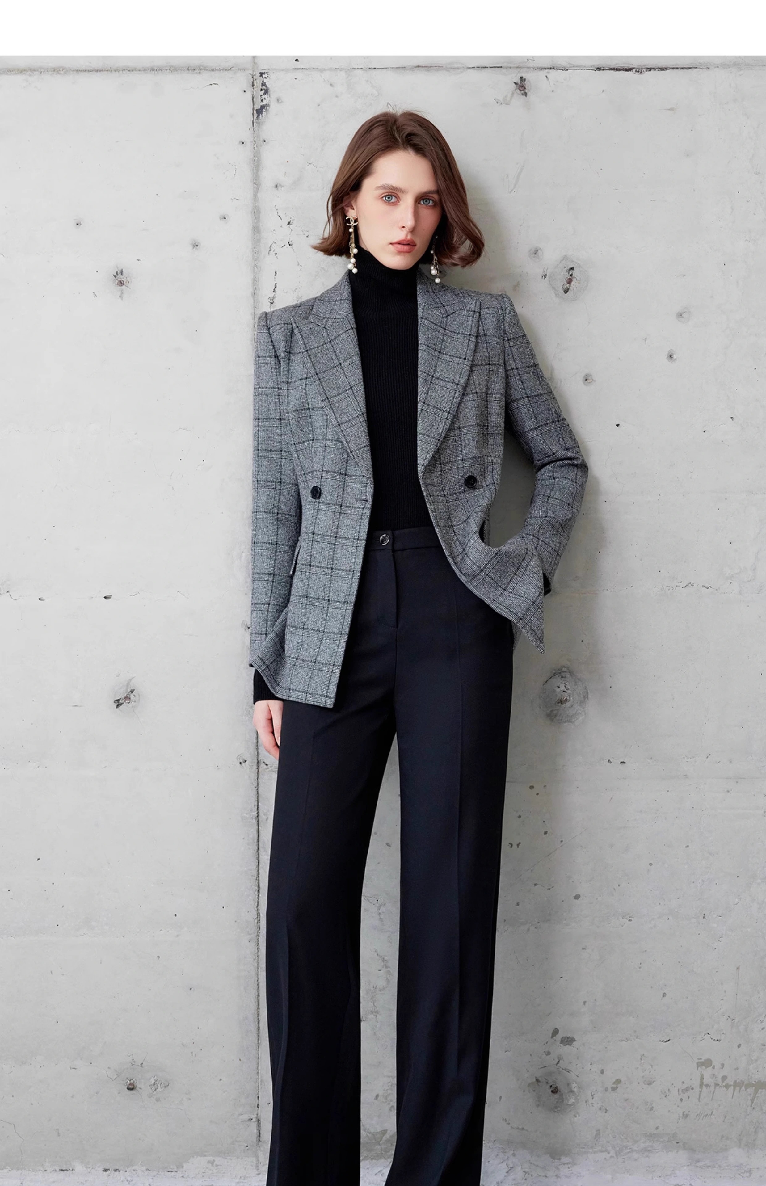 IWY/高端奢华格纹西装套装女秋冬季英伦风职业装时尚西服微喇裤正装C2125+P2124