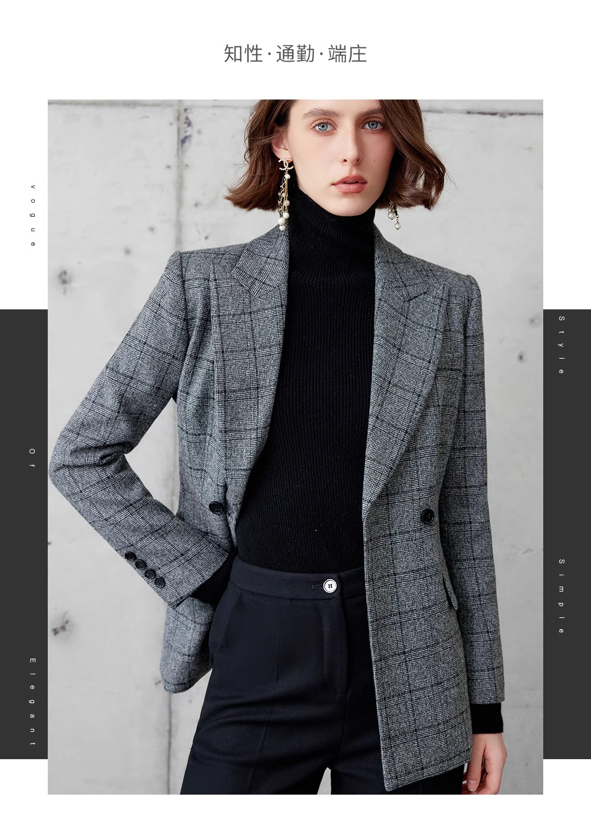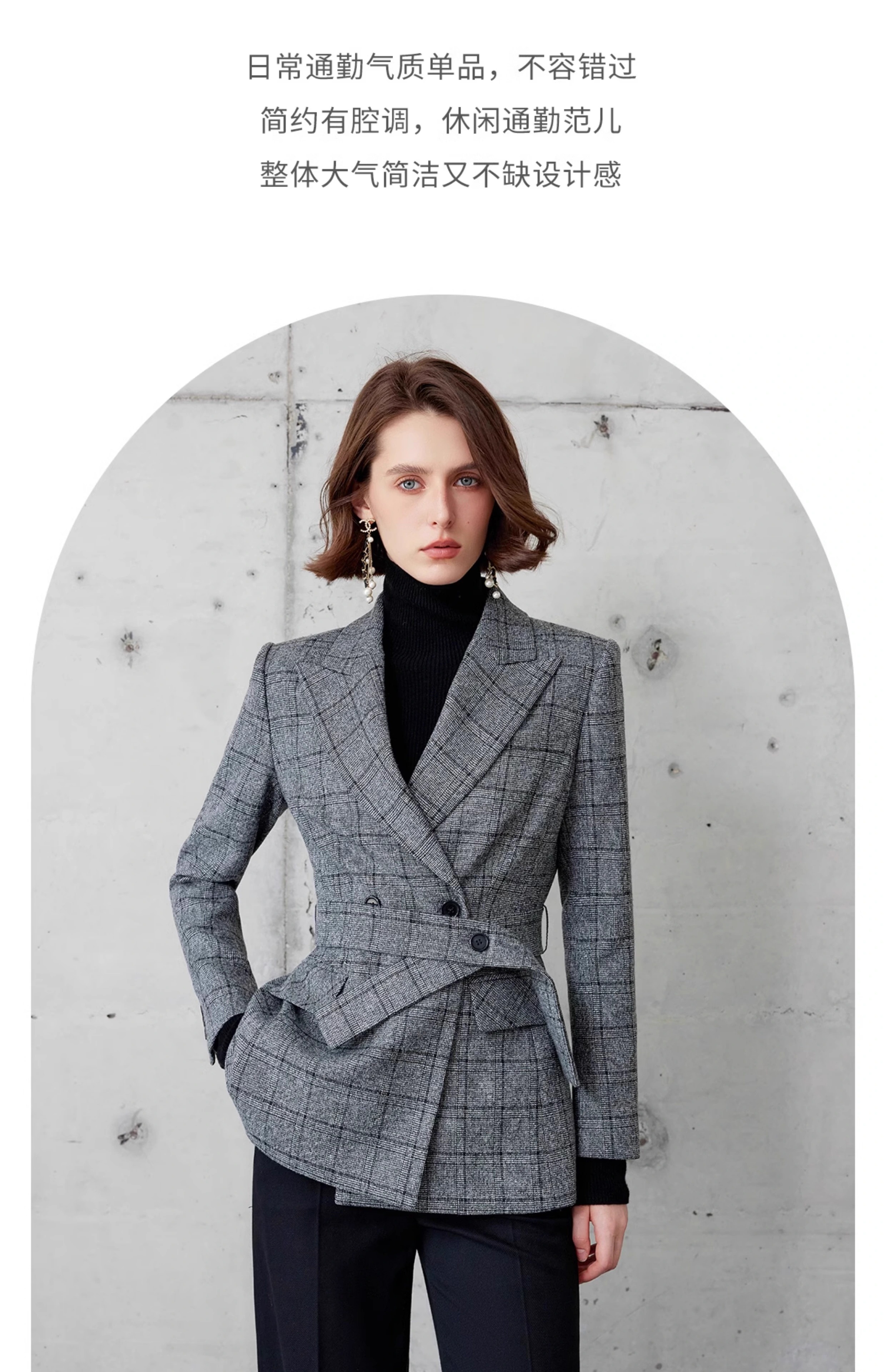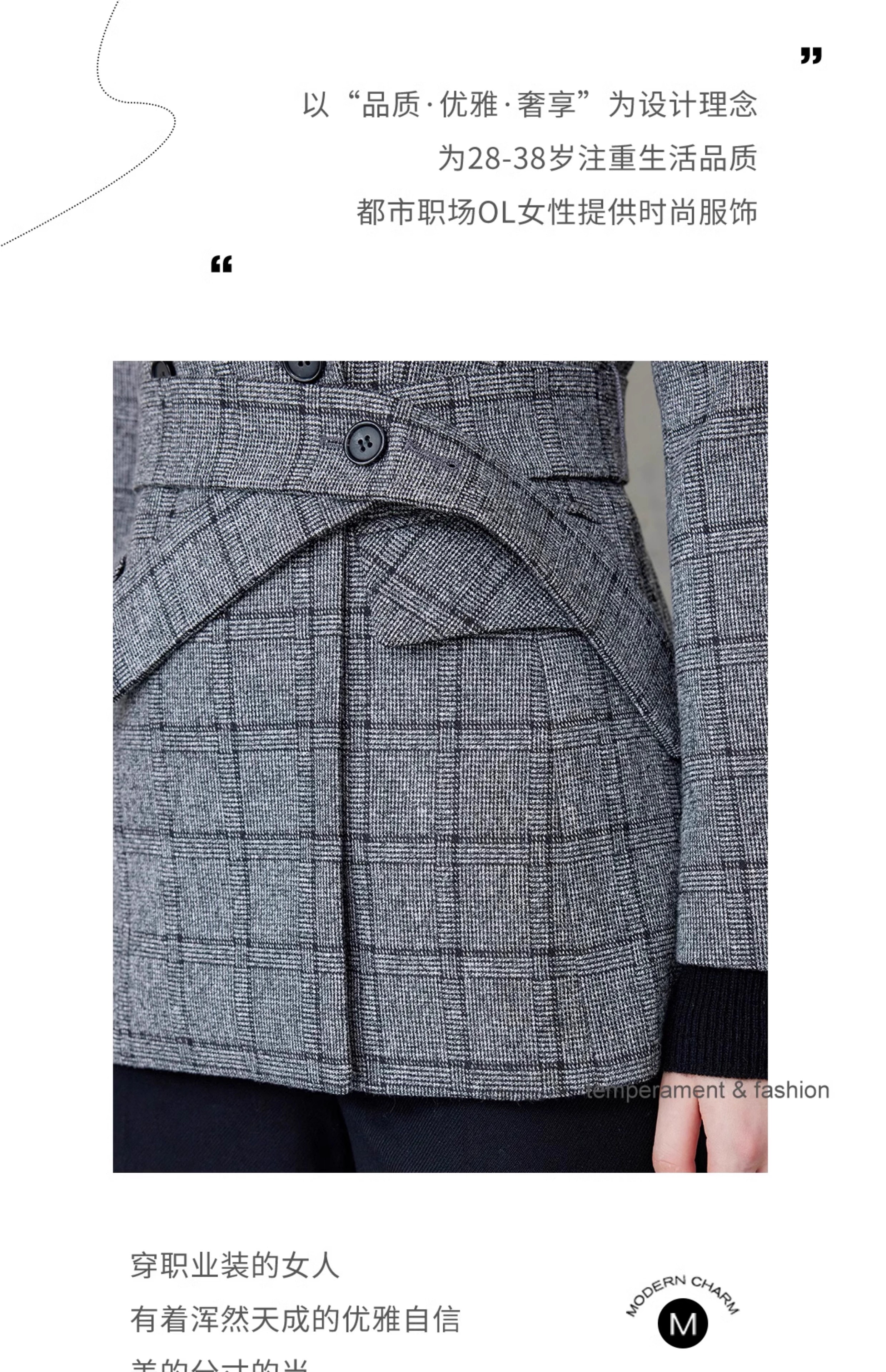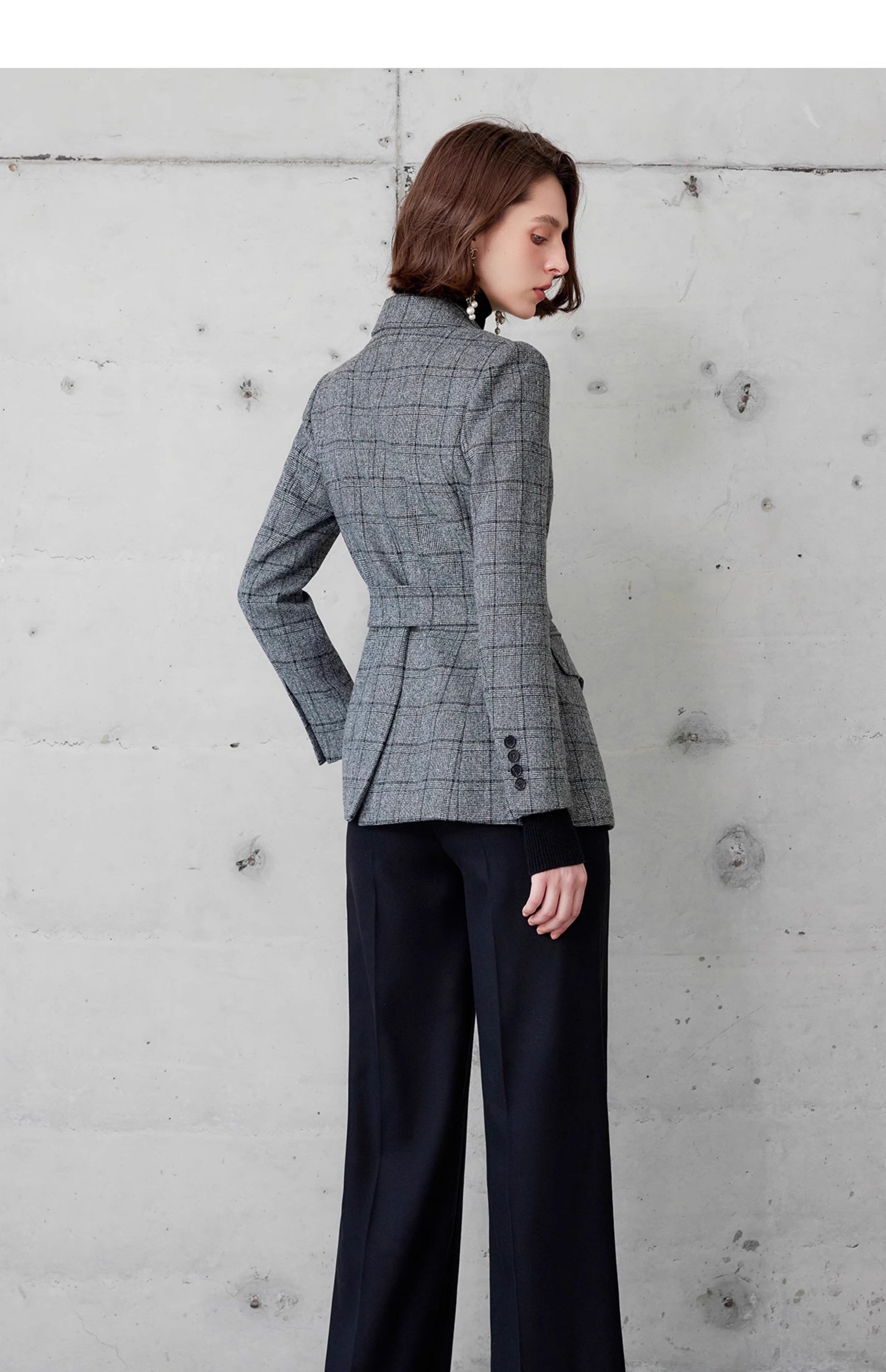 IWY/高端奢华格纹西装套装女秋冬季英伦风职业装时尚西服微喇裤正装C2125+P2124