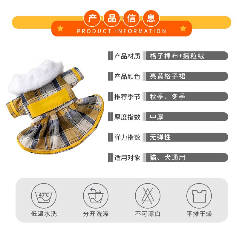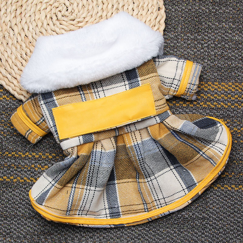 宠物格子裙 夹棉秋冬小型犬狗狗衣服批发