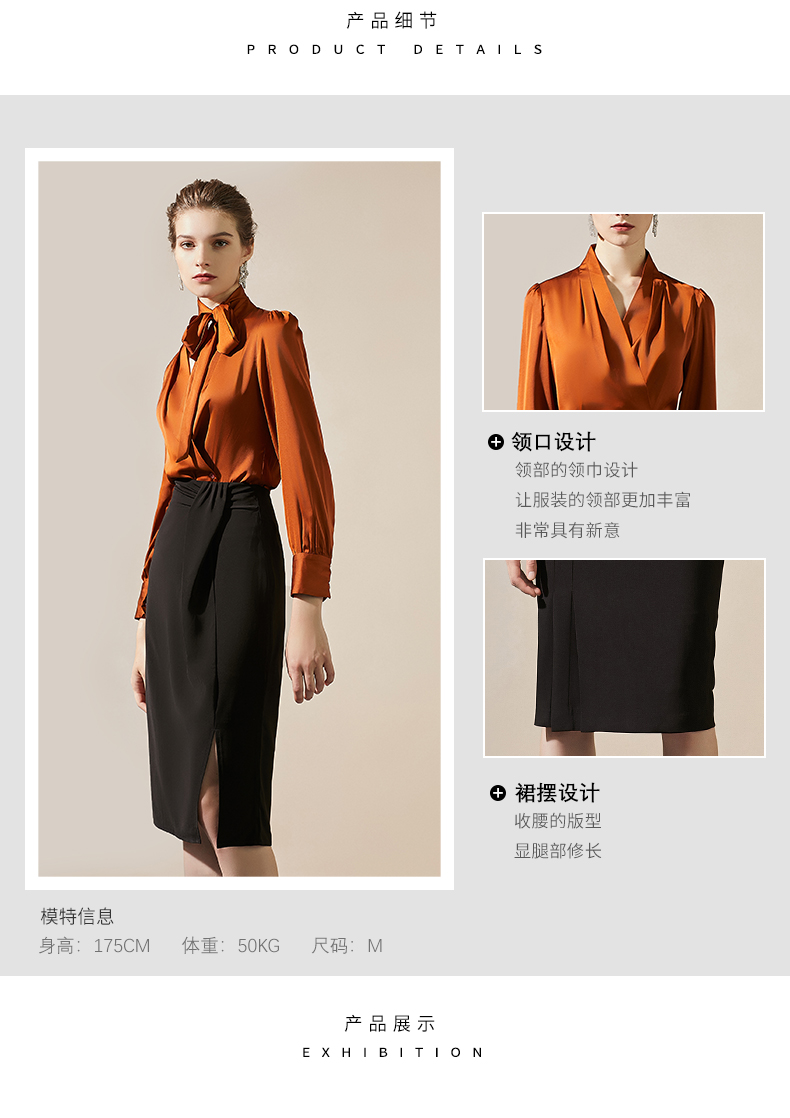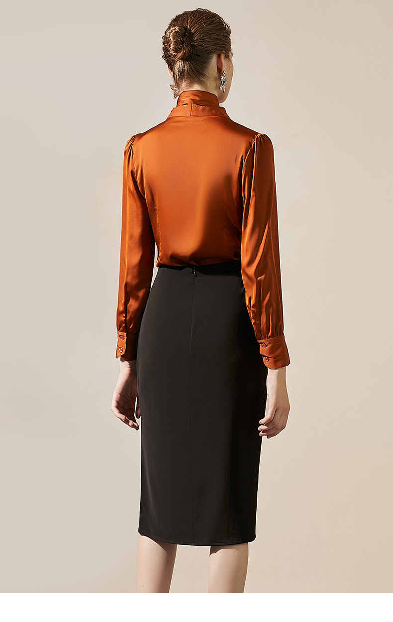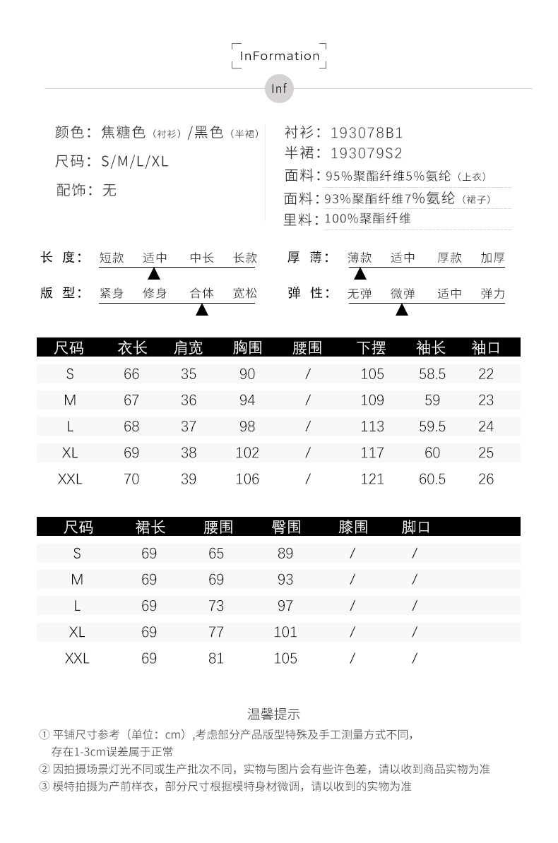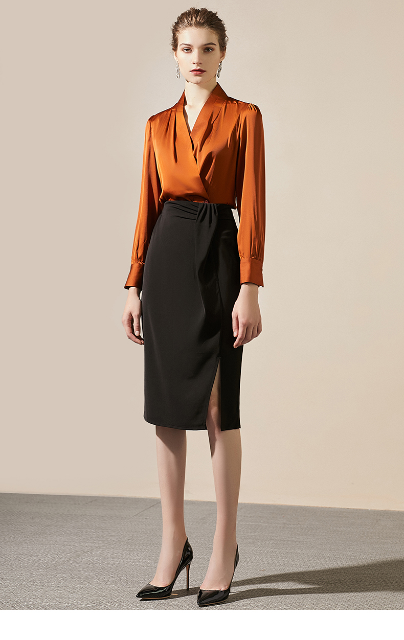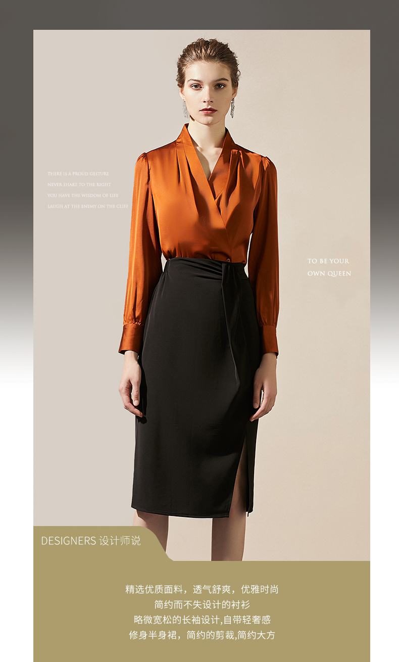 IWY/时尚焦糖色设计感衬衫黑色修身包臀黑色半裙套裙女商务通勤职业装193078B1+193079S2