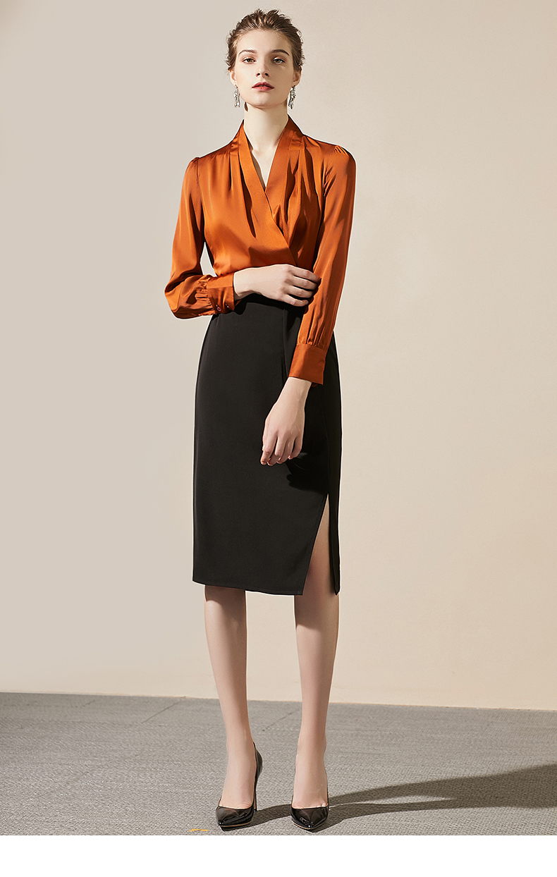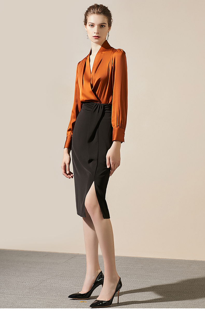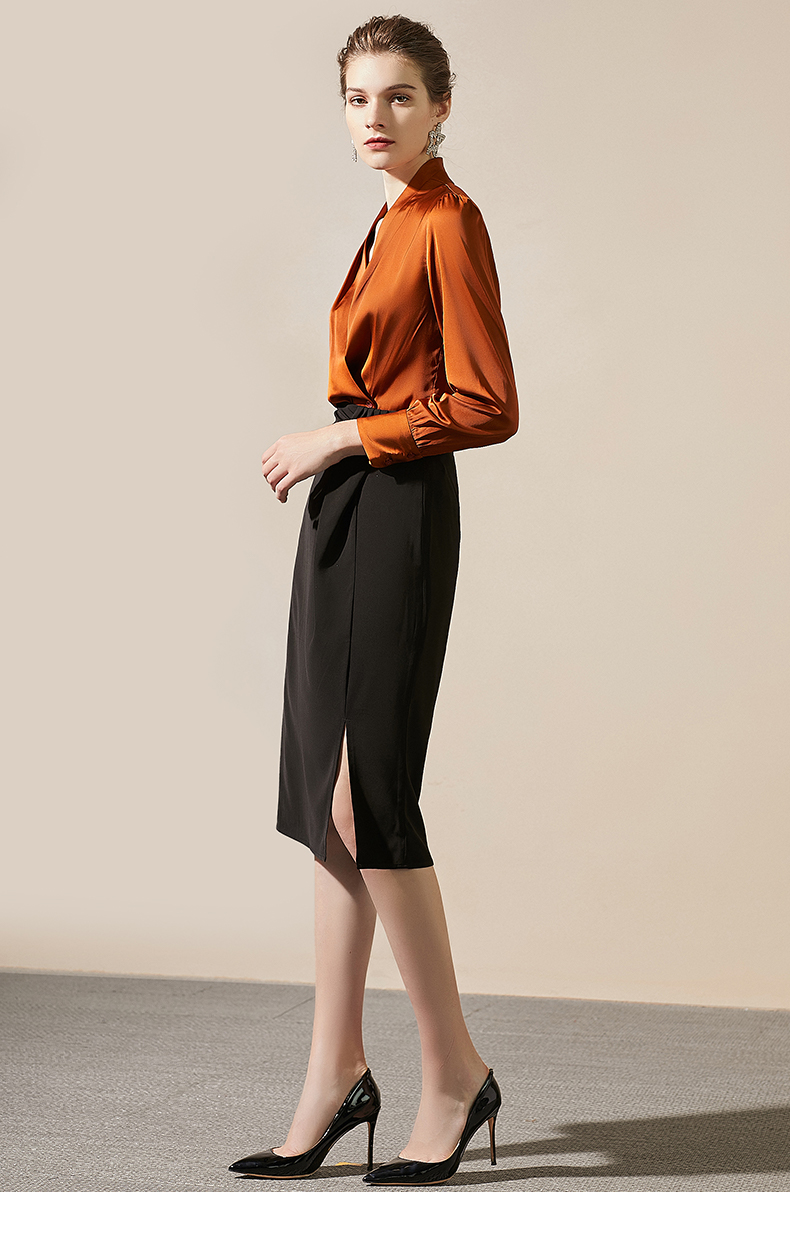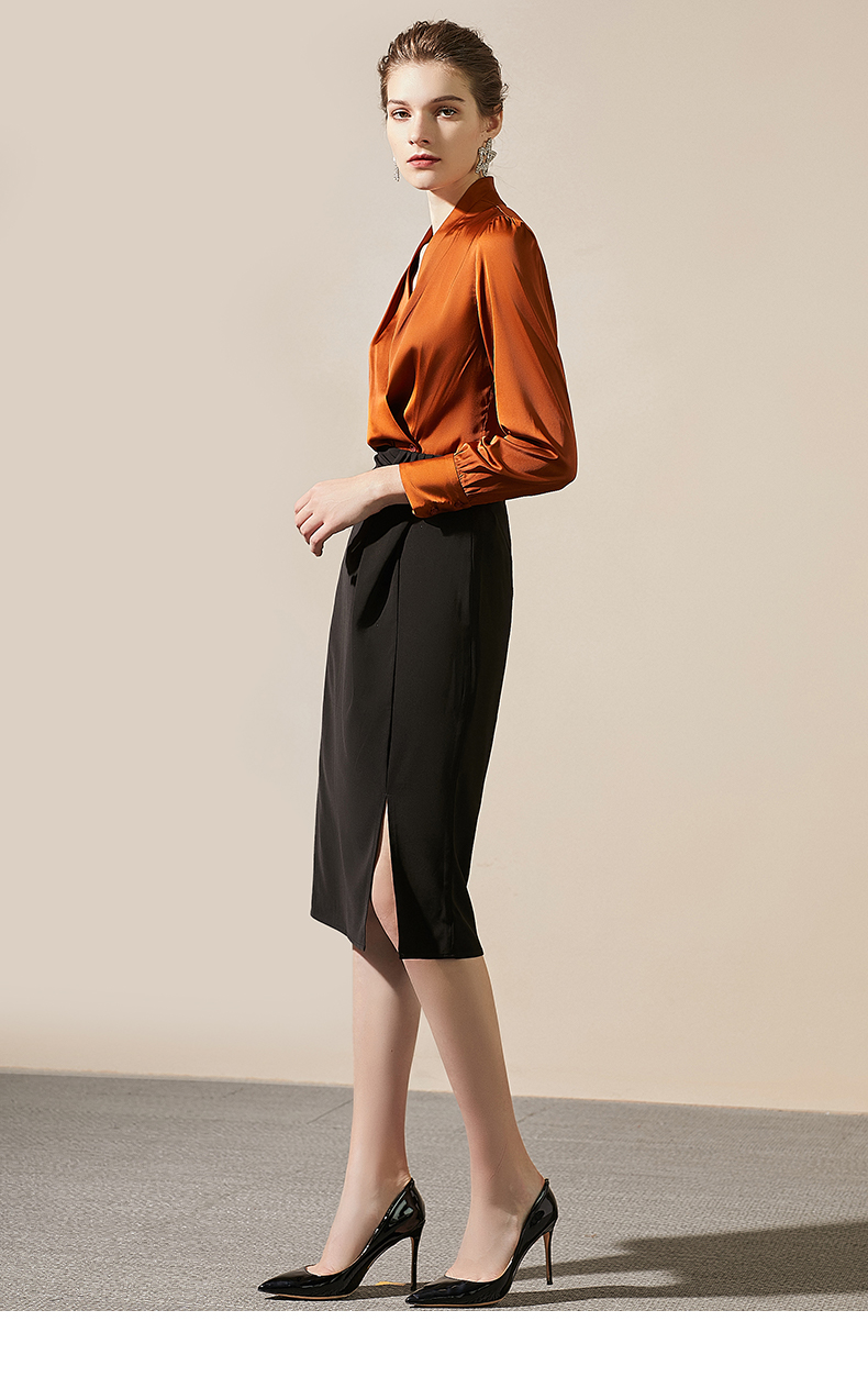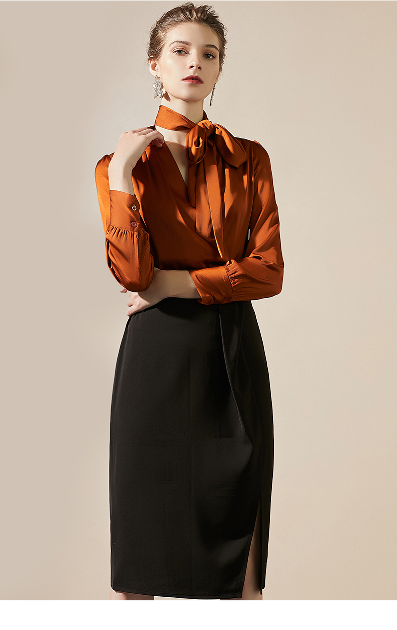 IWY/时尚焦糖色设计感衬衫黑色修身包臀黑色半裙套裙女商务通勤职业装193078B1+193079S2