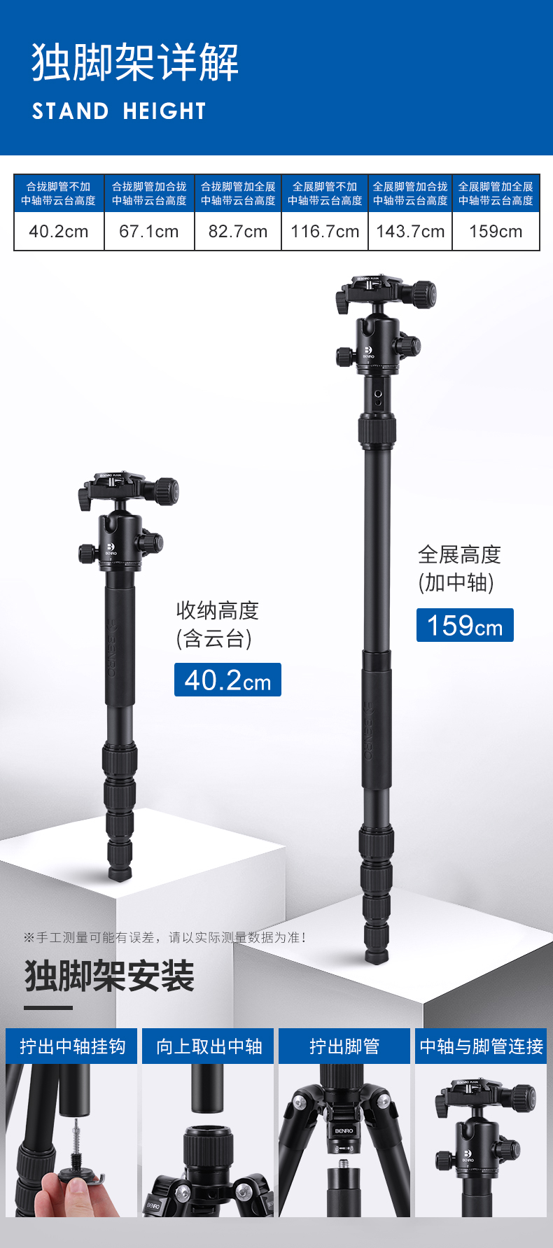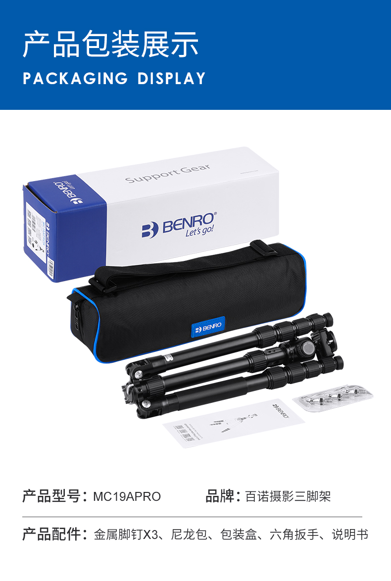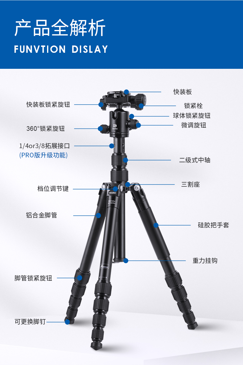 百诺MC19A PRO三脚架摄影便携相机微单反旅行俯拍手机摄像