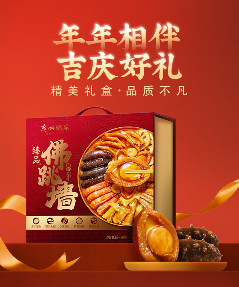 广州酒家臻品鲍汁佛跳墙盆菜礼盒1.6kg加热即食半成品菜家宴送礼