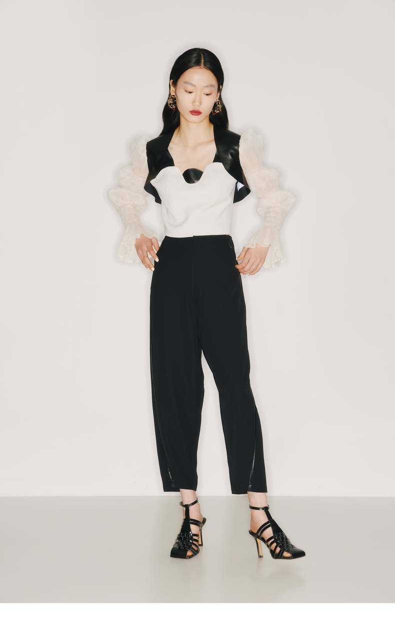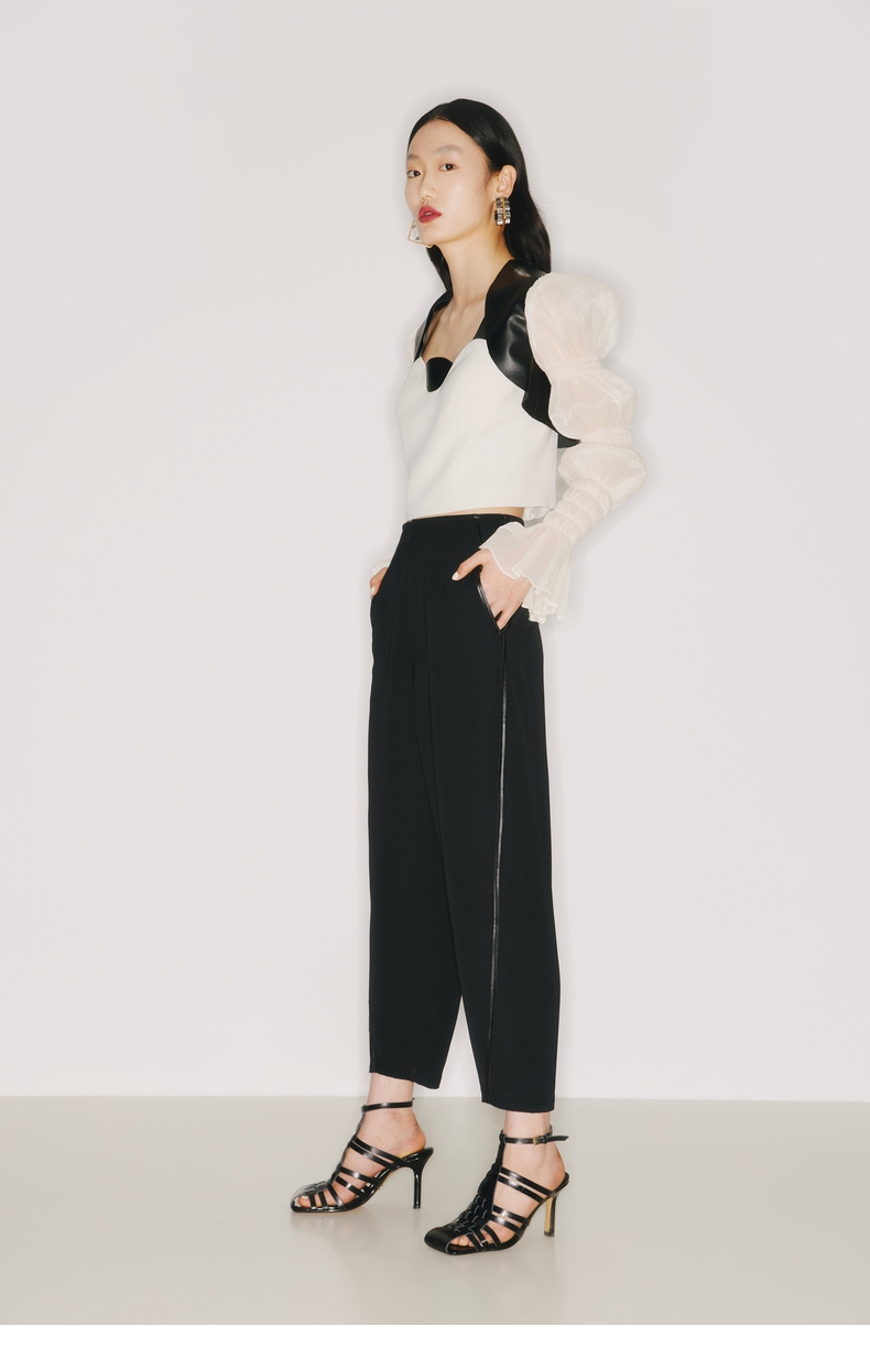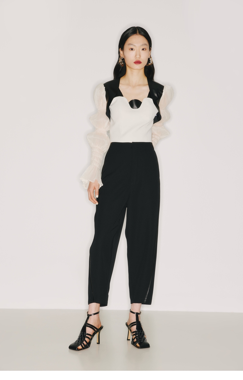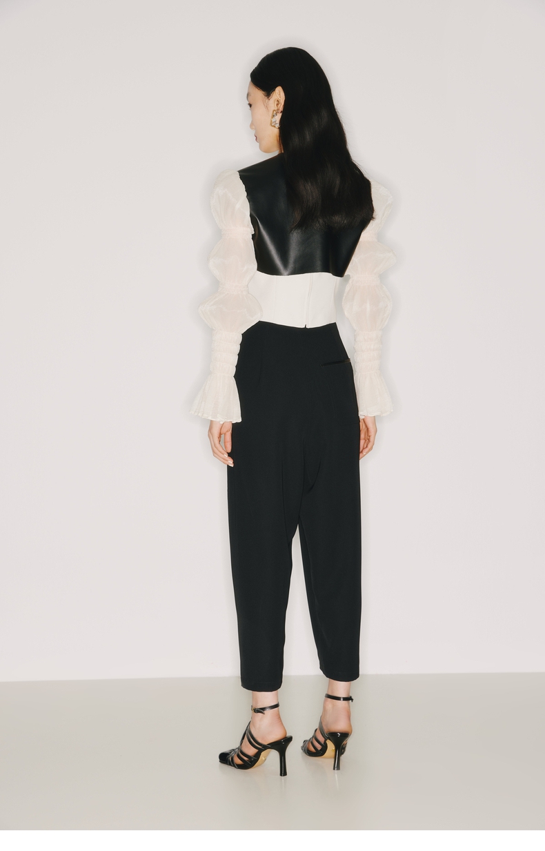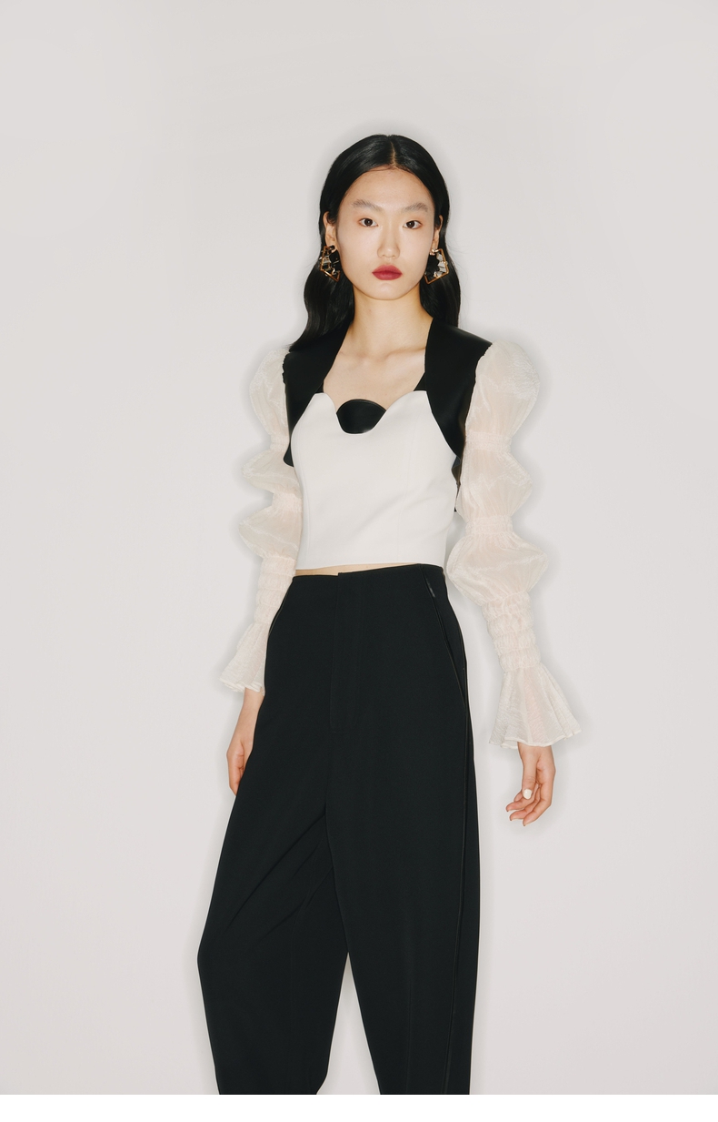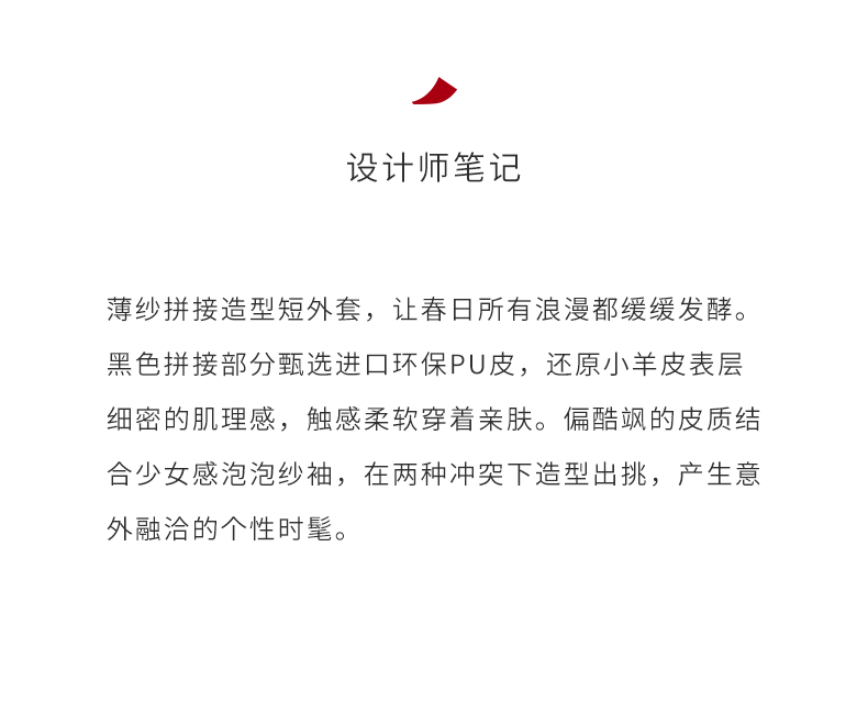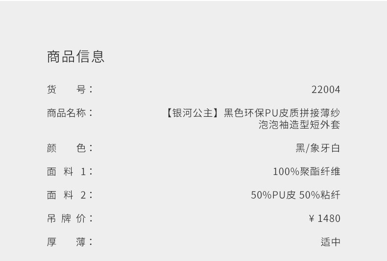 【银河公主】黑色环保PU皮质拼接薄纱泡泡袖造型短外套/22004