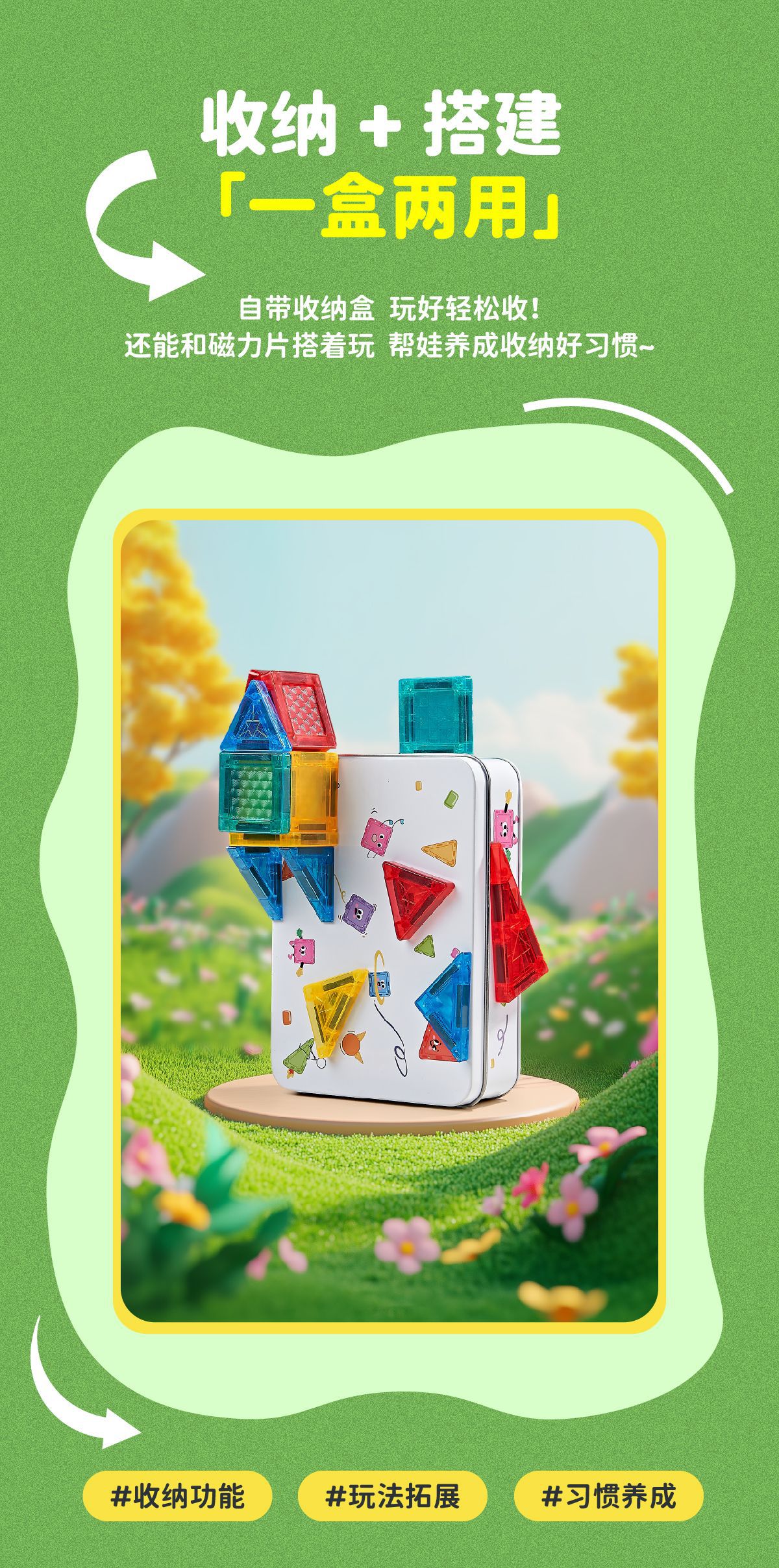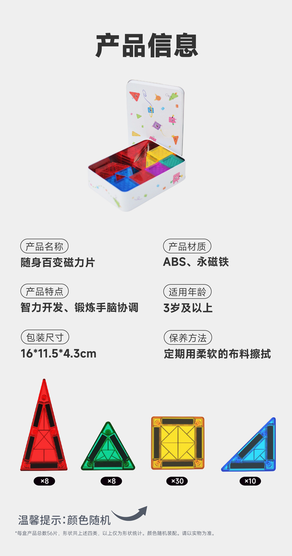 【赠精致收纳金属盒】可随身携带的磁力片 儿童彩窗磁力片 强磁力益智拼装积木56pcs 散片磁性积木套装 创意便携式磁力片