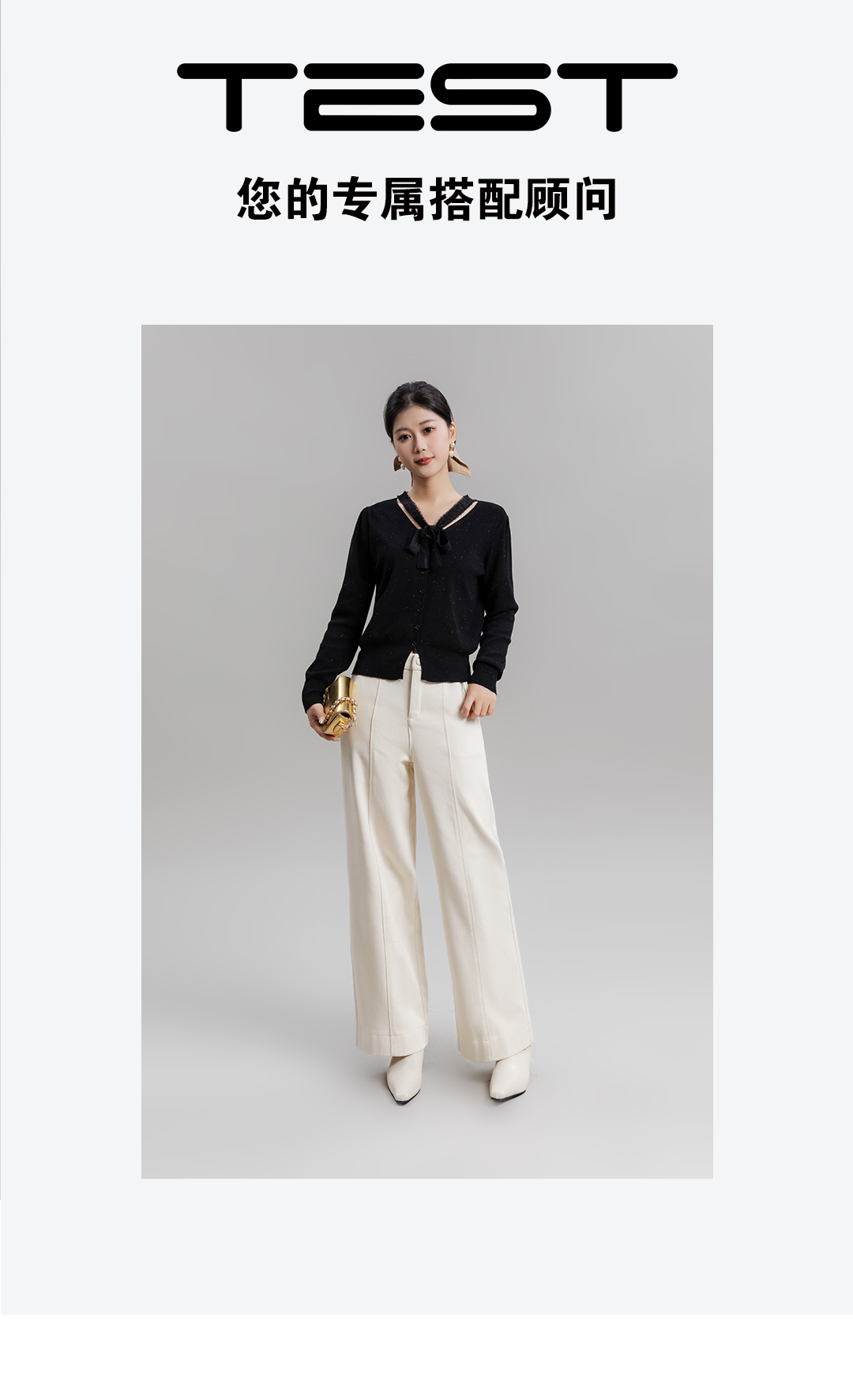 冬上新温柔减龄蝴蝶结装饰V领高级感毛衣1254049