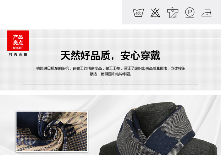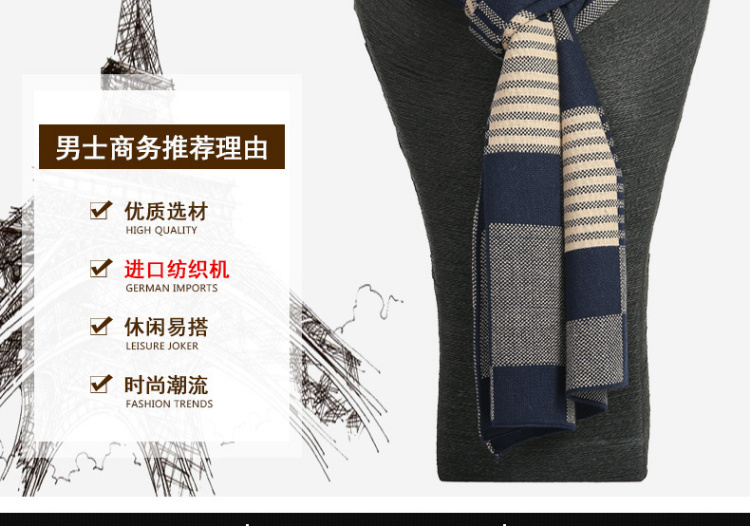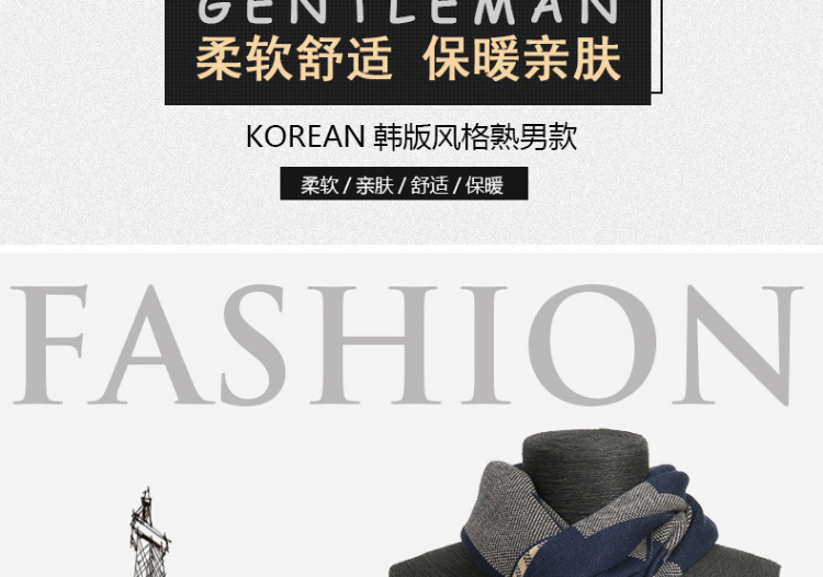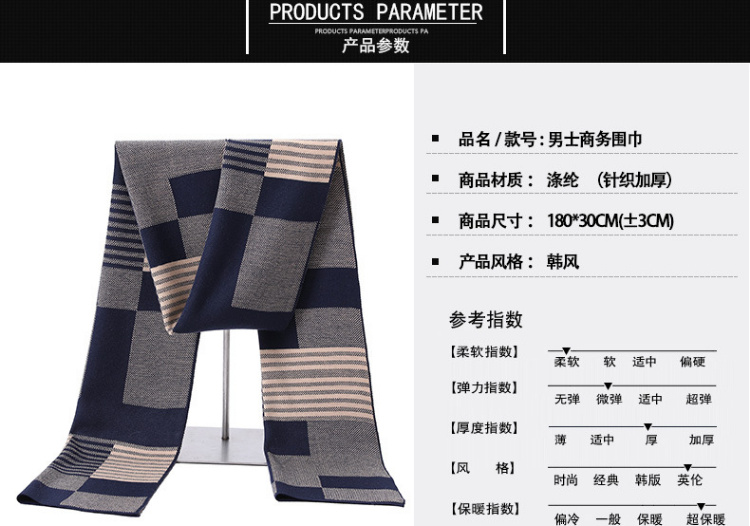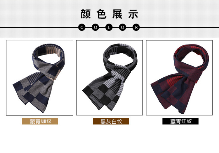 【男士围巾】-韩版冬季保暖时尚风加厚商务针织仿羊绒围脖
