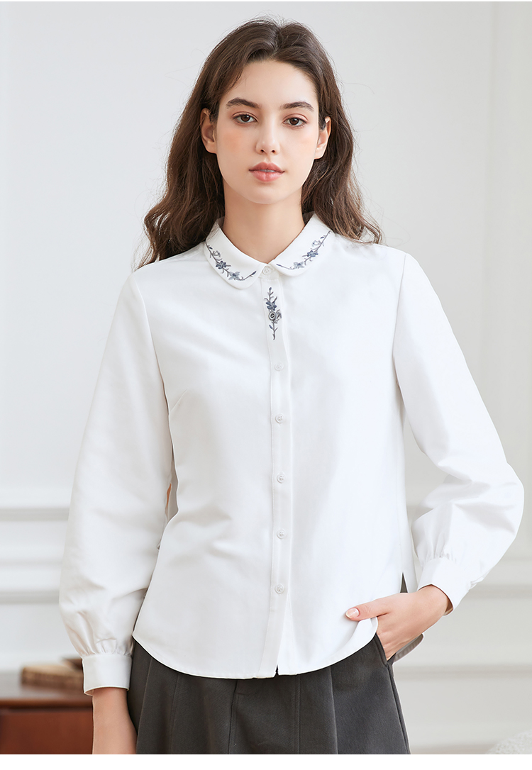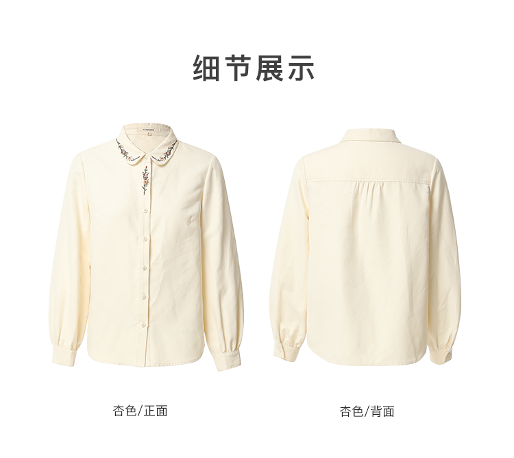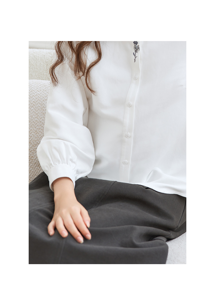 Famecoco范可儿衬衫绣花领设计感长袖灯笼袖女装衬衣FAB8BH004