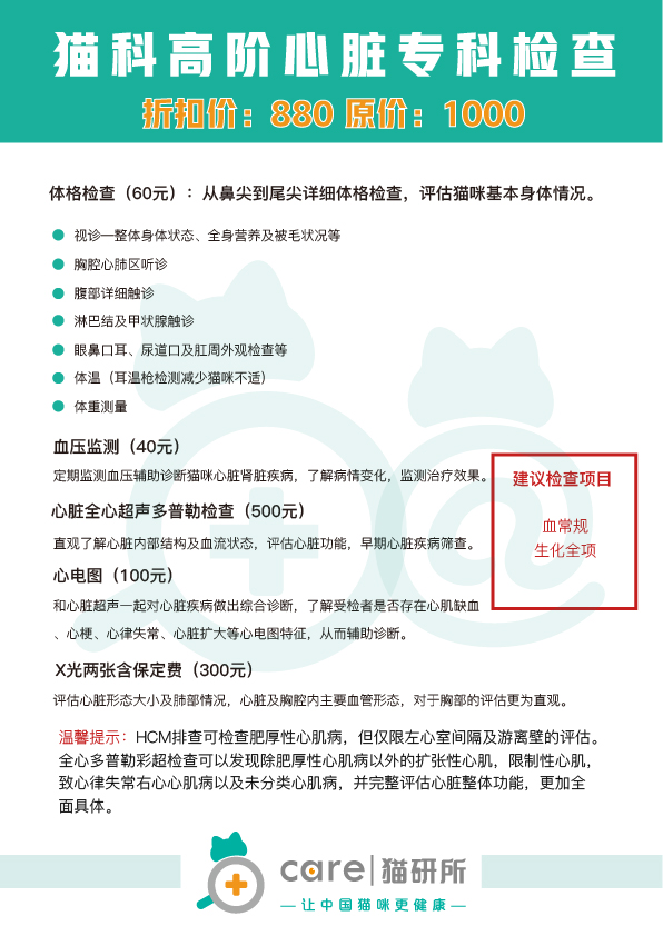 【猫研所动物医院体检】猫心脏高阶检查套餐