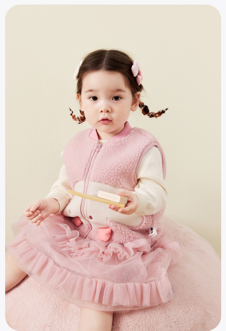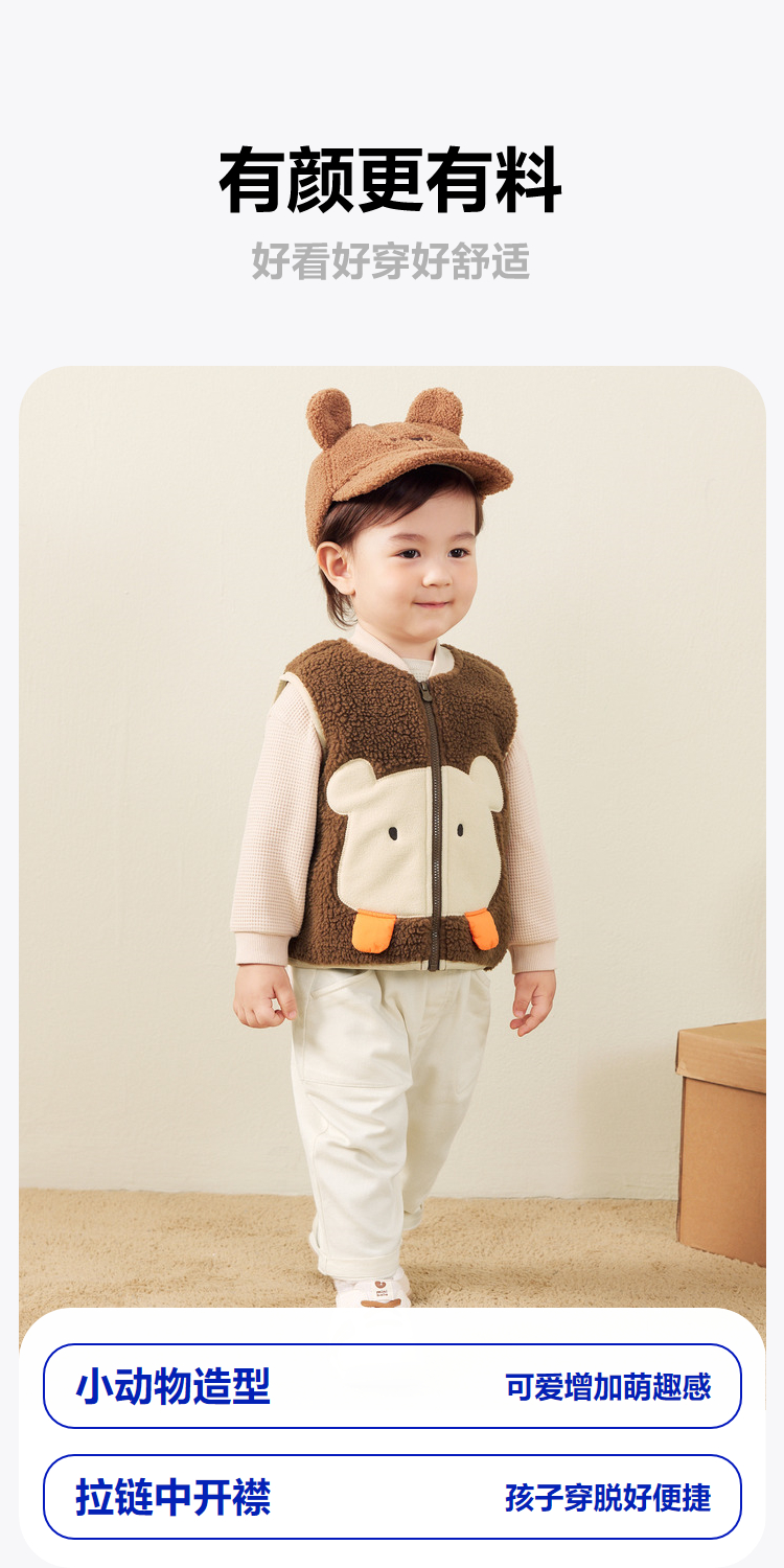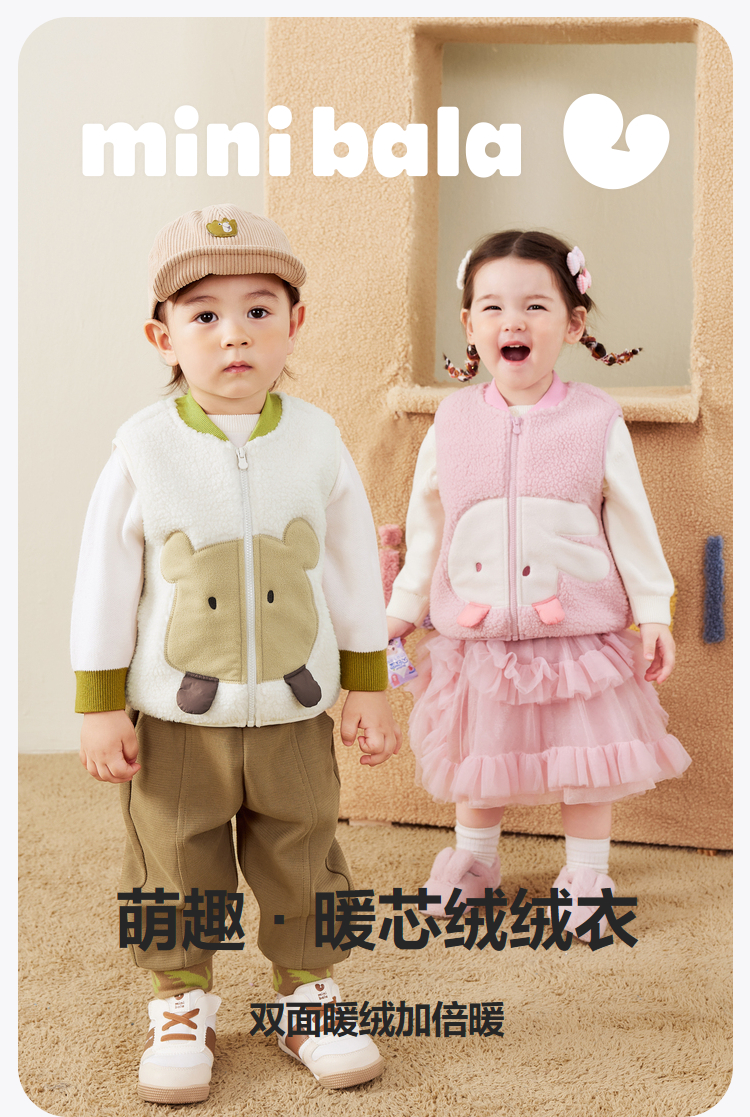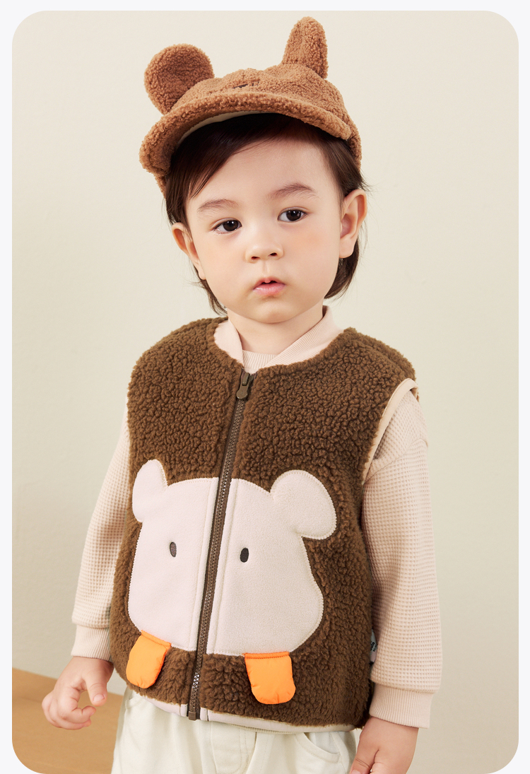 【绒绒衣】迷你巴拉冬新款男女童双面暖马甲可爱保暖毛绒背心