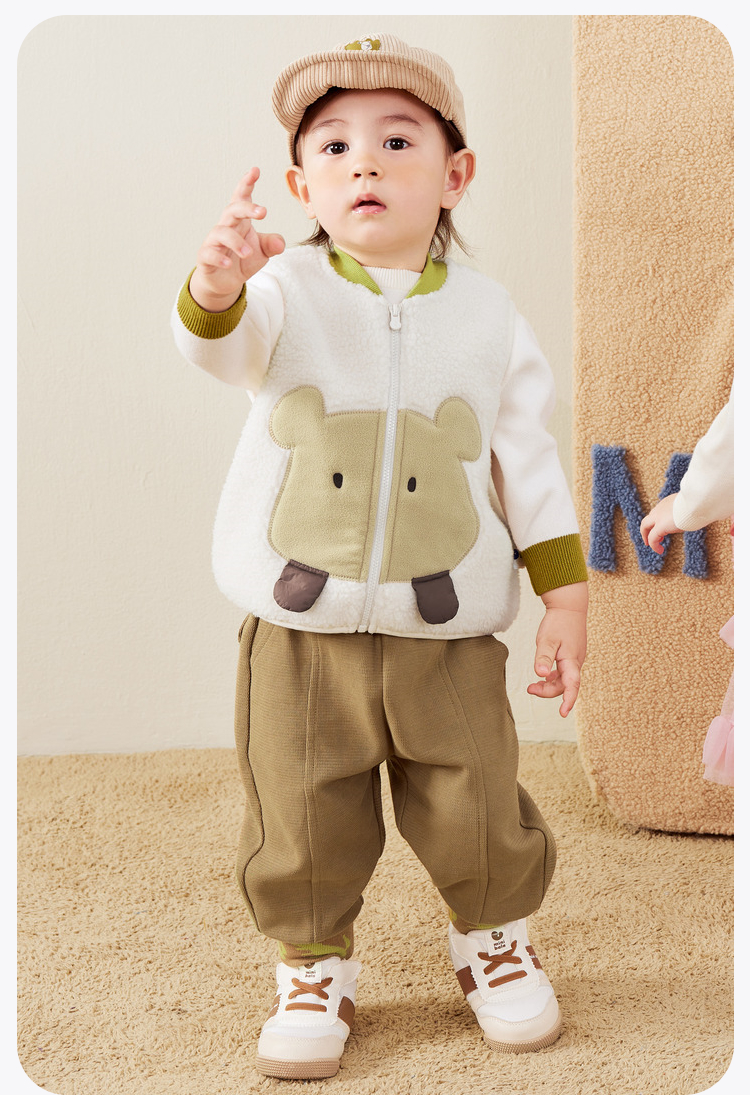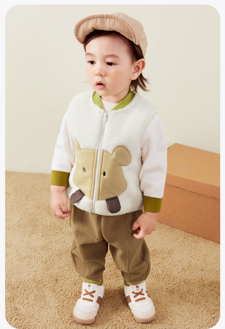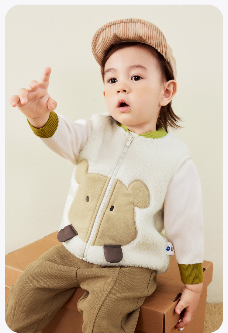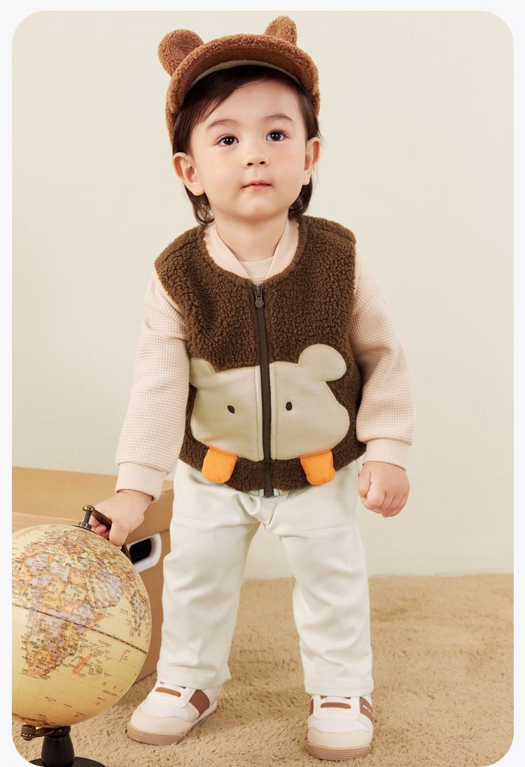 【绒绒衣】迷你巴拉冬新款男女童双面暖马甲可爱保暖毛绒背心