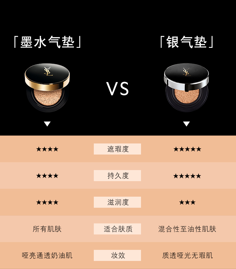 YSL圣罗兰恒颜无瑕粉底液 银气垫遮瑕持妆哑光修饰