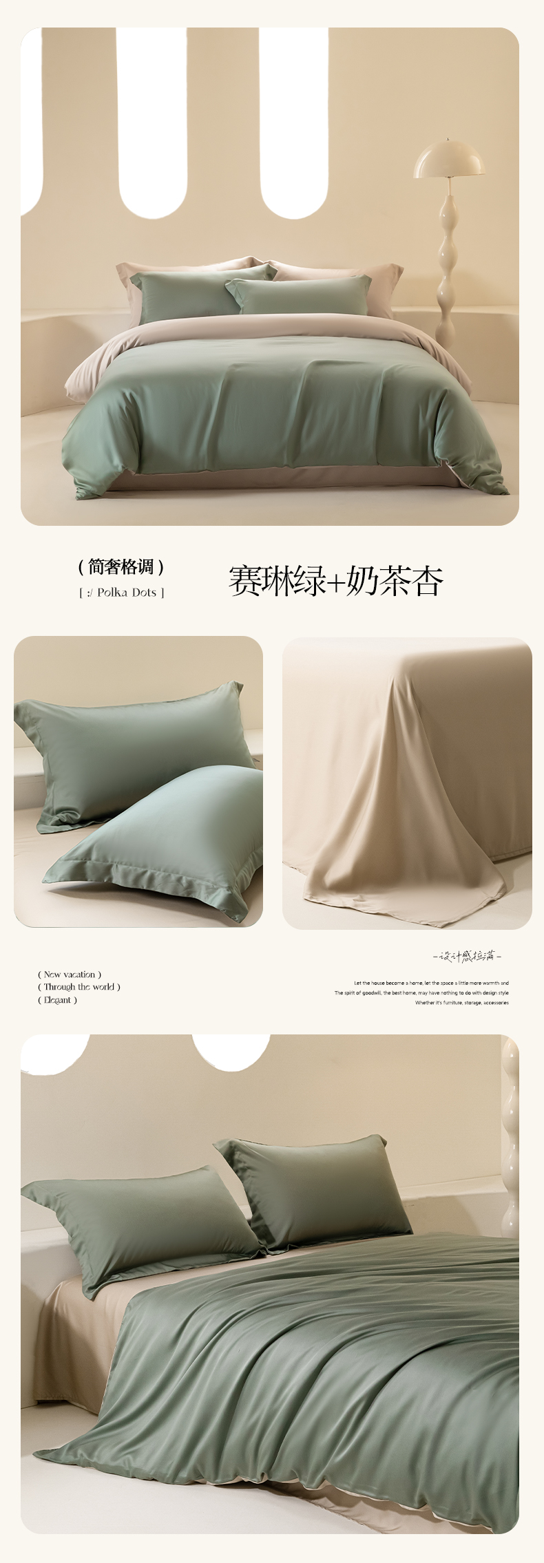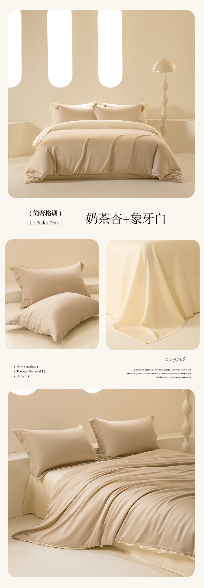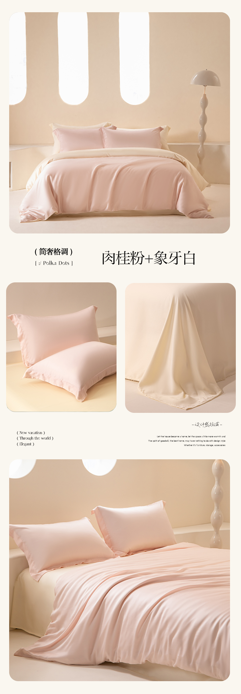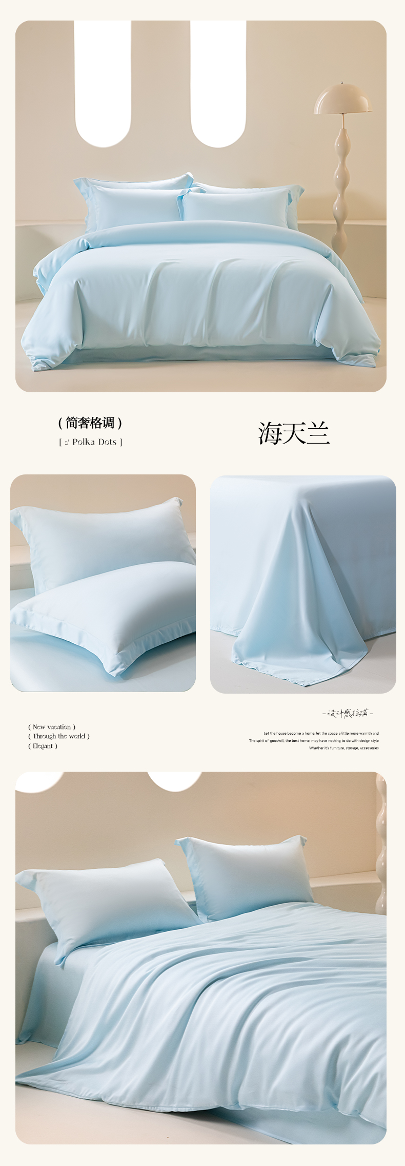 【棉的柔软透气+天丝的丝滑凉感】莱赛尔兰精天丝棉纯色双拼四件套 丝滑柔软凉感床品单件、单被套、单床单、单床笠
