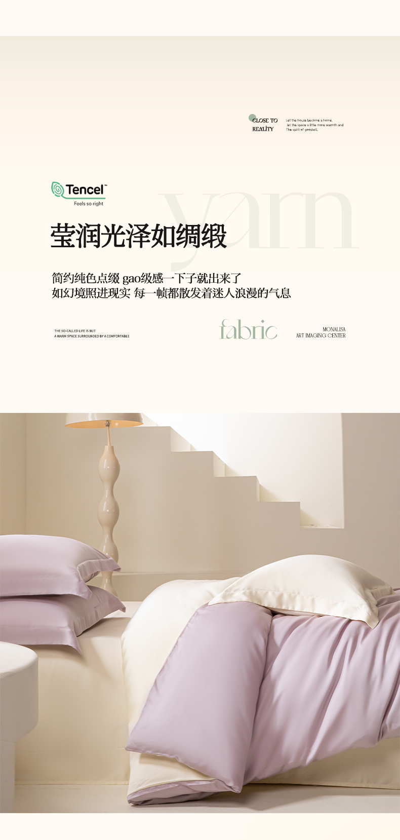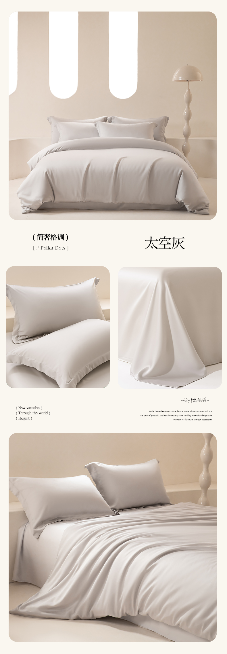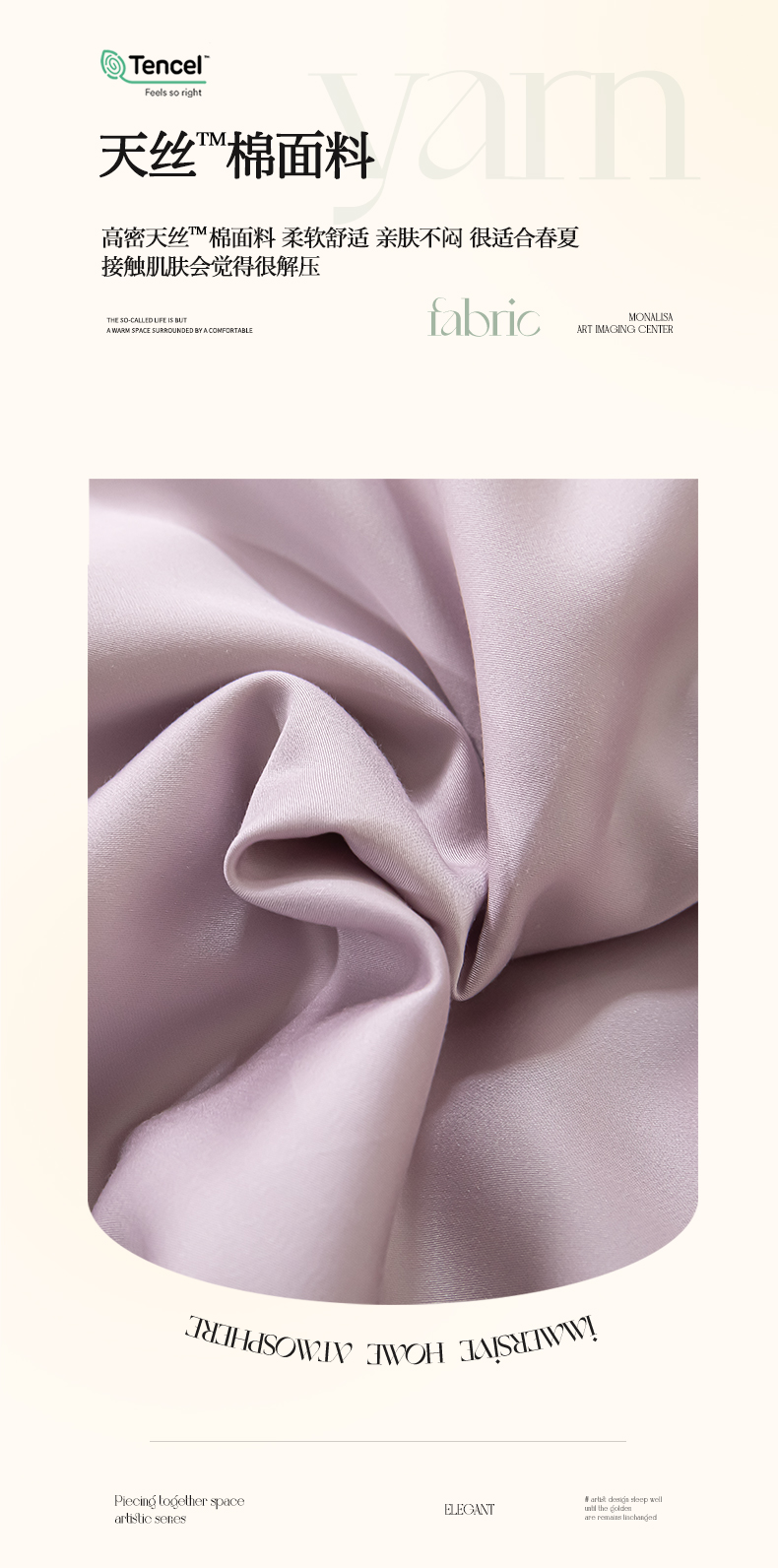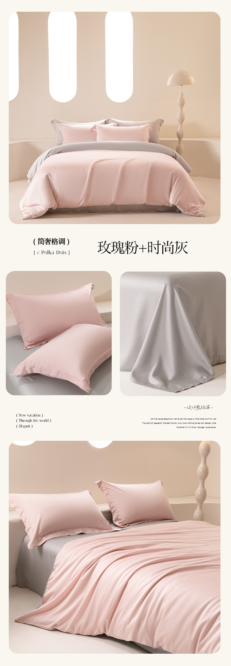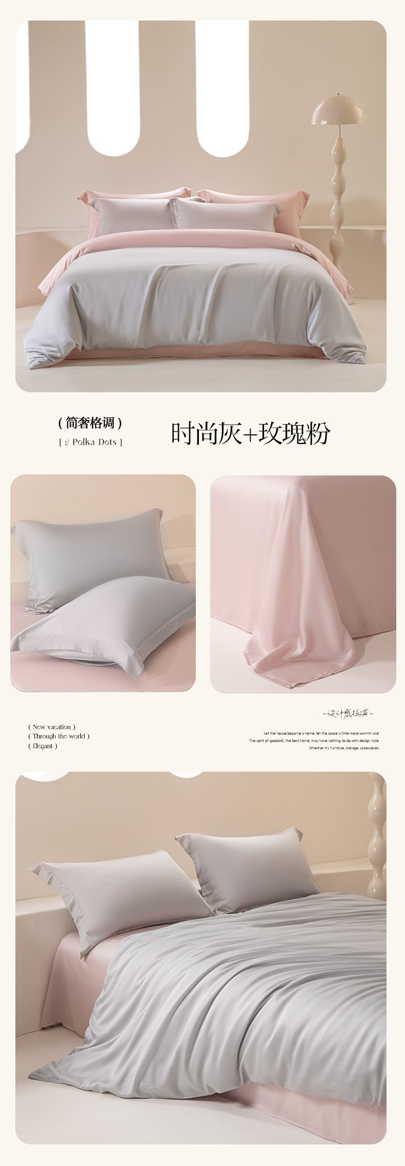 【棉的柔软透气+天丝的丝滑凉感】莱赛尔兰精天丝棉纯色双拼四件套 丝滑柔软凉感床品单件、单被套、单床单、单床笠
