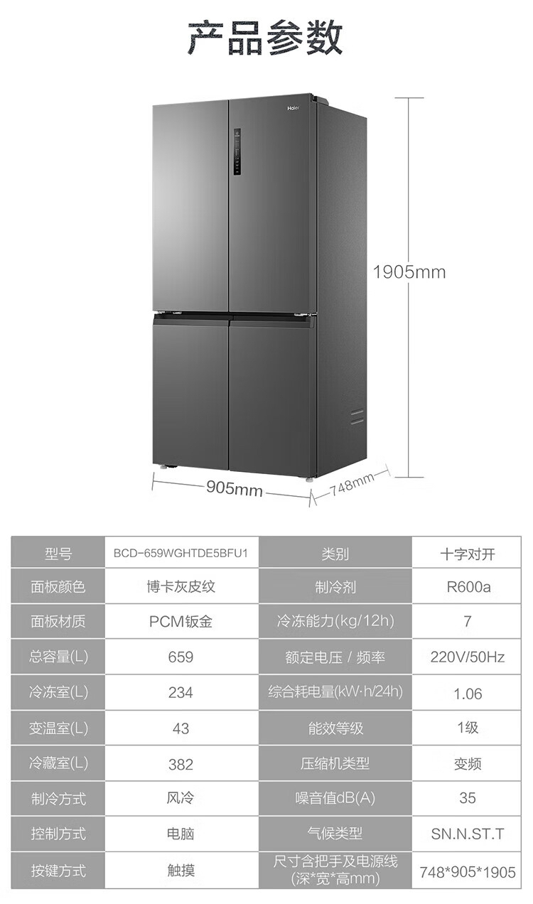 海尔(Haier)冰箱 BCD-659WGHTDE5BFU1