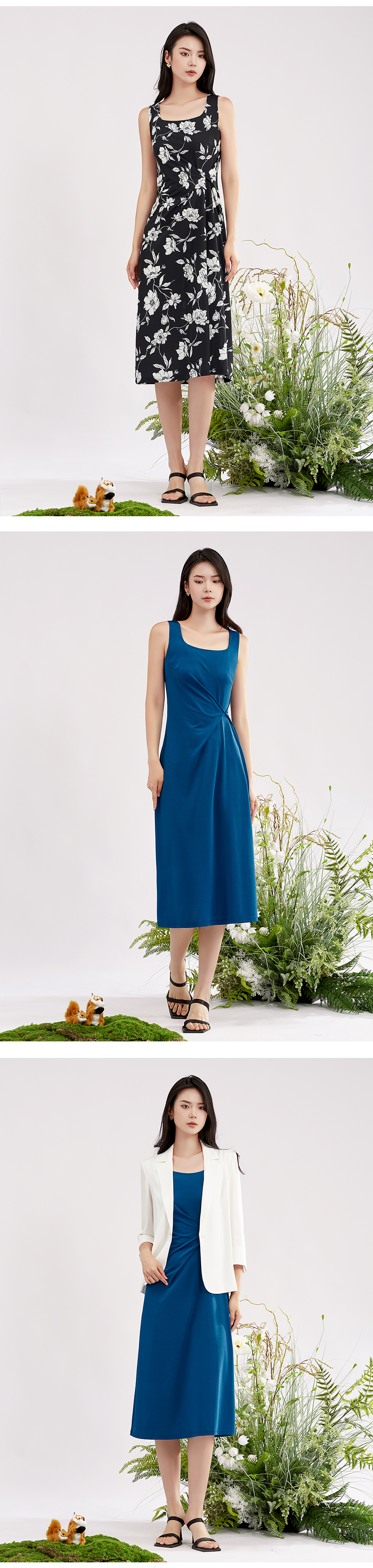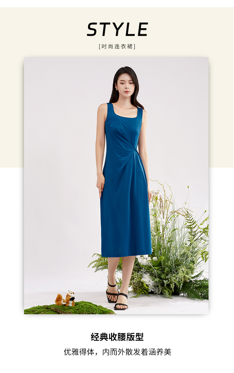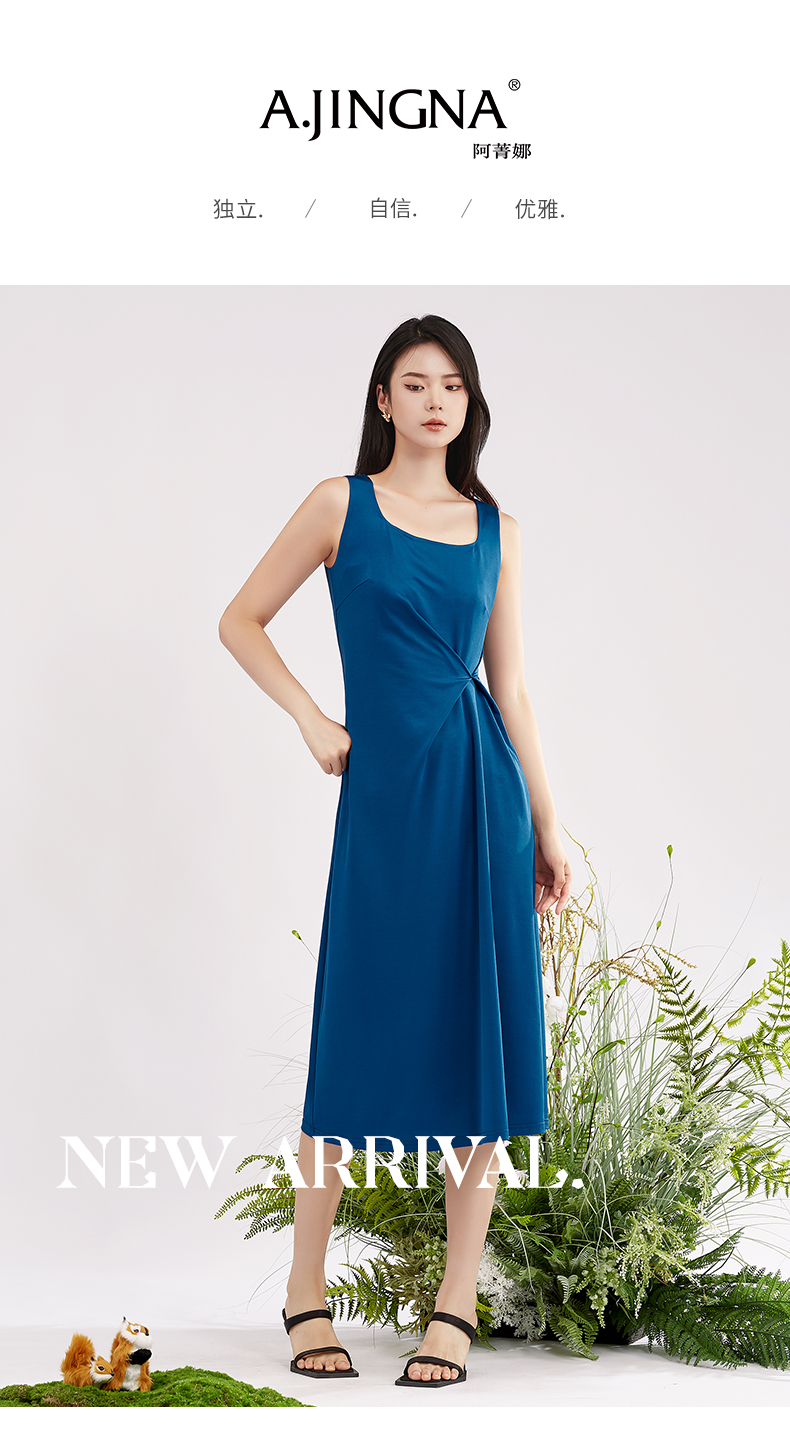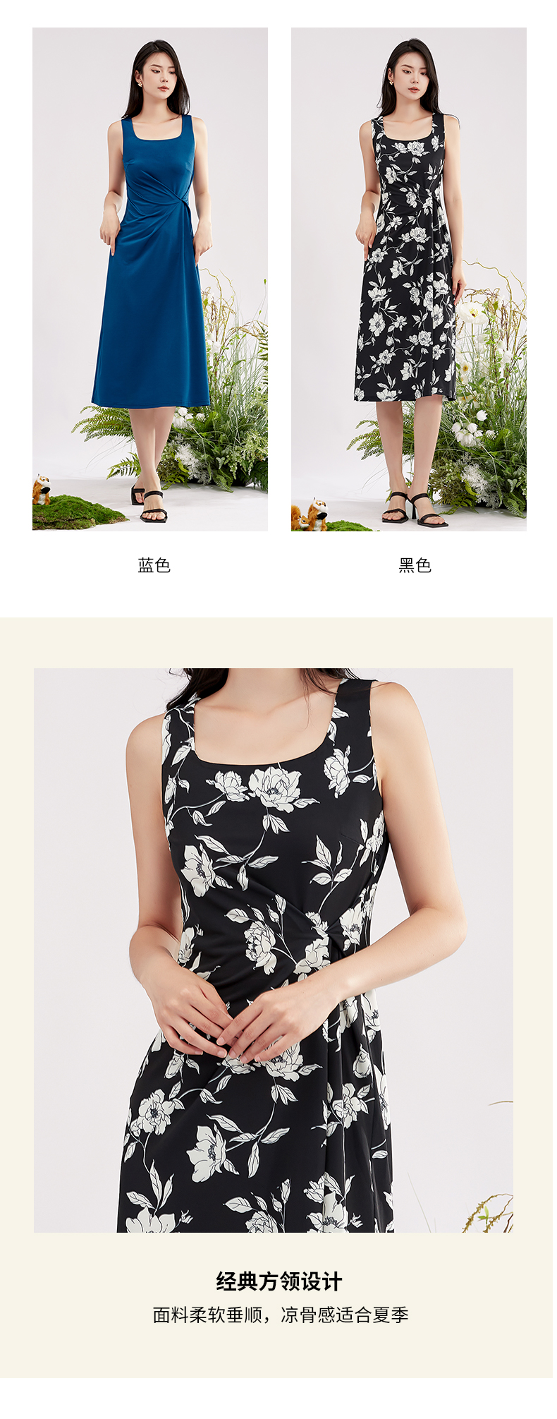 【商场同款】阿菁娜方领设计感吊带连衣裙A30X112089