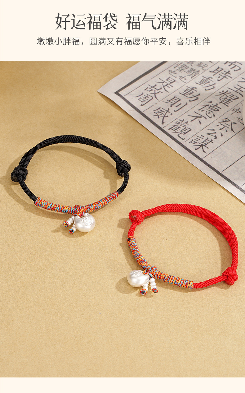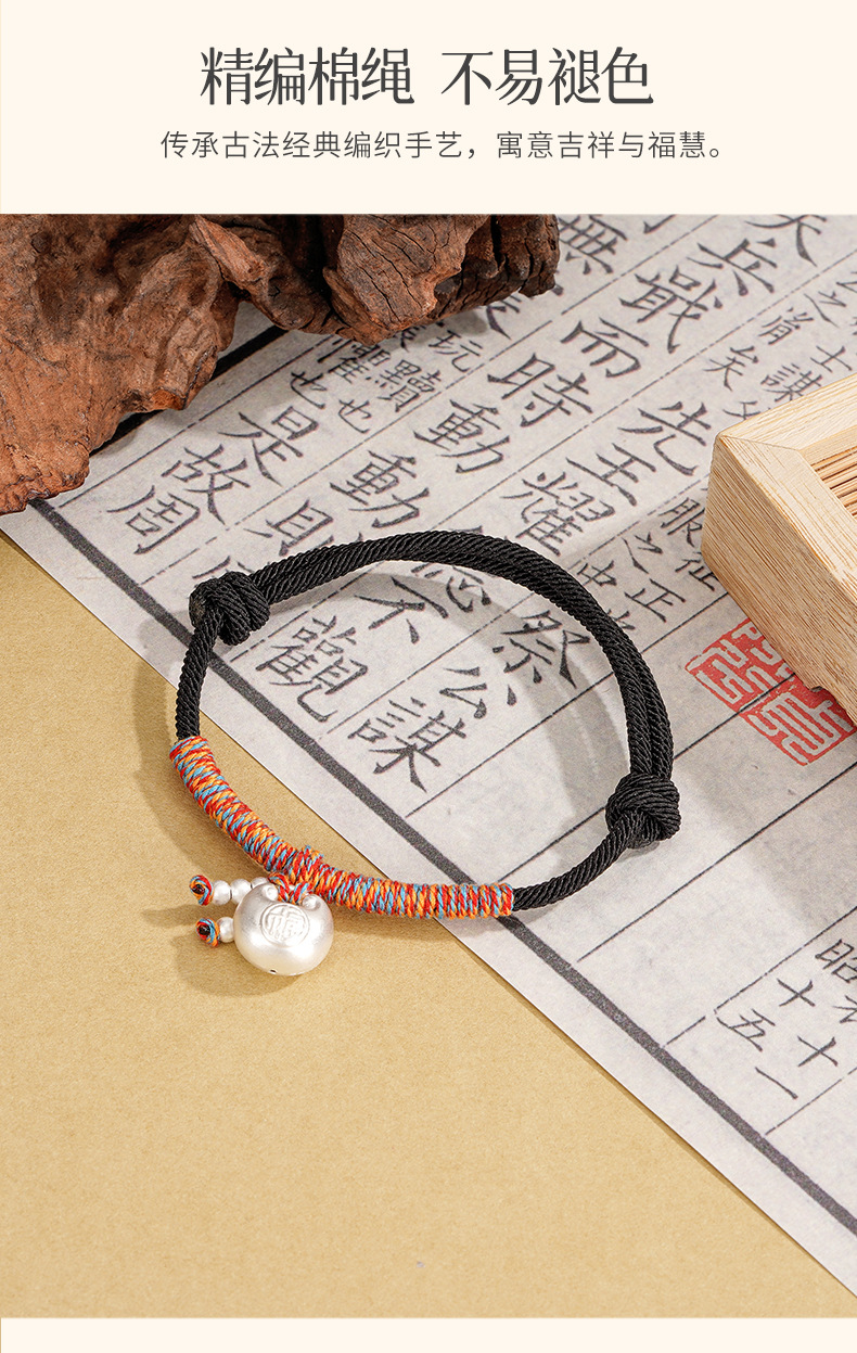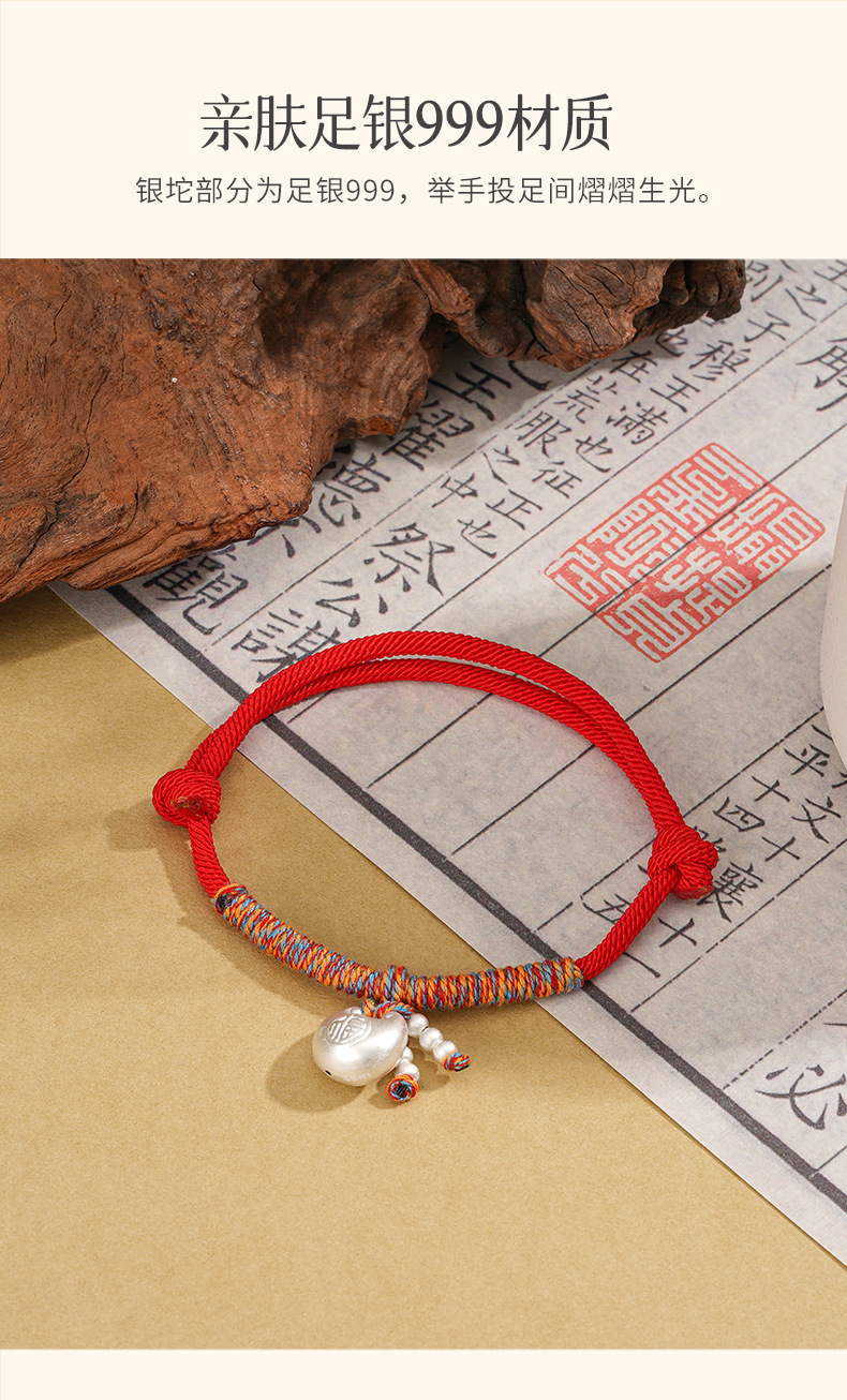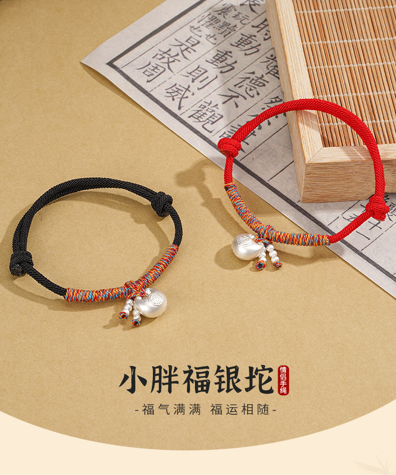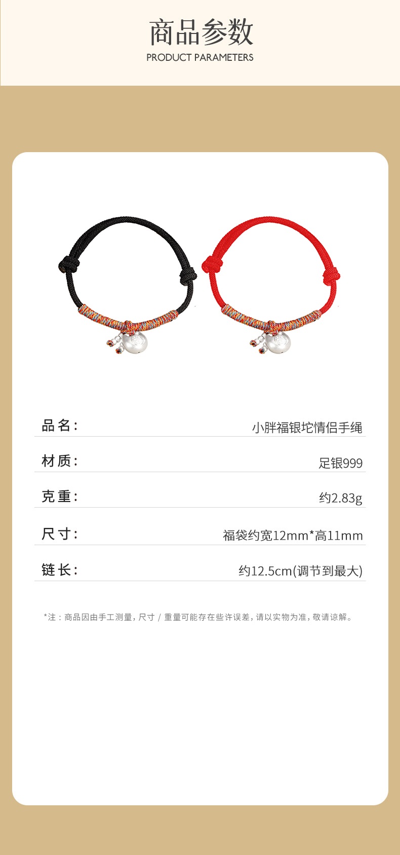 【足银999】 卡蒂罗KADER 小胖福银坨手绳 新中式国潮心想事成平安锁藏式可调节红绳 福运相随平安喜乐福运满满#好运 手链 男女同款情侣款