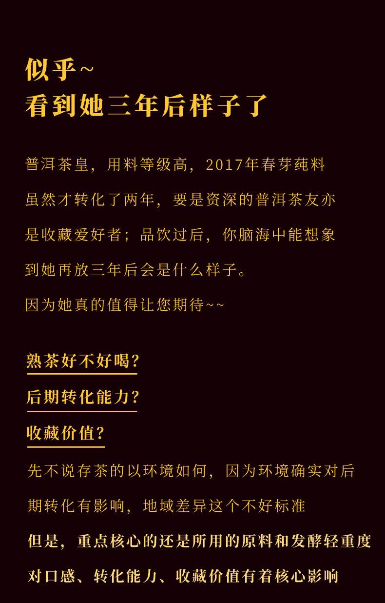 117 收藏无双●普洱茶皇357克/片,纯芽发酵的熟茶!17年压制收藏至今!好茶无需多言!