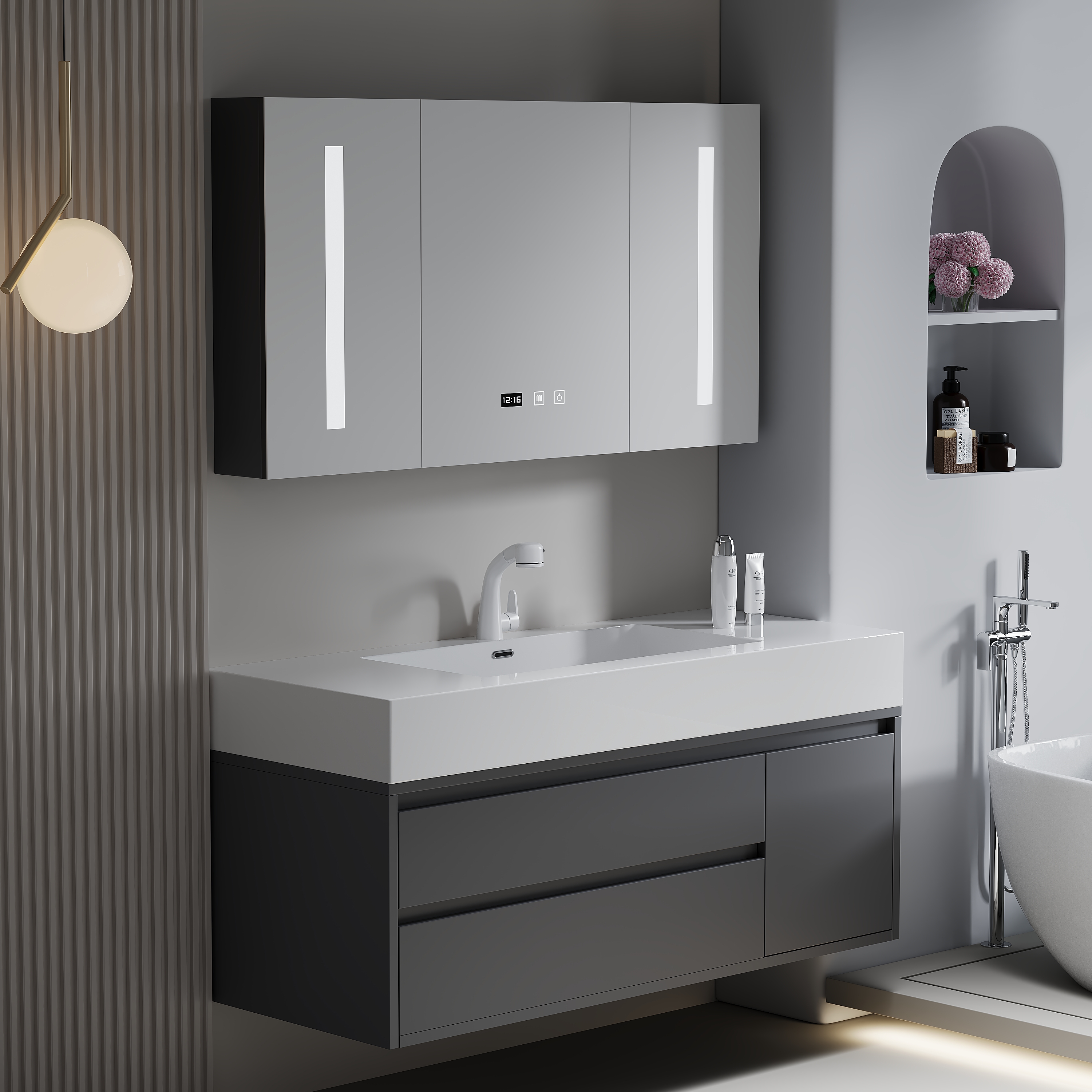 8048-70/80/90/100全白 轻奢岩板浴室柜