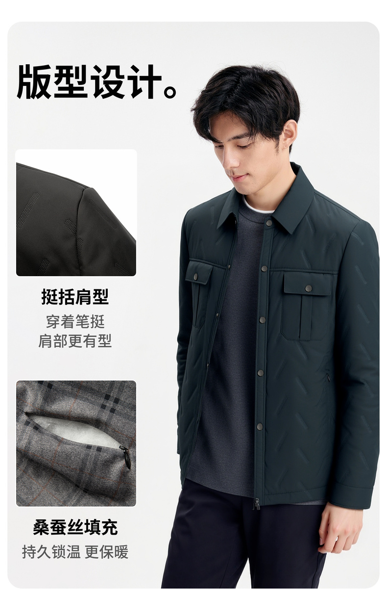 【含桑蚕丝】圣得西男士翻领商务棉服2025秋季新款行政风简约外套