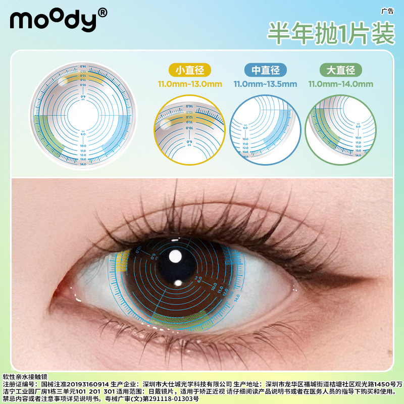 MOODYBLUE隐形眼镜半年抛1片舒适水润透氧水凝胶镜片