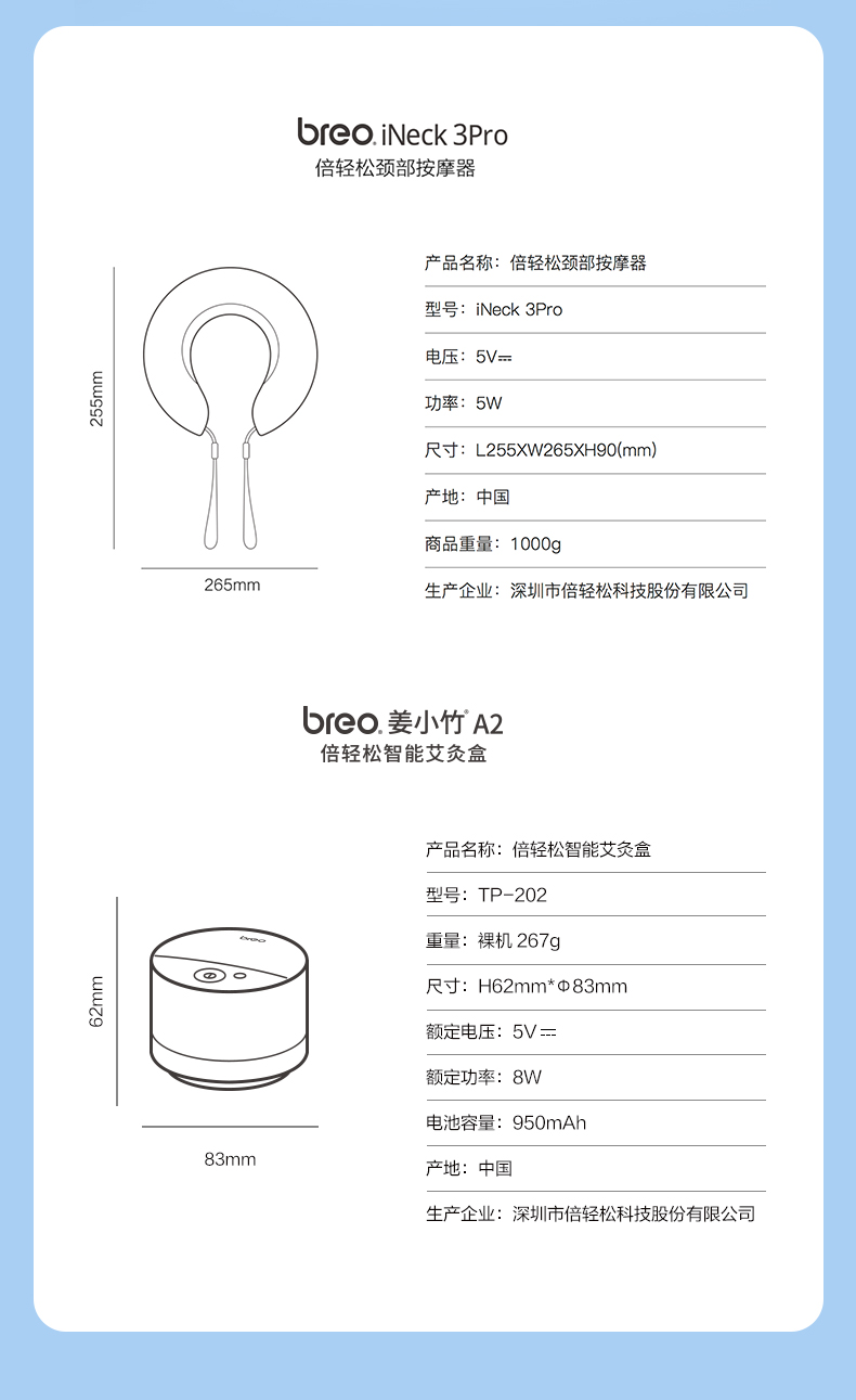 bero/倍轻松 Neck3pro颈部按摩器+艾灸盒A2+旅行箱套装