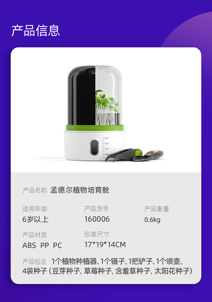 【水培土培,见证植物生长】科学实验罐头培育舱儿童种植物盆栽套装小学生器材steam益智玩具豆芽机