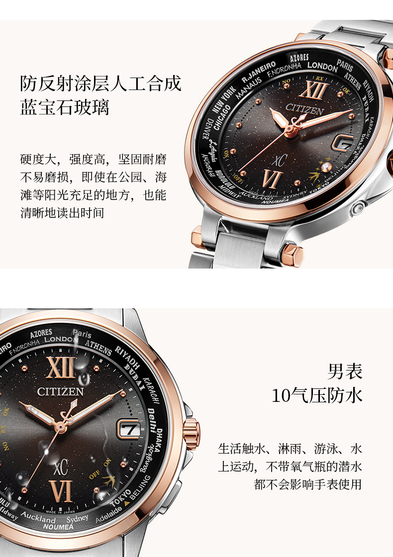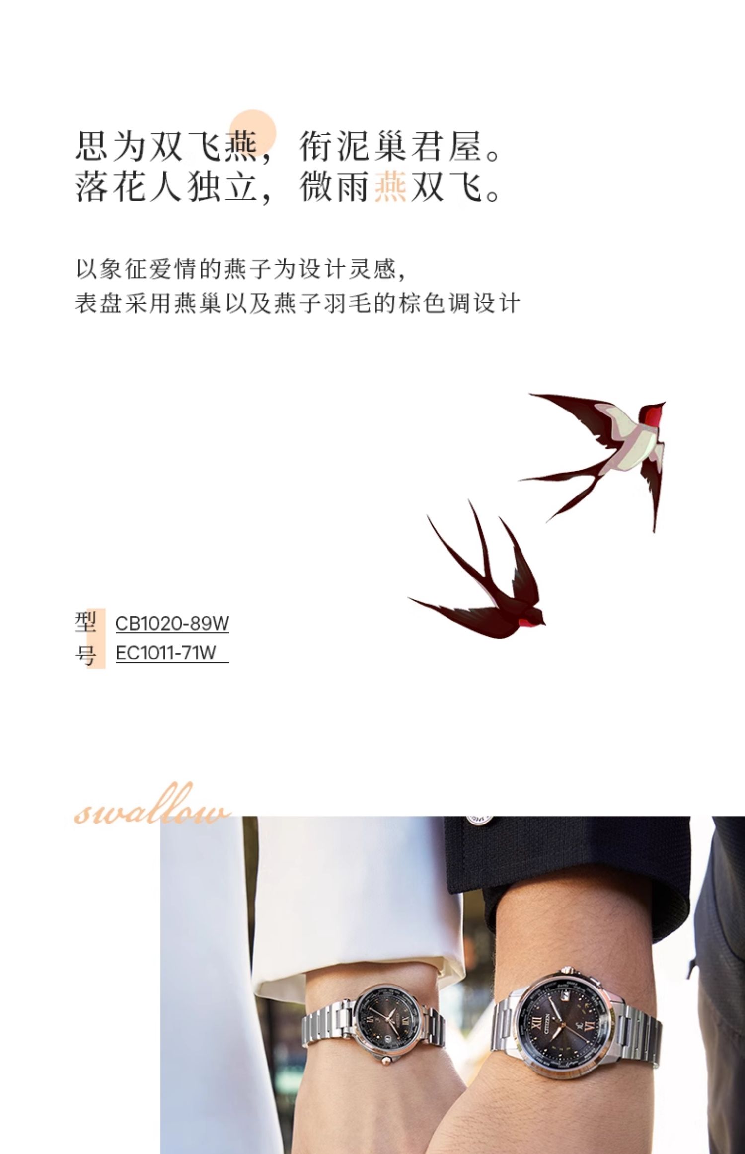 CITIZEN/西铁城xC系列间樱花粉飞燕表盘电波情侣男表CB1020-89W