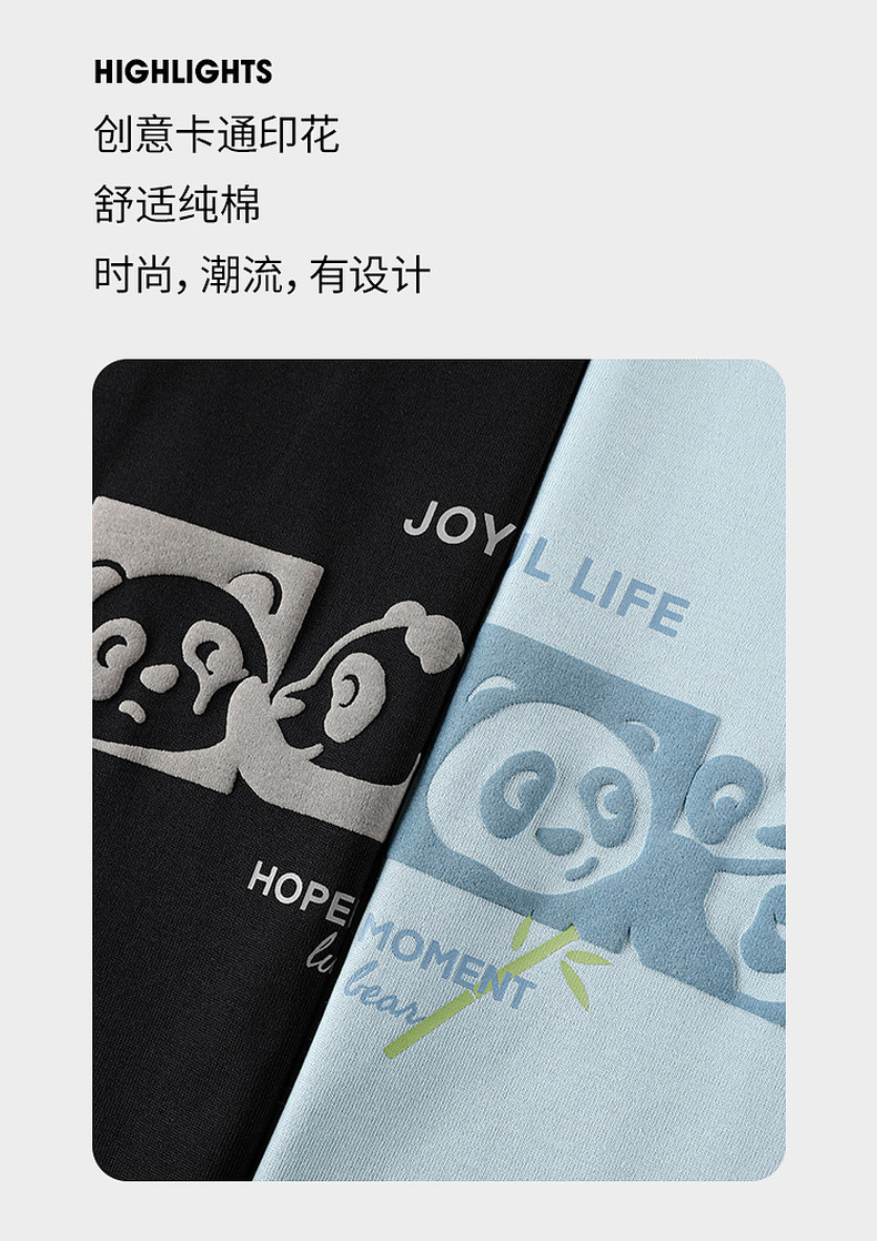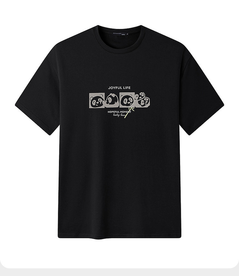 GXG男装【绒面熊猫】25夏季时尚小熊猫图案纯棉舒适男式短袖t恤K&C