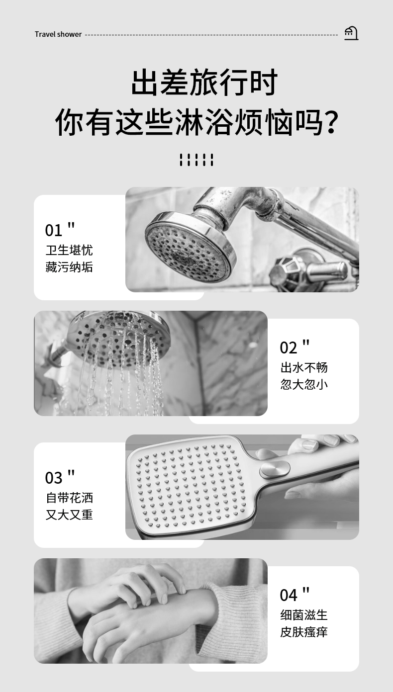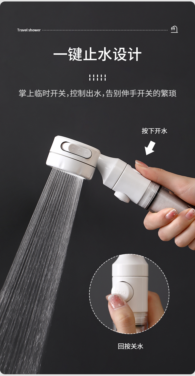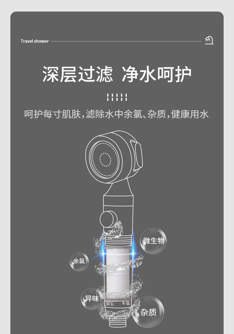 FaSoLa增压过滤花洒净水抑菌美肤喷头热水器旅行便携洗澡淋浴头