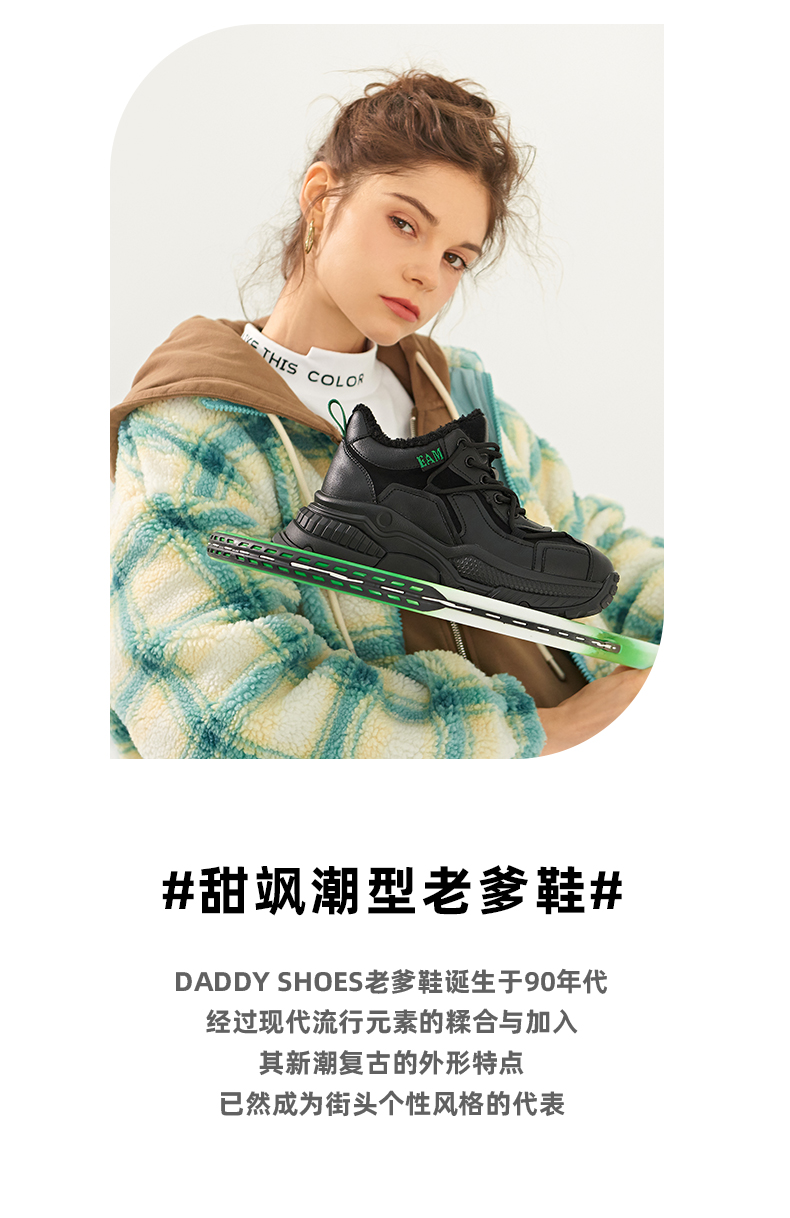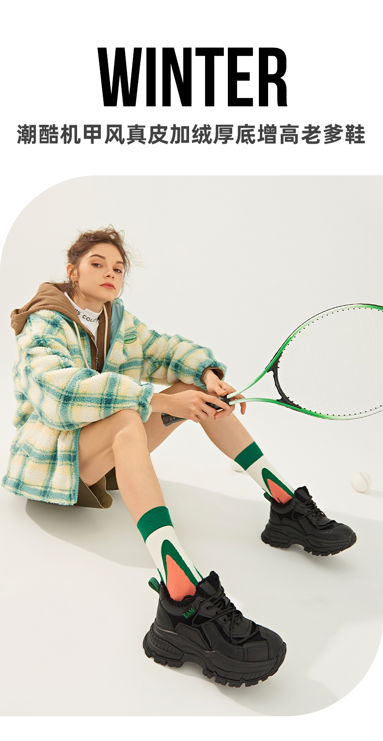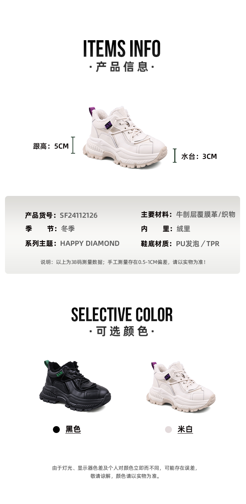 【新春秒杀】Safiya/索菲娅 潮酷机甲风2022冬季新款真皮加绒厚底增高老爹鞋SF24112126