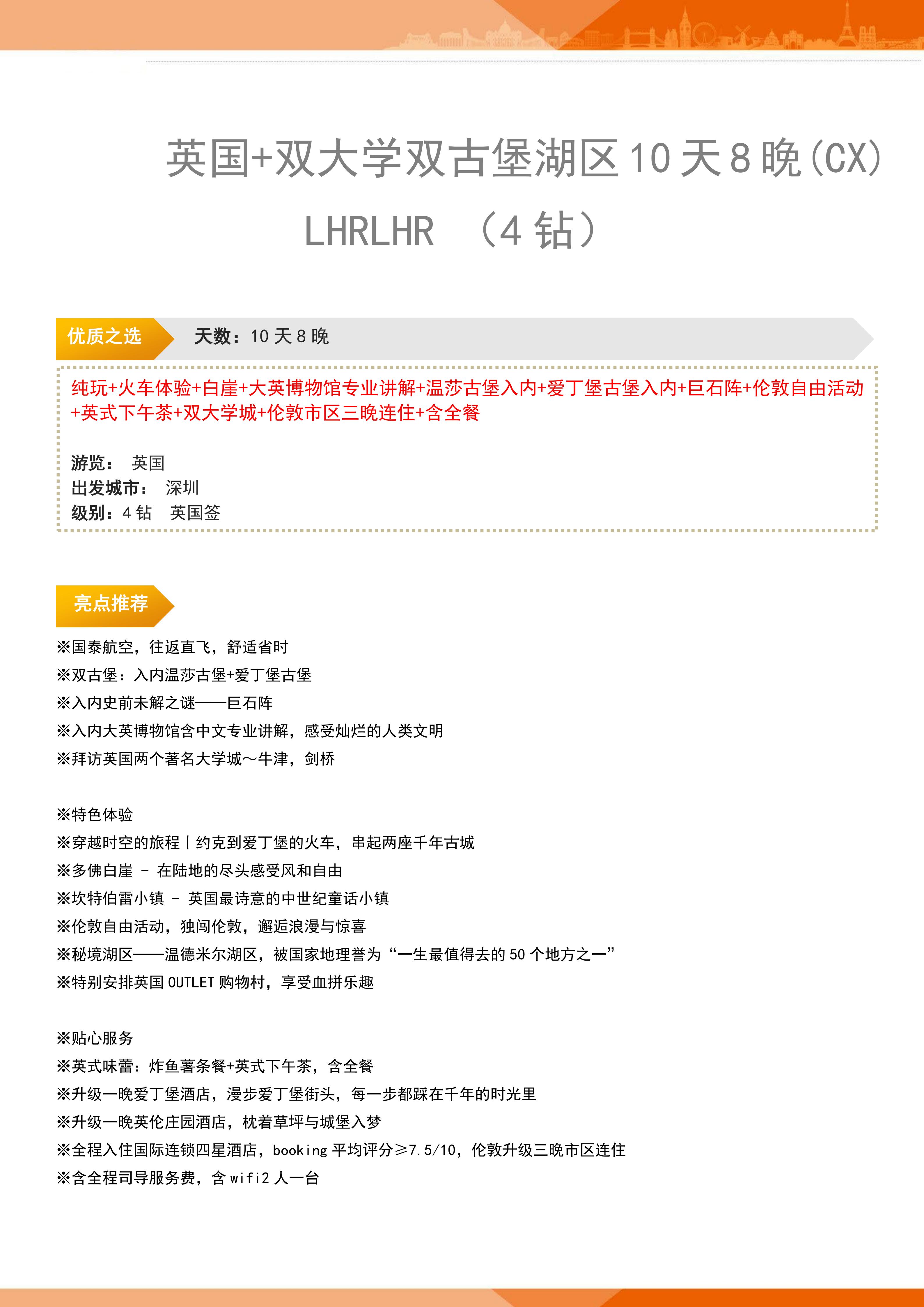 【春节、寒假】<英国双大学双古堡湖区10天纯玩>深圳起止+火车体验+白崖+大英博物馆专业讲解+温莎古堡入内+爱丁堡古堡入内+巨石阵+伦敦市区三晚连住+英式下午茶+牛津大学+剑桥大学+含全餐