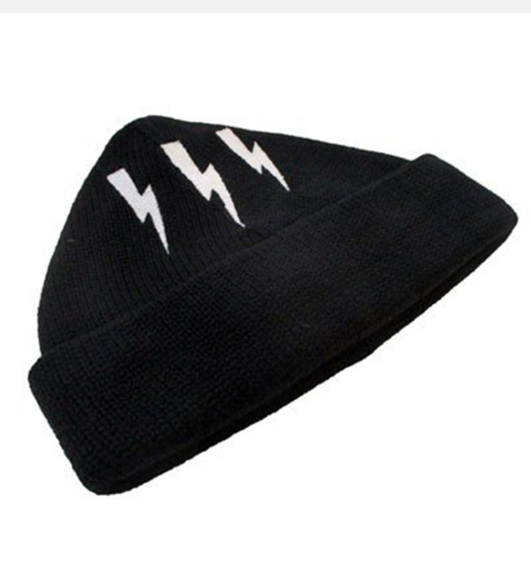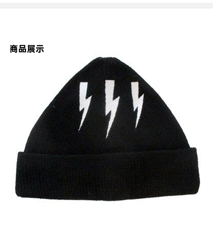 NEIL BARRETT 尼奥.贝奈特 羊毛白色闪电徽标针织帽 黑色 BCP261 H9568 524