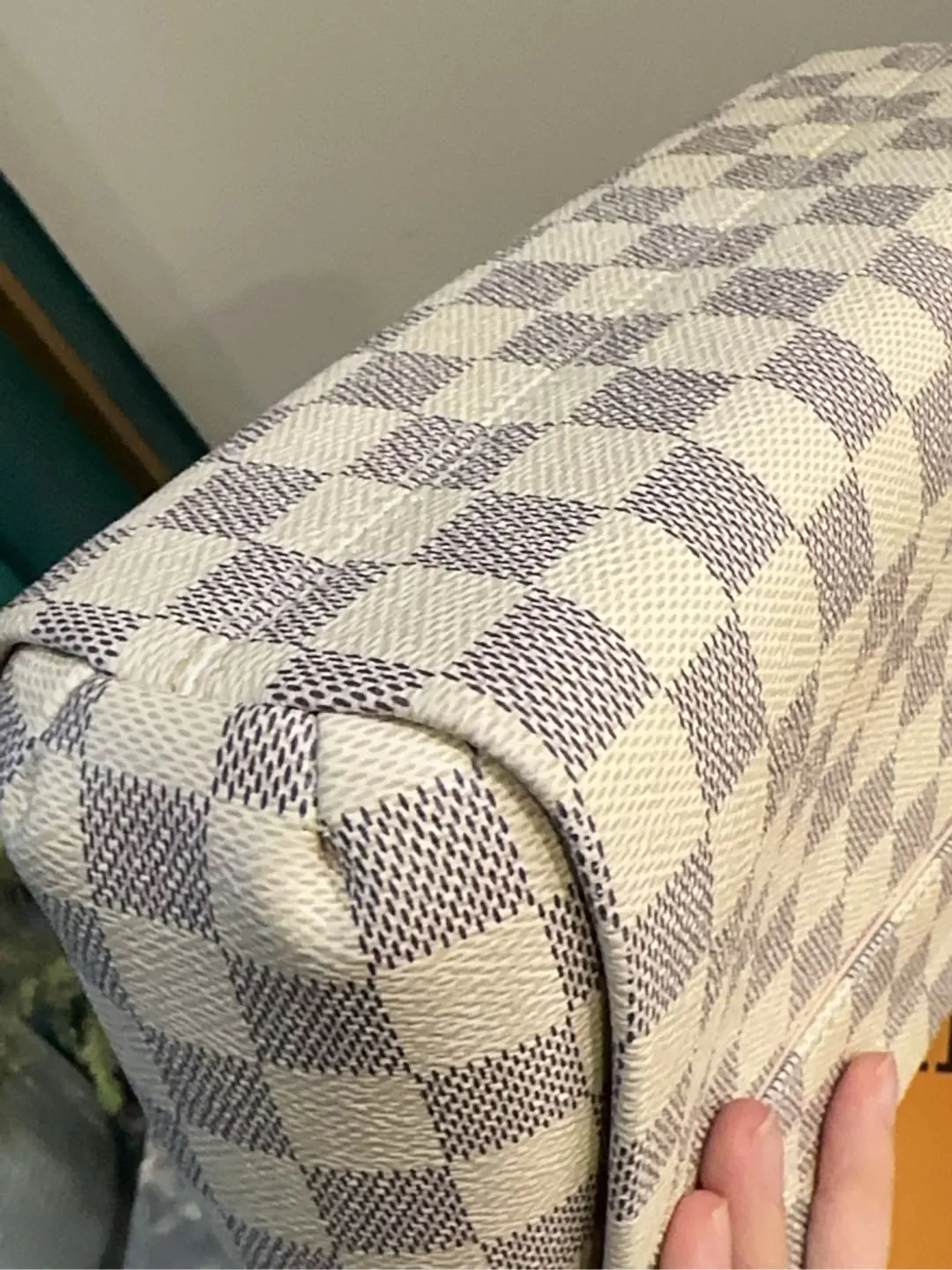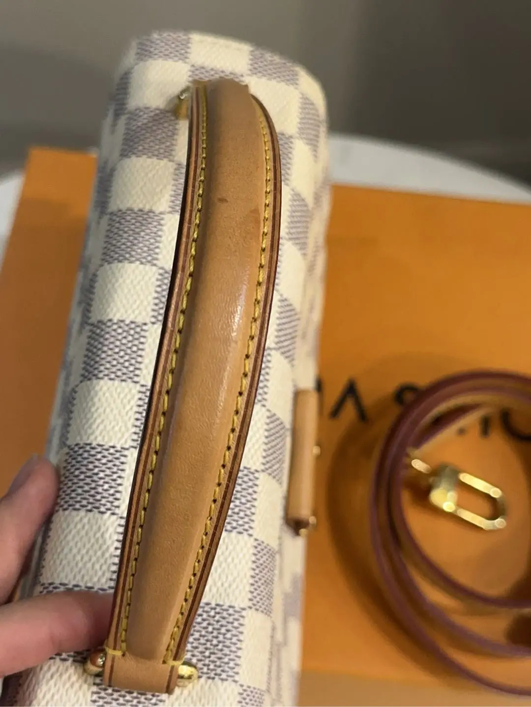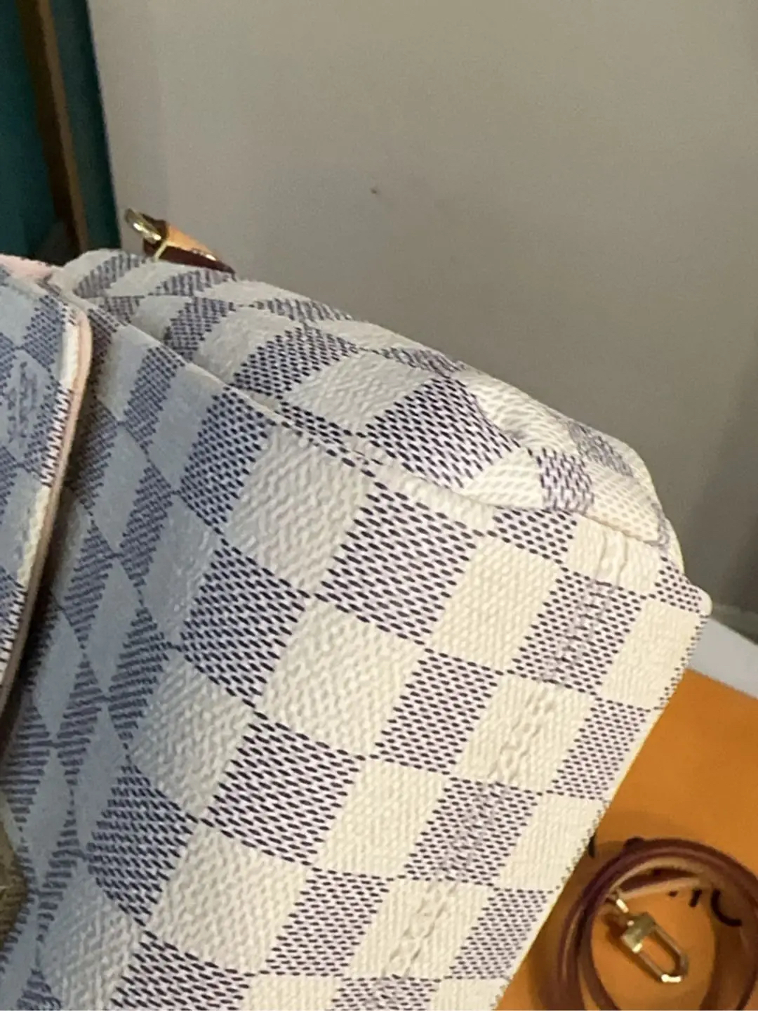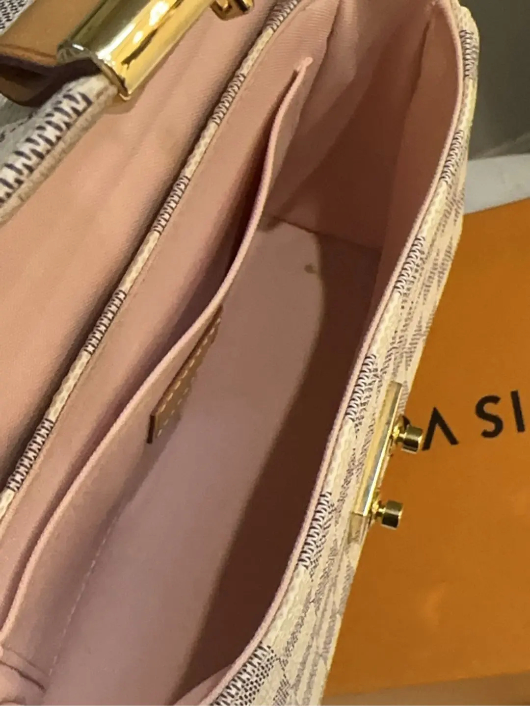 【商品详情】正品二手 LV Croisette 白棋盘格 流苏挂件 邮差包🍑97新 23*16 配件:流苏挂件 肩带 防尘袋 盒子。lady范儿十足!