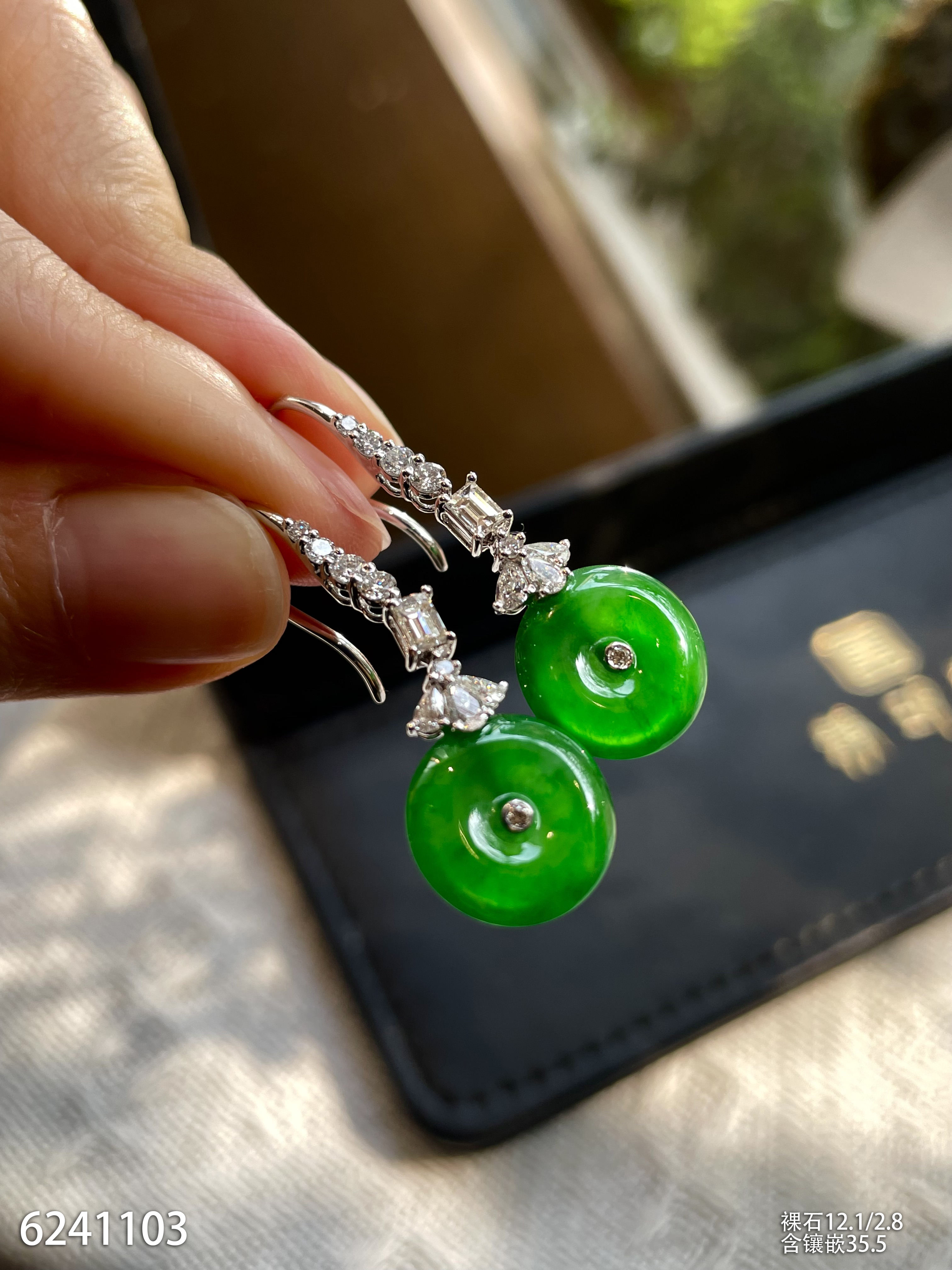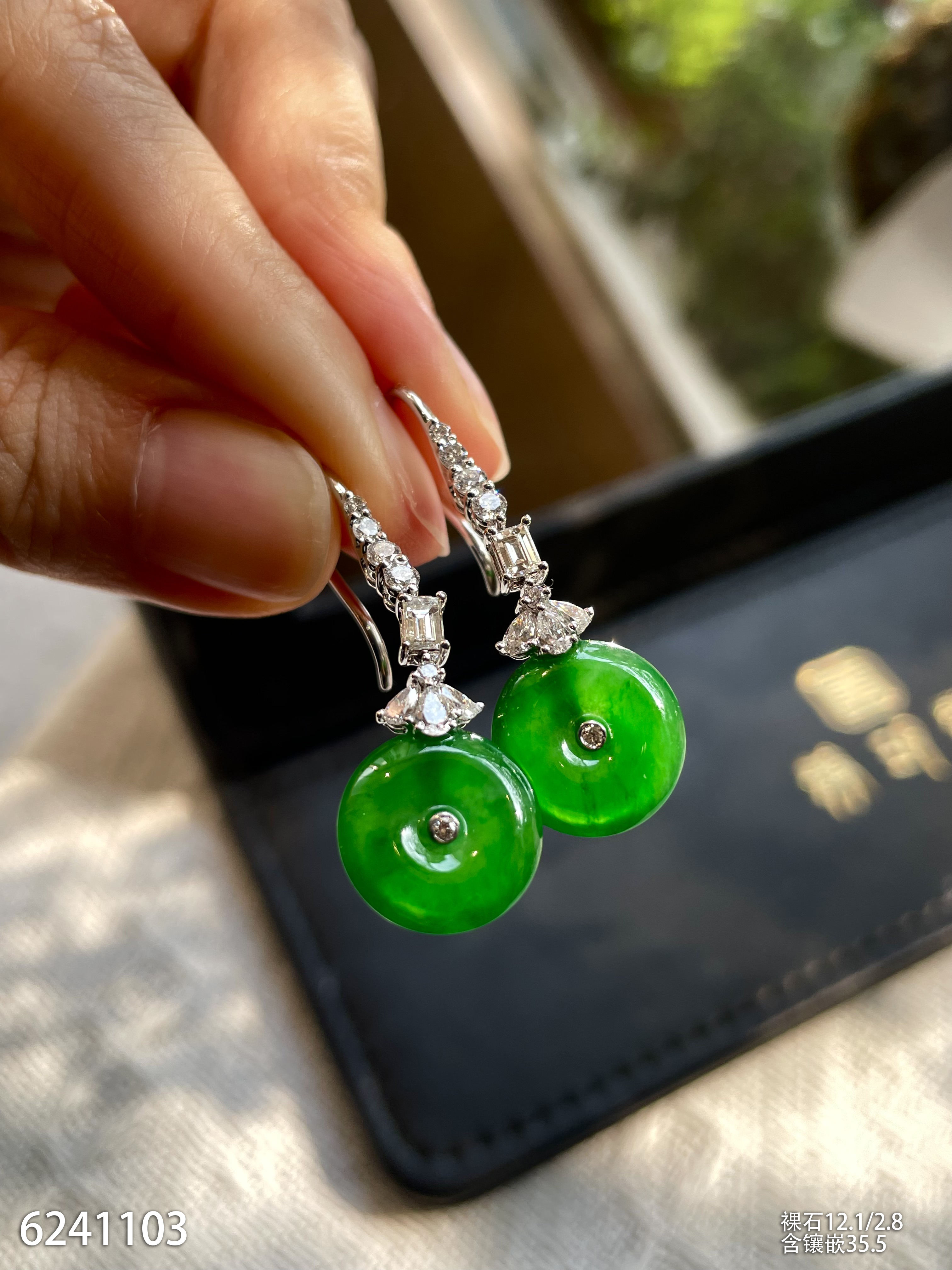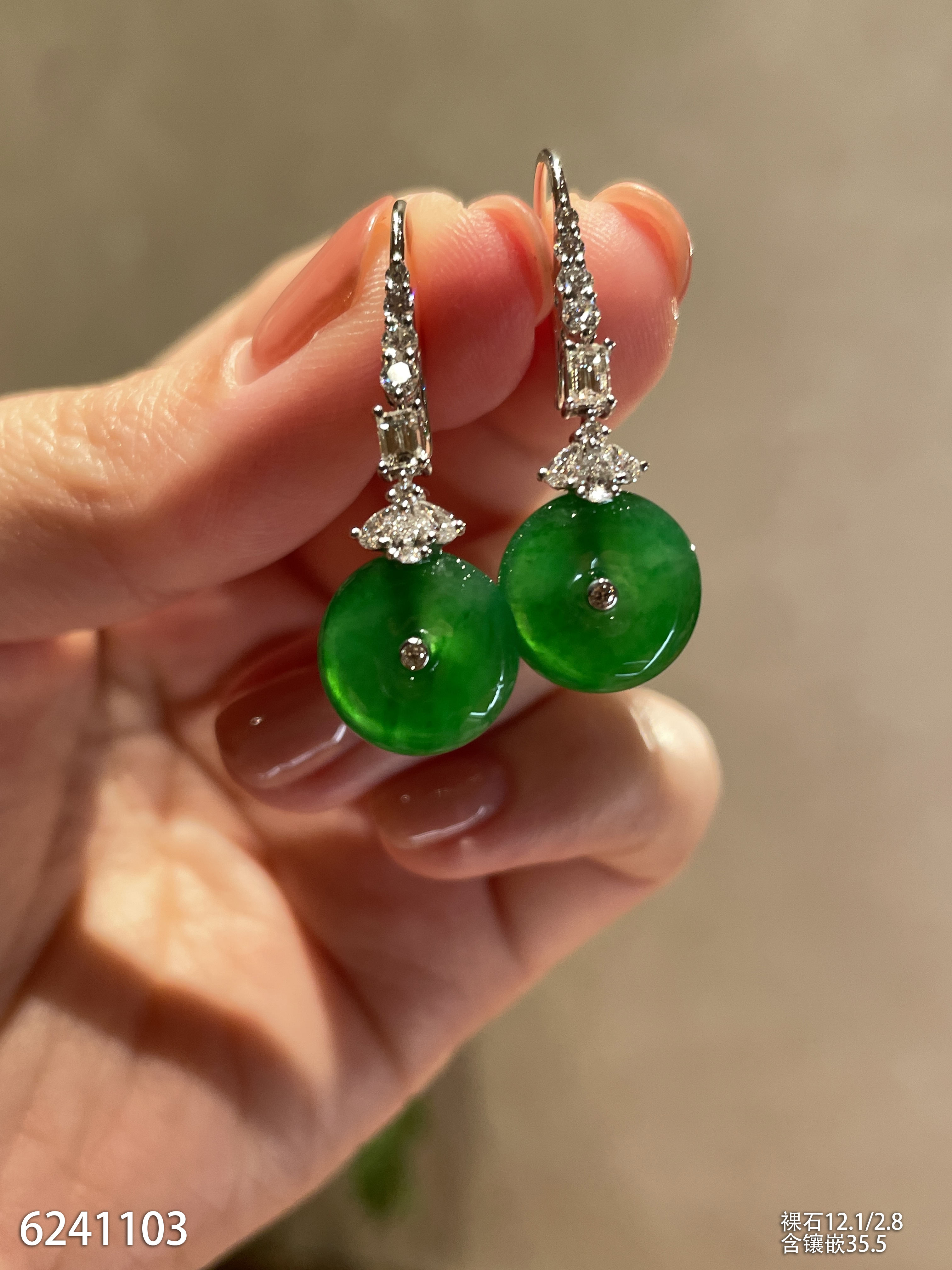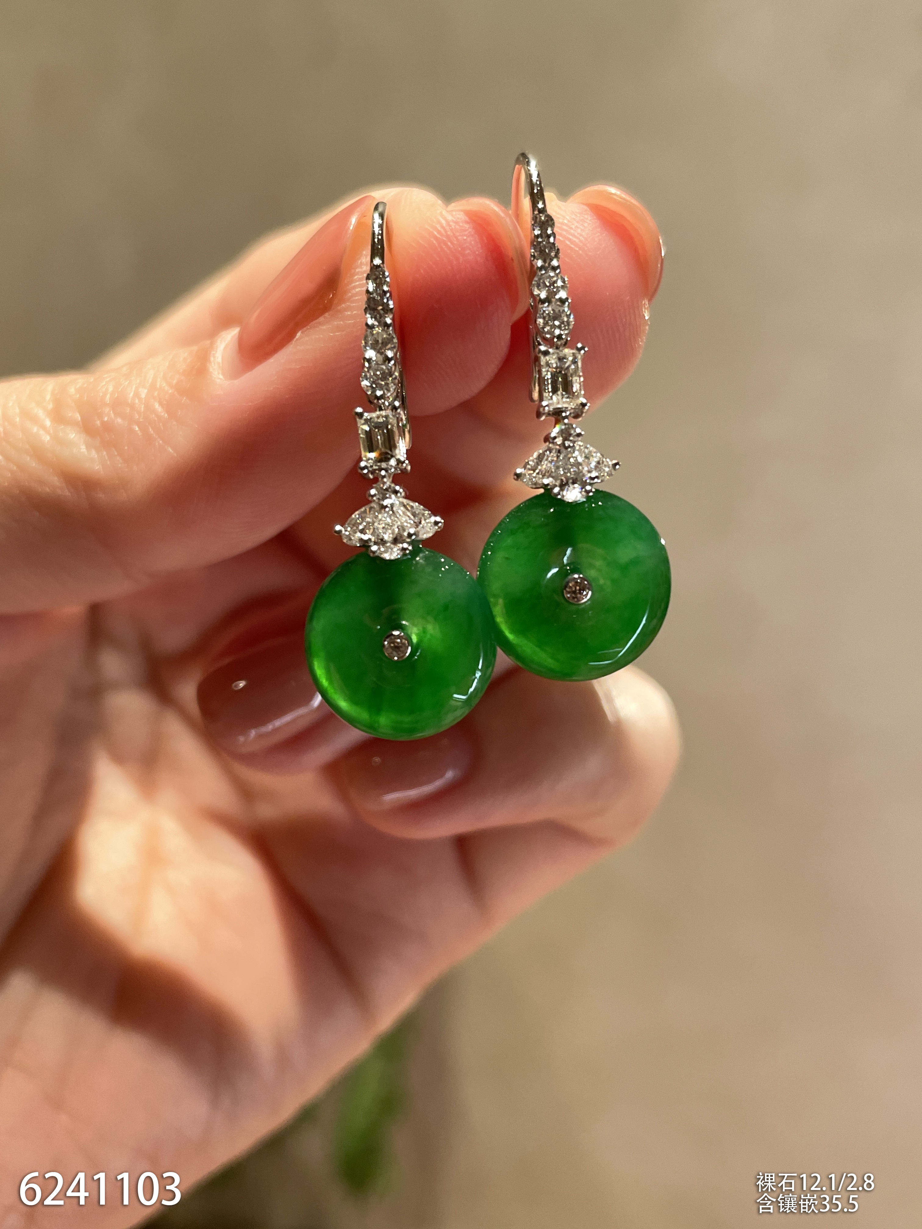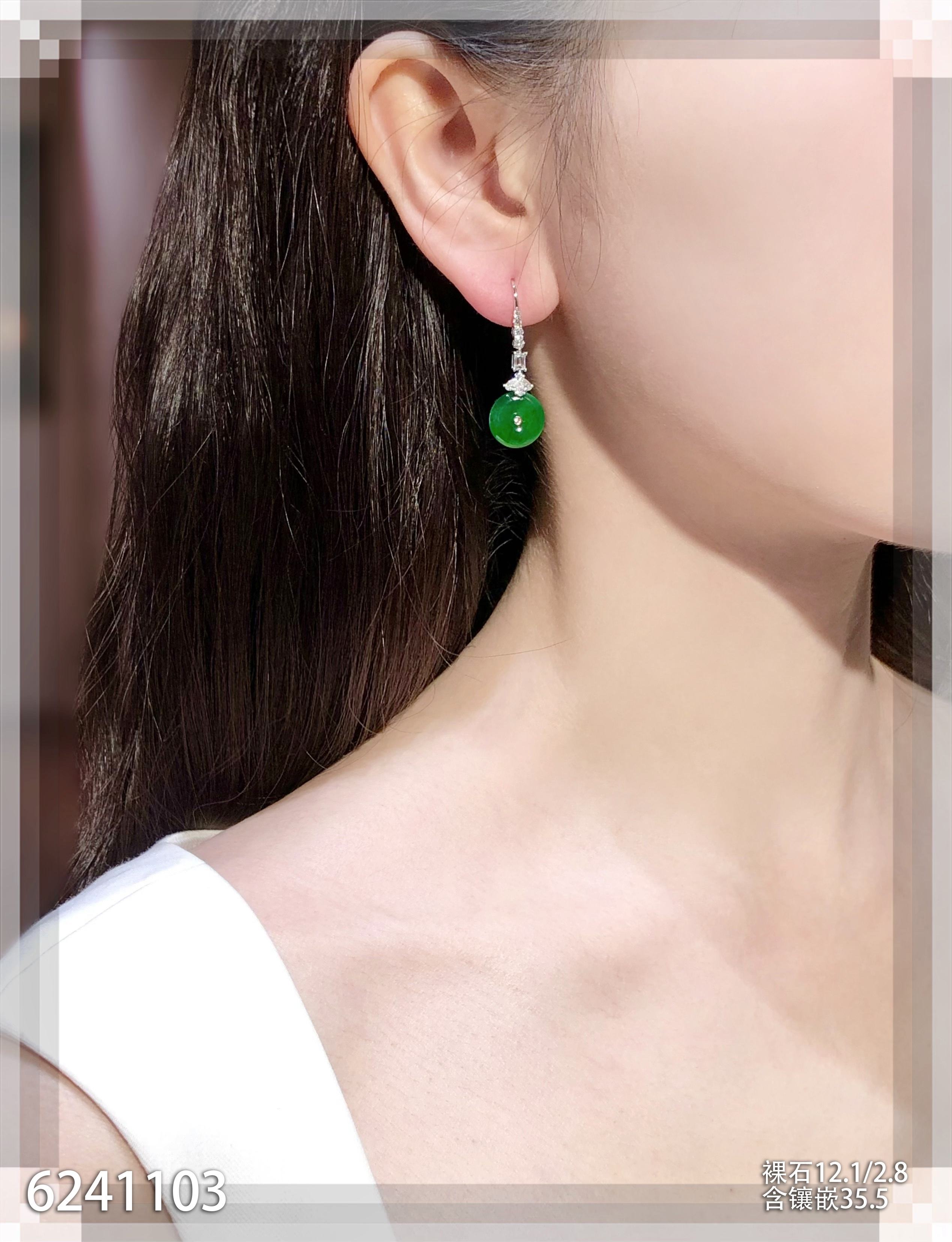 高冰种艳绿葫芦耳坠 72999【6024304】