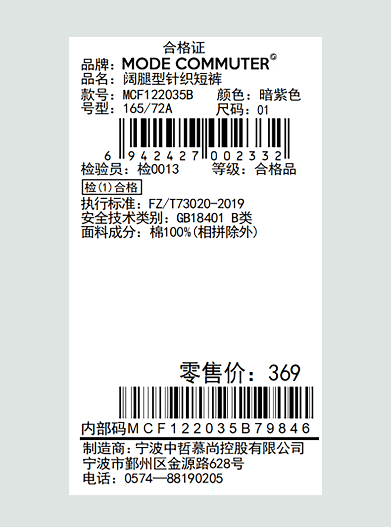 MODE COMMUTER | MC全棉优质精纺棉纱阔腿型梭织短裤MCF122035B