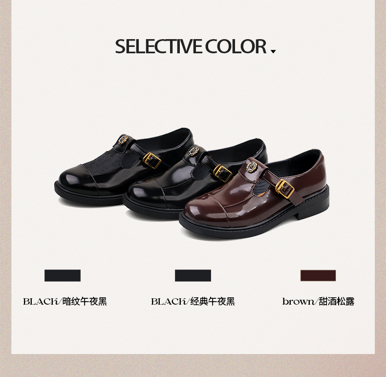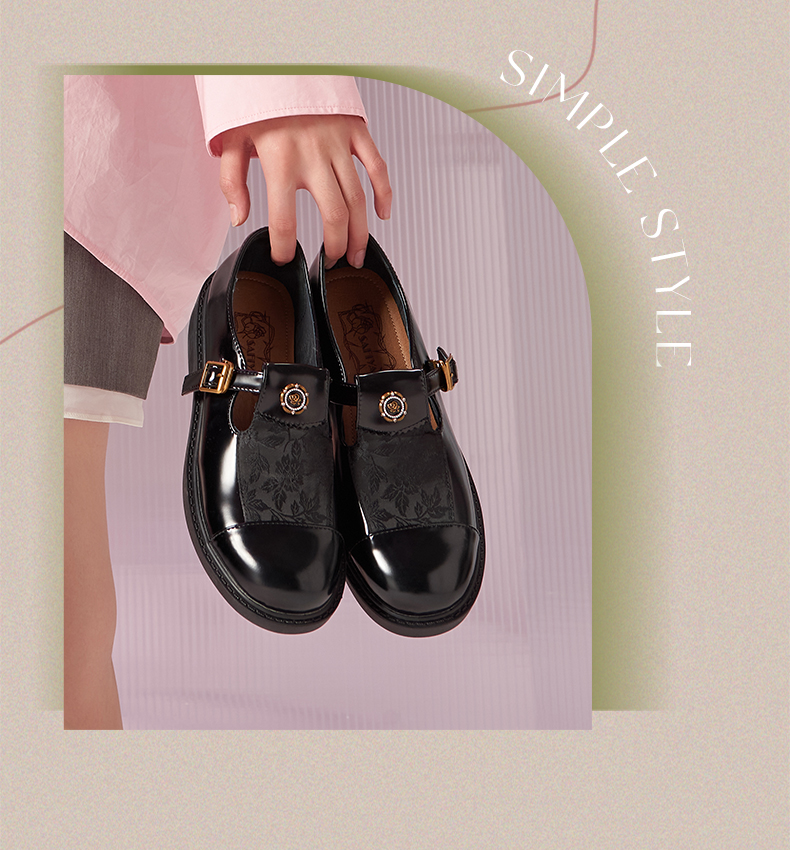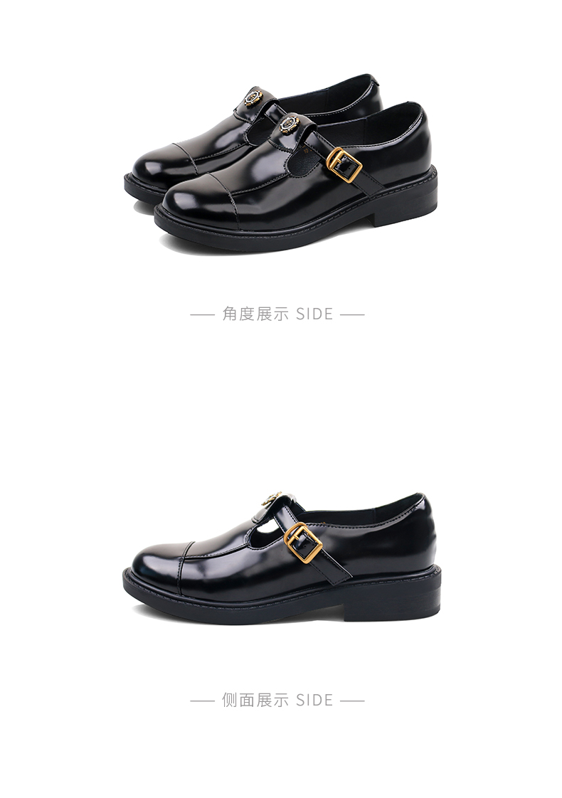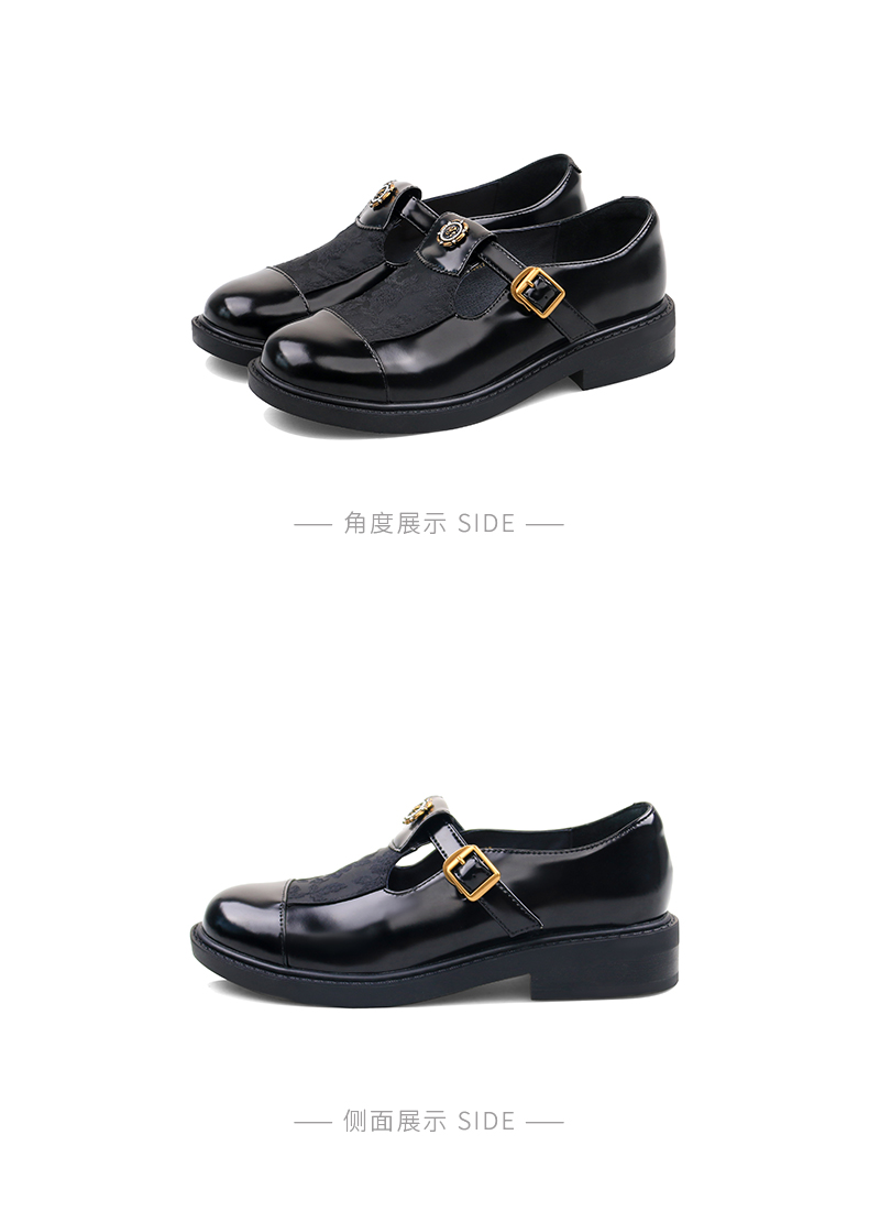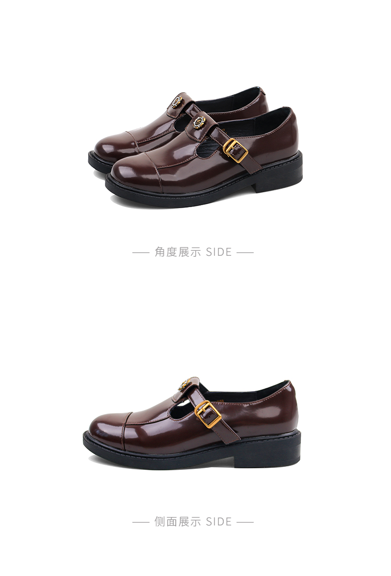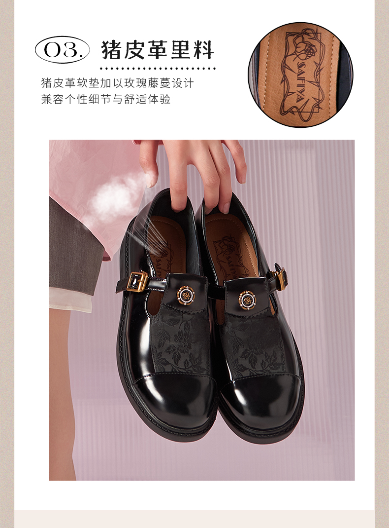 Safiya/索菲娅法式复古T字带玫瑰扣深口粗跟玛丽珍小皮鞋 SFD1112050/SF43112050