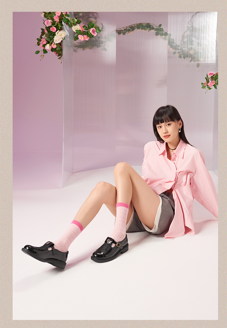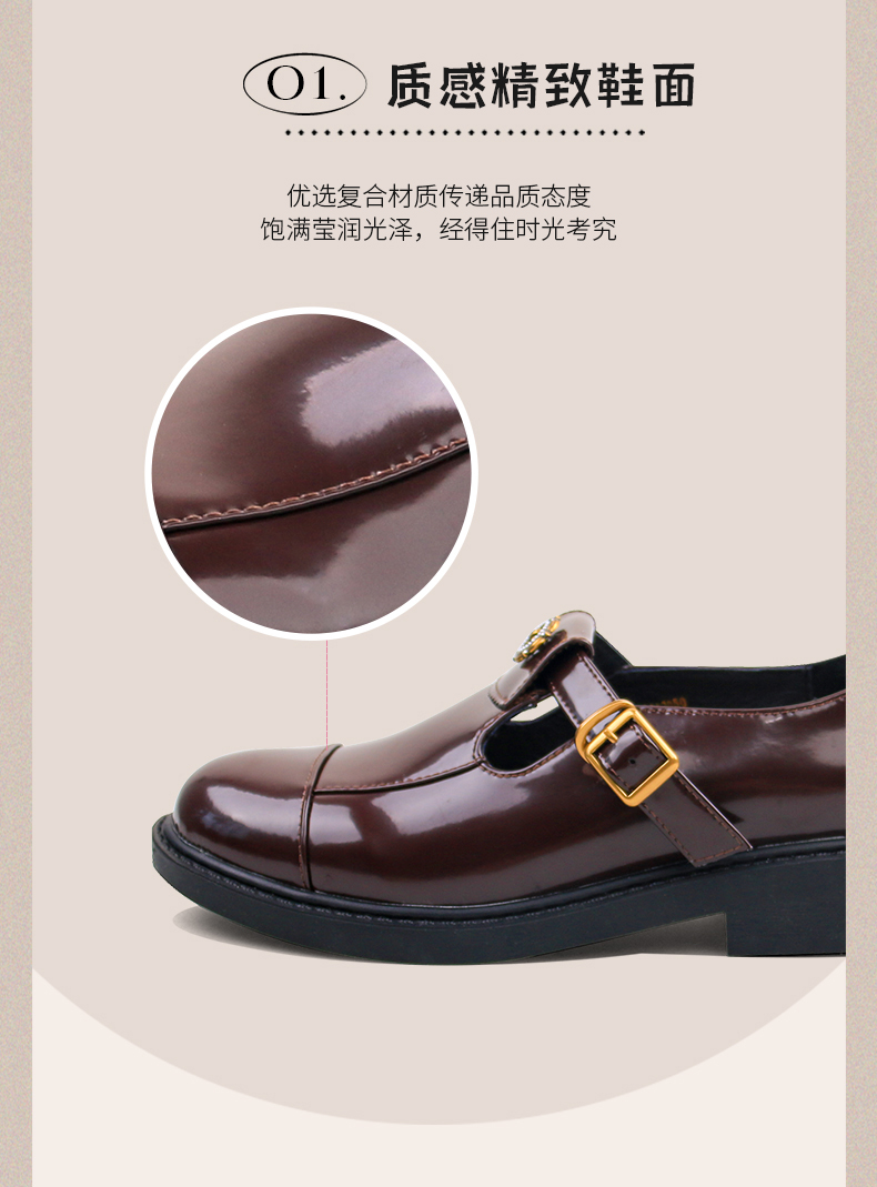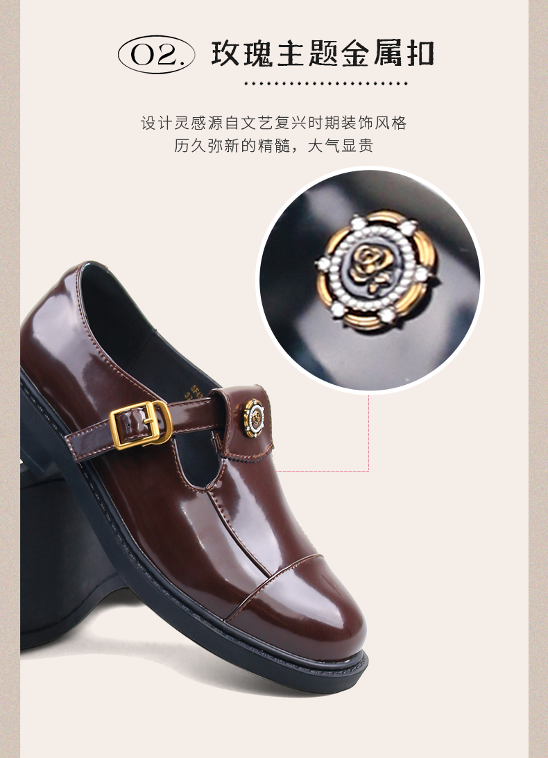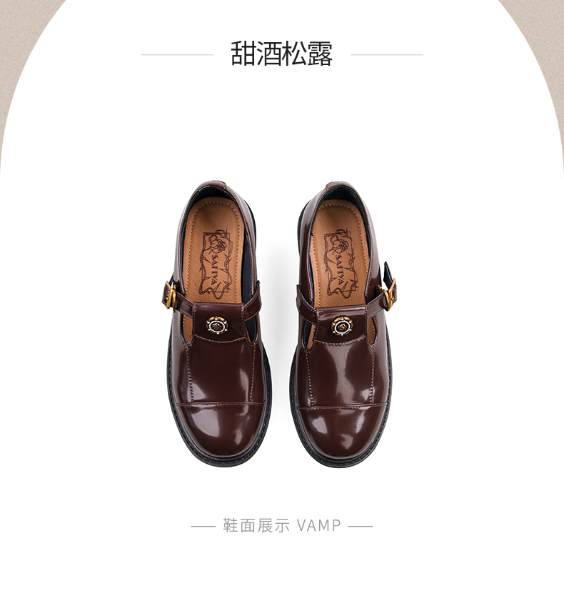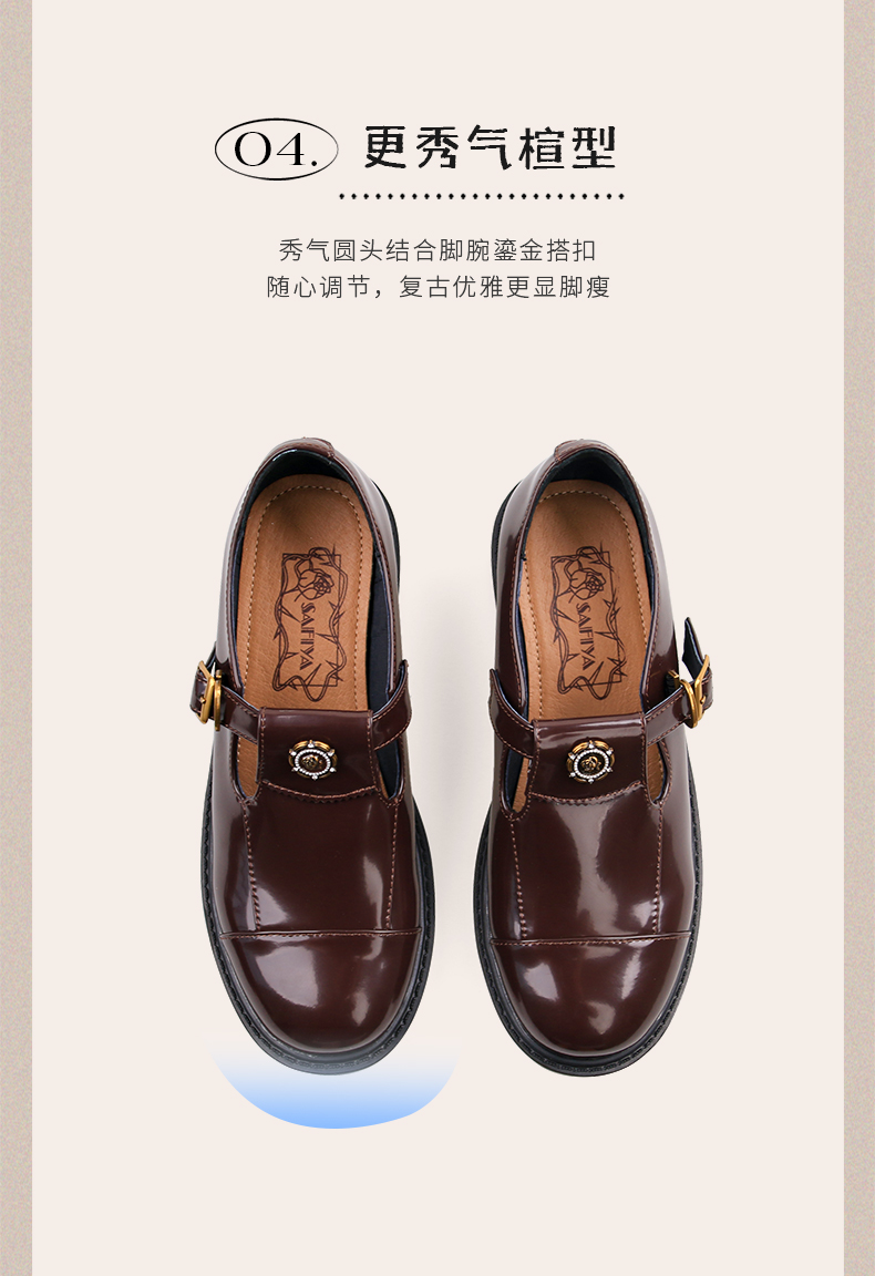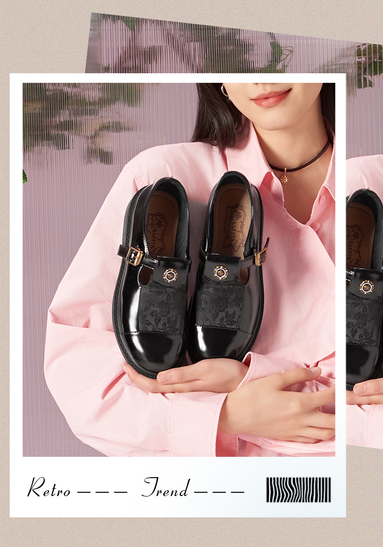 Safiya/索菲娅法式复古T字带玫瑰扣深口粗跟玛丽珍小皮鞋 SFD1112050/SF43112050