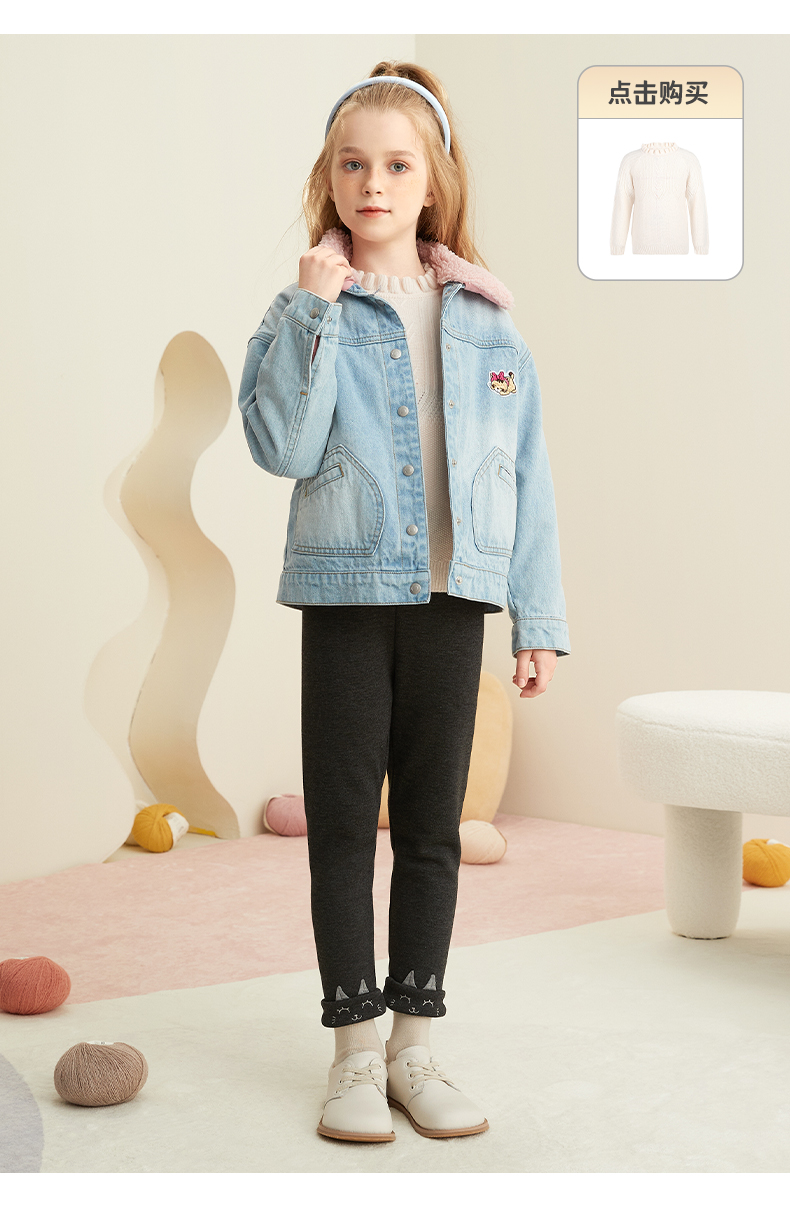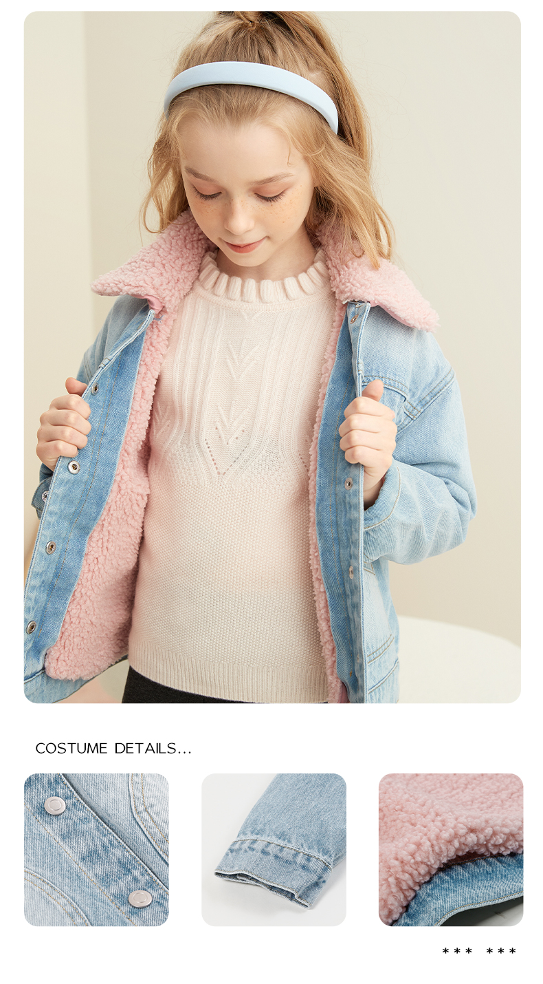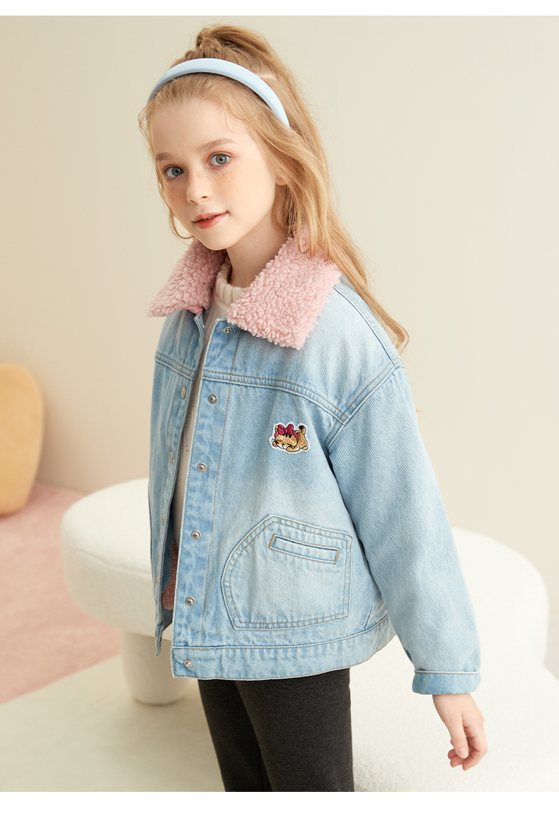 【童装加绒加厚牛仔外套】21年秋冬新品女童水洗牛仔外套加绒内胆保暖外套