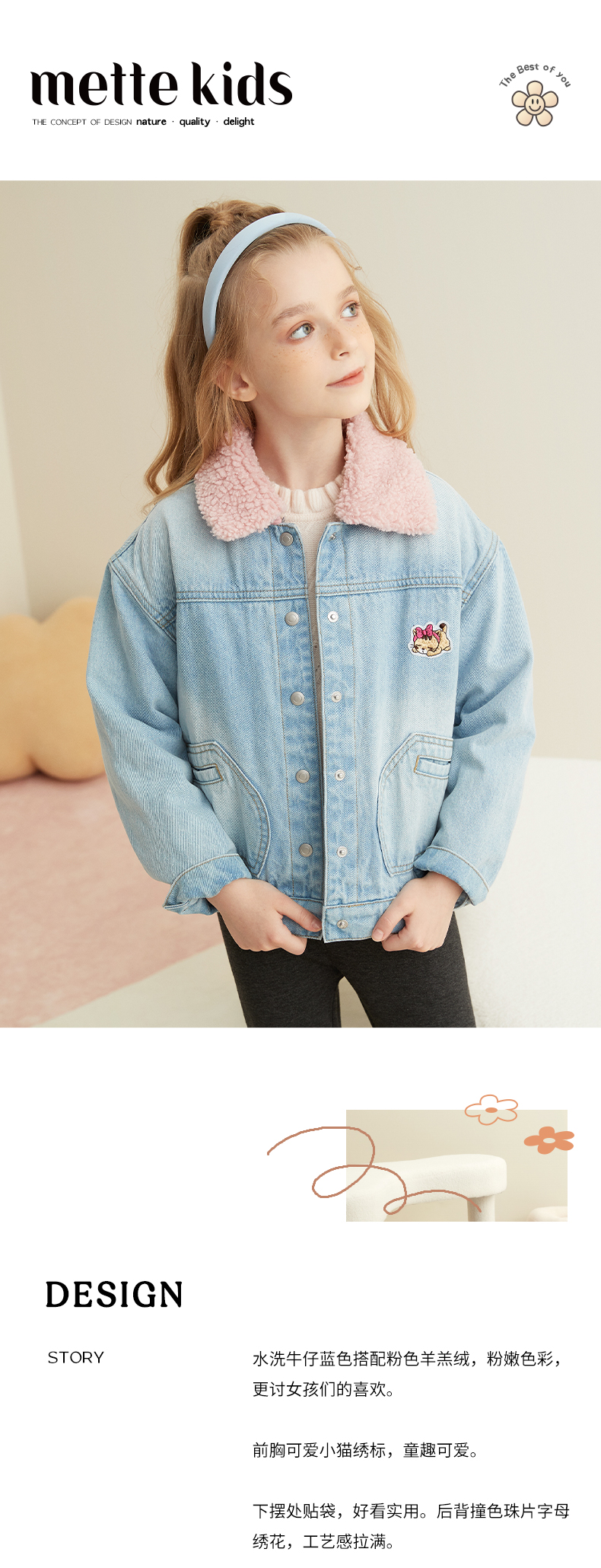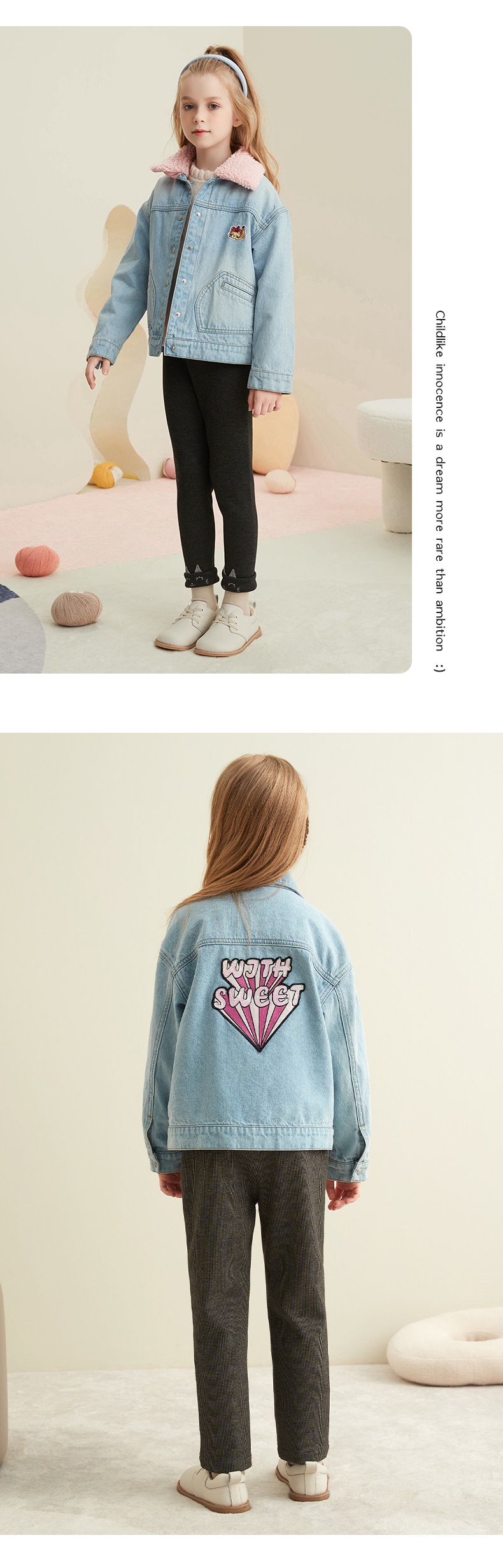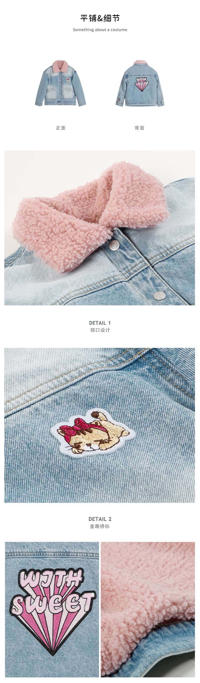 【童装加绒加厚牛仔外套】21年秋冬新品女童水洗牛仔外套加绒内胆保暖外套