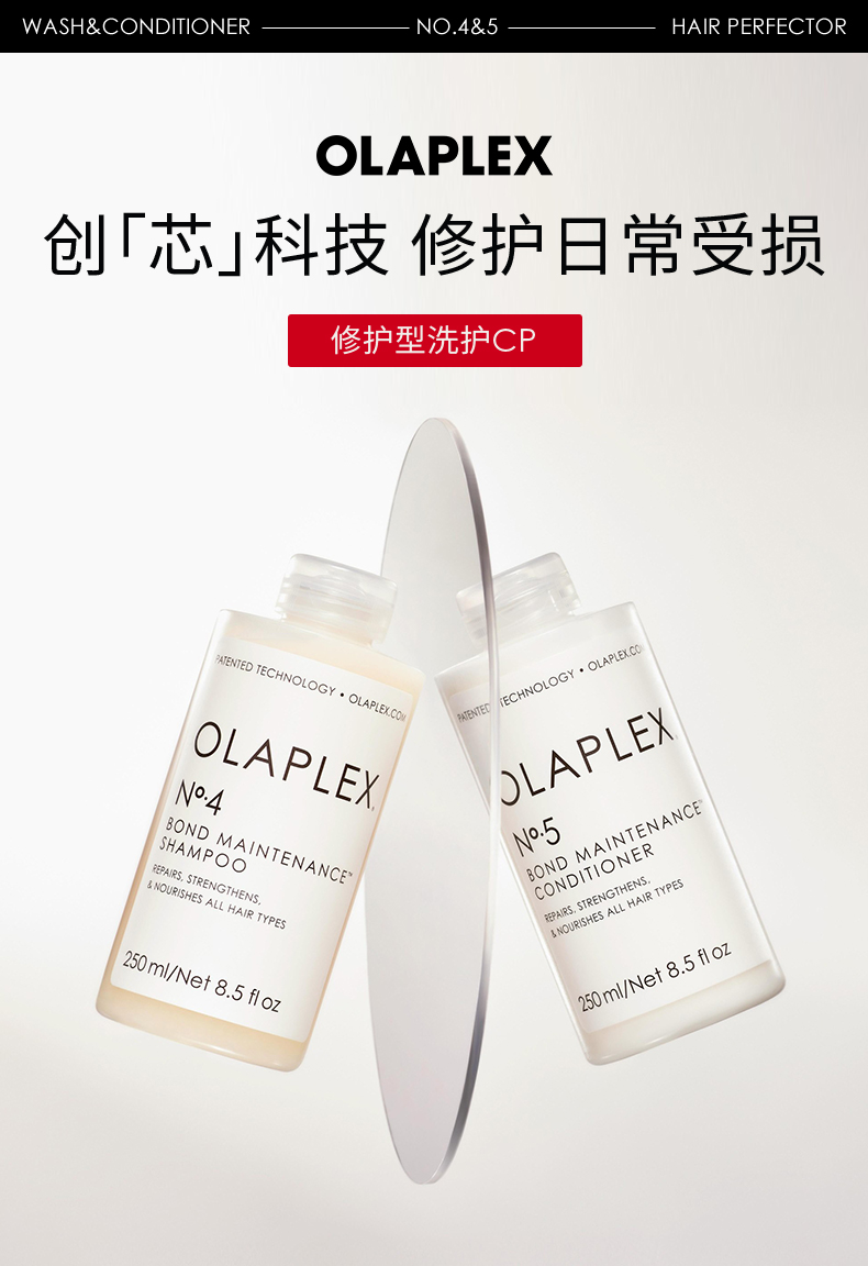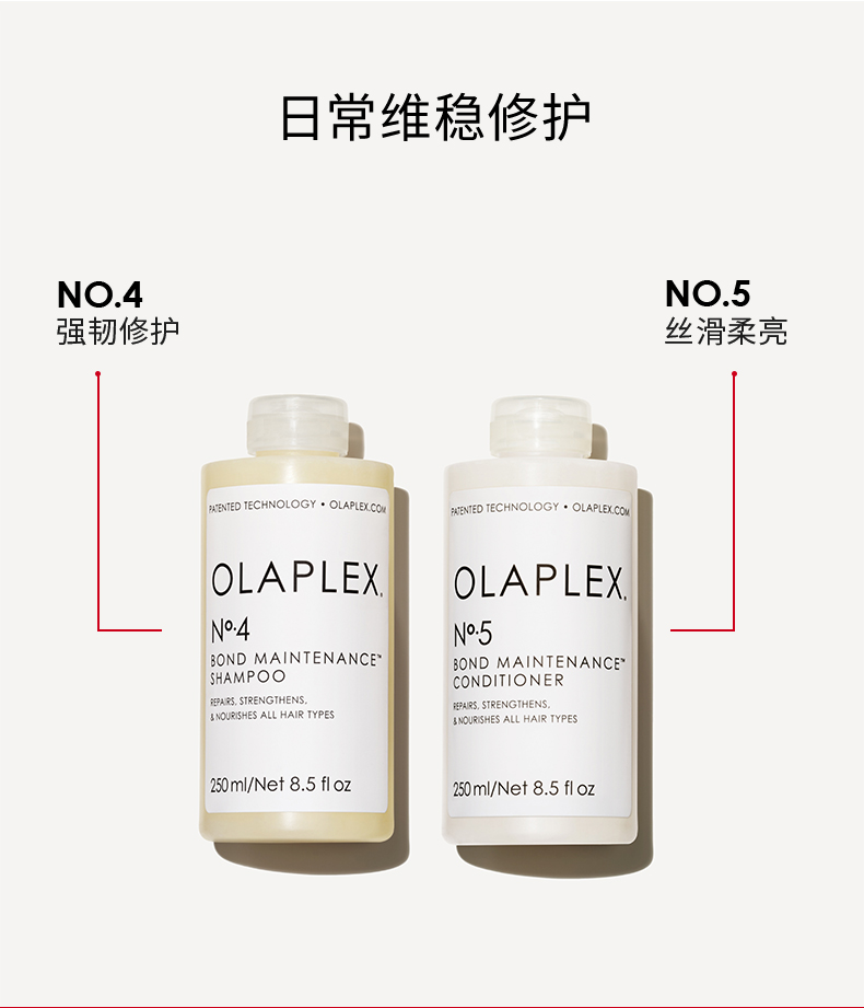 保税直发 OLAPLEX 4号发芯修护洗发水 250mL+5号护发精华乳 250mL