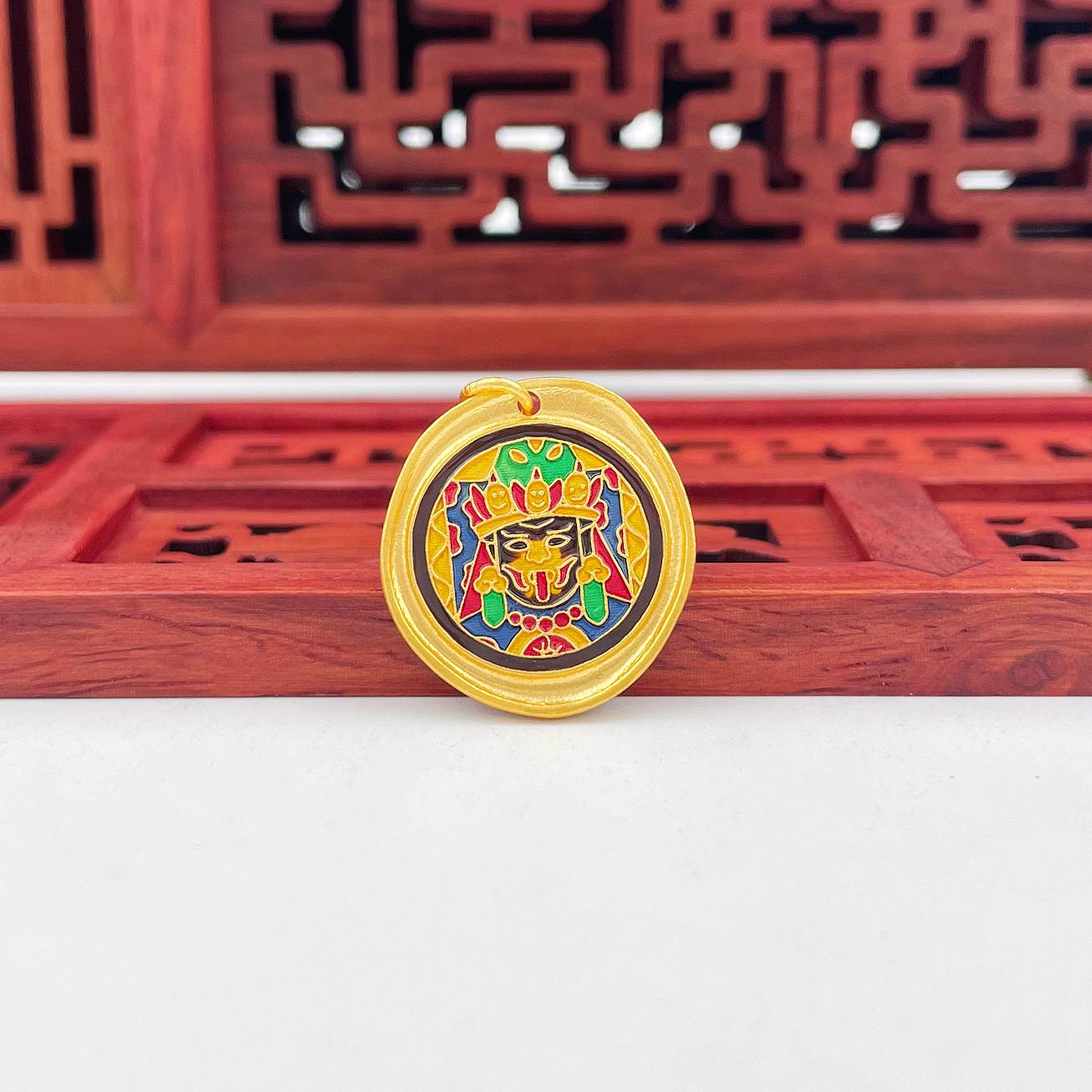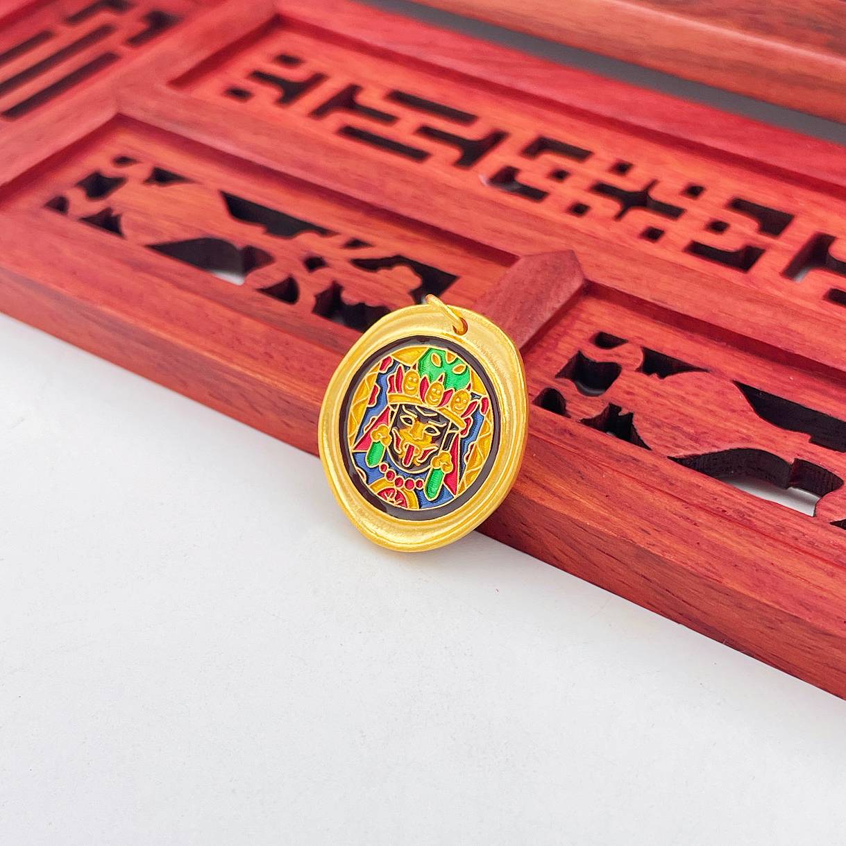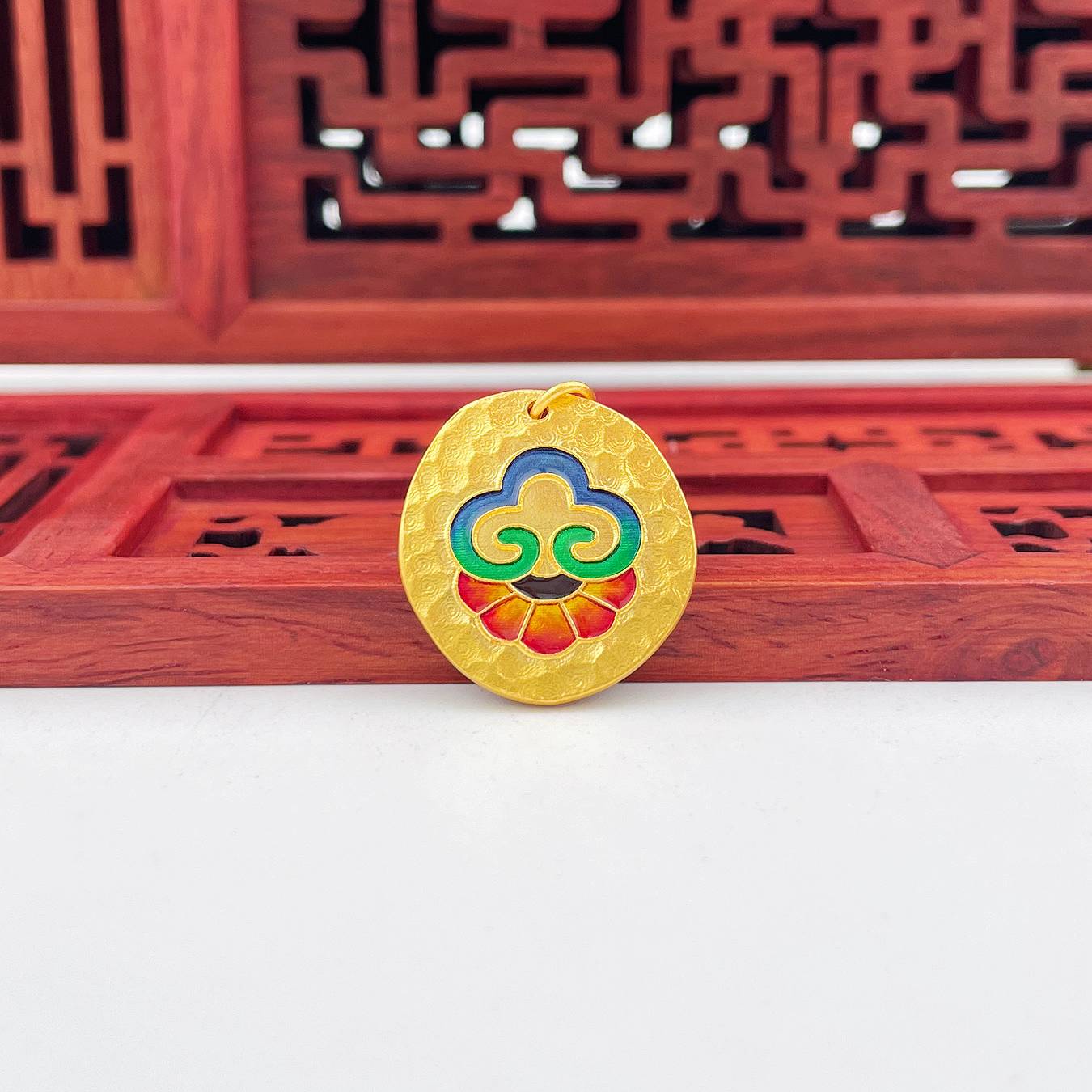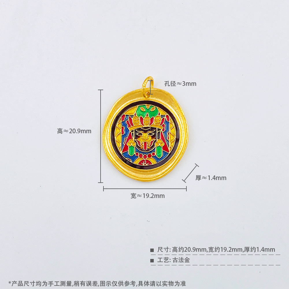 【限时7.5折】【定价黄金】足金 古法实心低温珐琅扎基拉姆如意圆牌手串挂件Diy手串配件(AMGFSC01342)预售产品下单后不退款不退货不换货不补差价