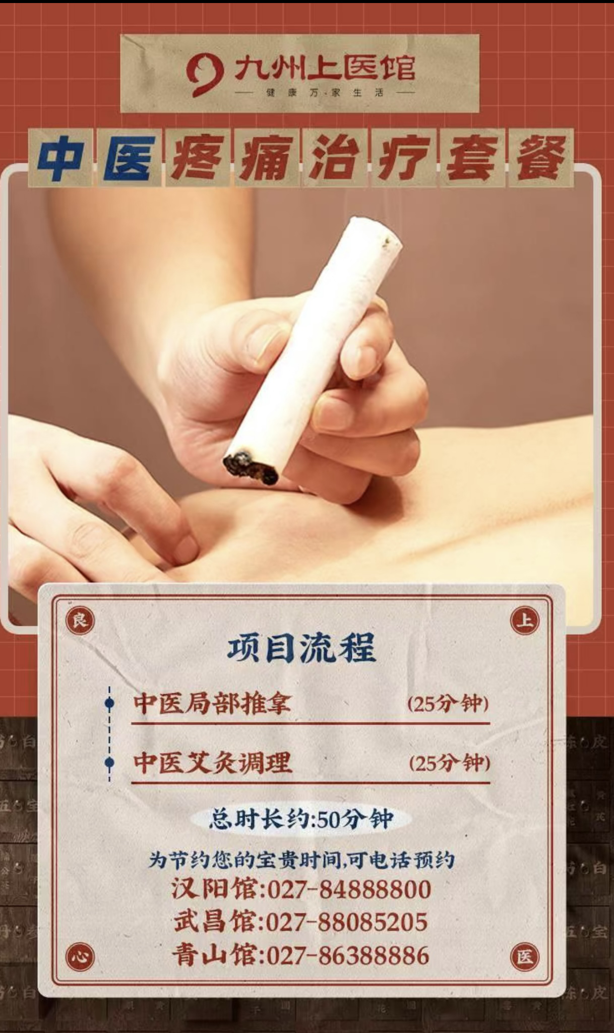 【三馆可用|疼痛套餐】中医肩颈腰腿头推拿按摩艾灸套餐 50分钟 三馆可用 到店理疗