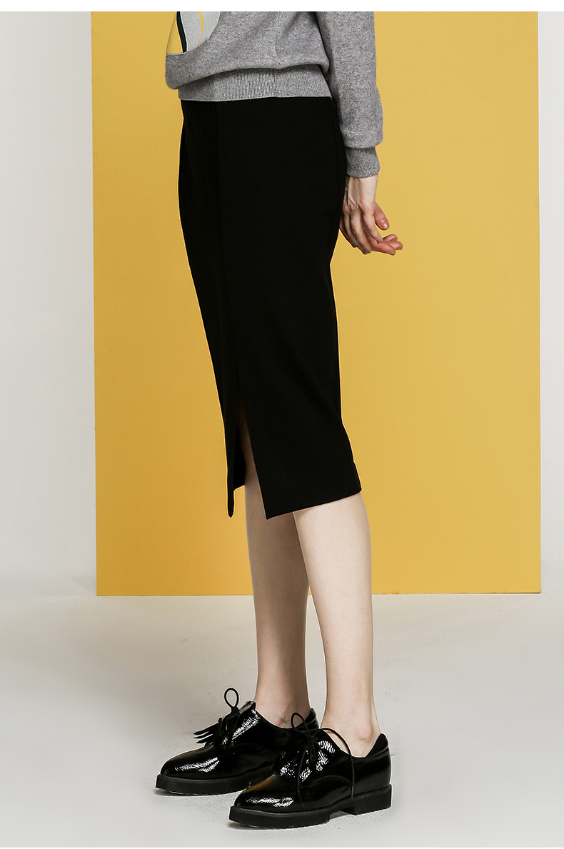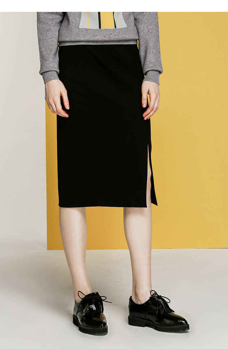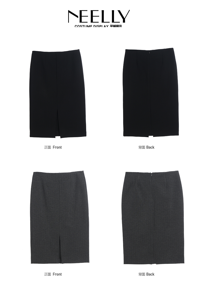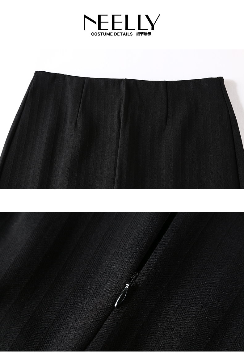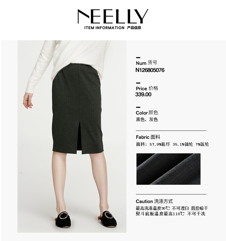 NEELLY纳俪冬装新款女装纯色职业短裙一步开叉半身裙包臀裙