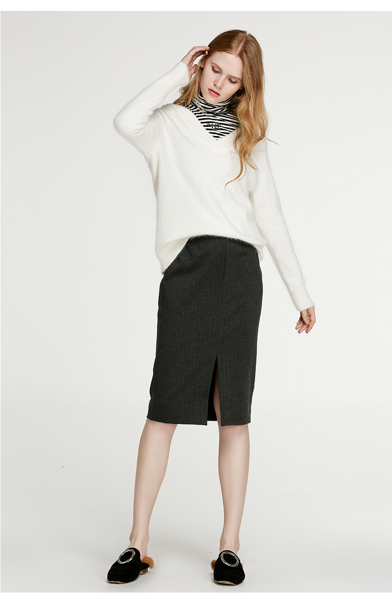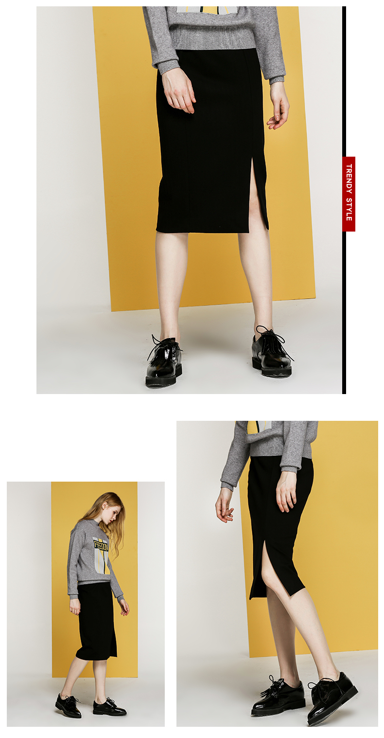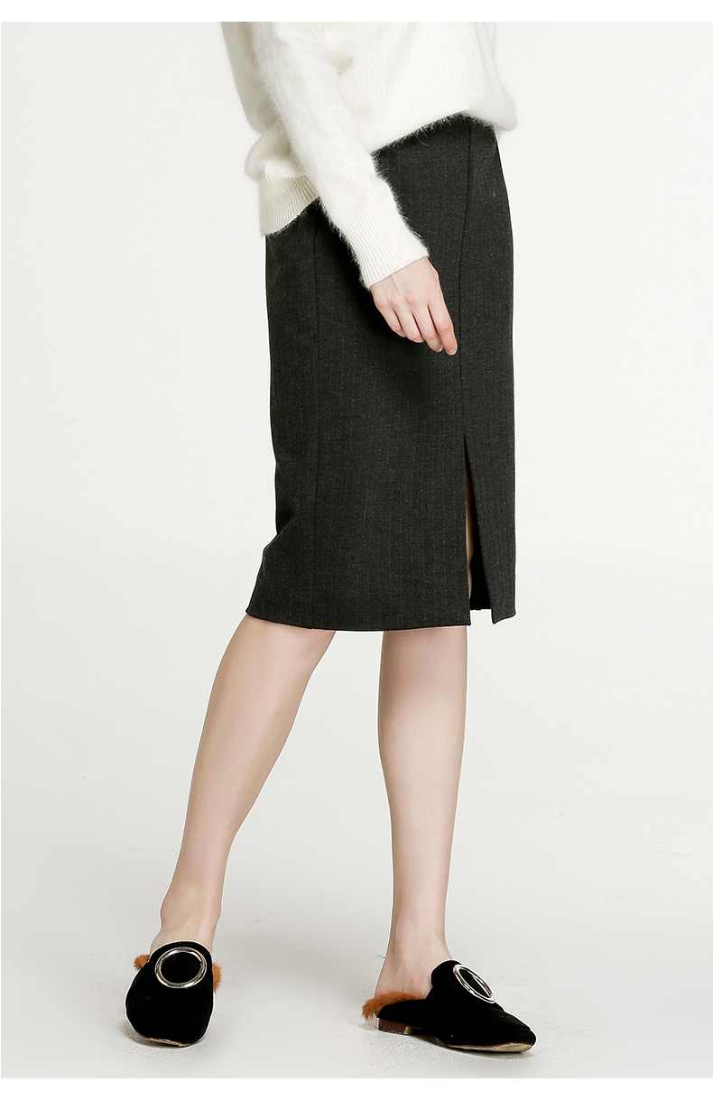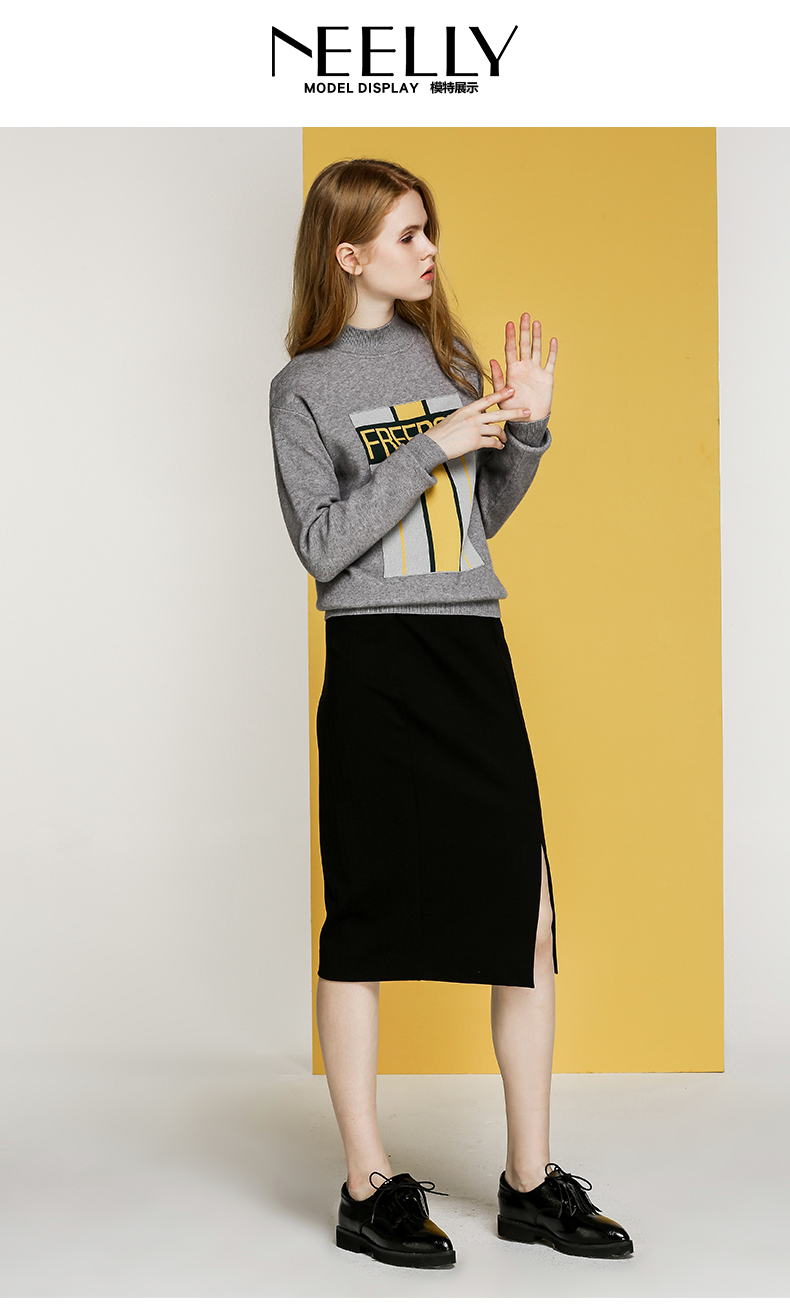 NEELLY纳俪冬装新款女装纯色职业短裙一步开叉半身裙包臀裙