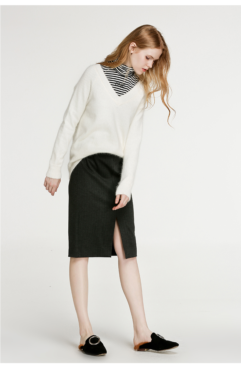 NEELLY纳俪商场同款灰色V领套头毛衣女高级感慵懒洋气百搭针织衫N23121A01208
