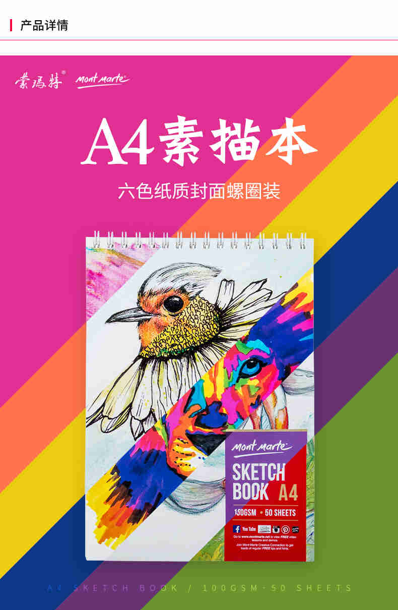 蒙玛特素描本MSB0085F绿色田野速写本50页彩铅空白绘画本